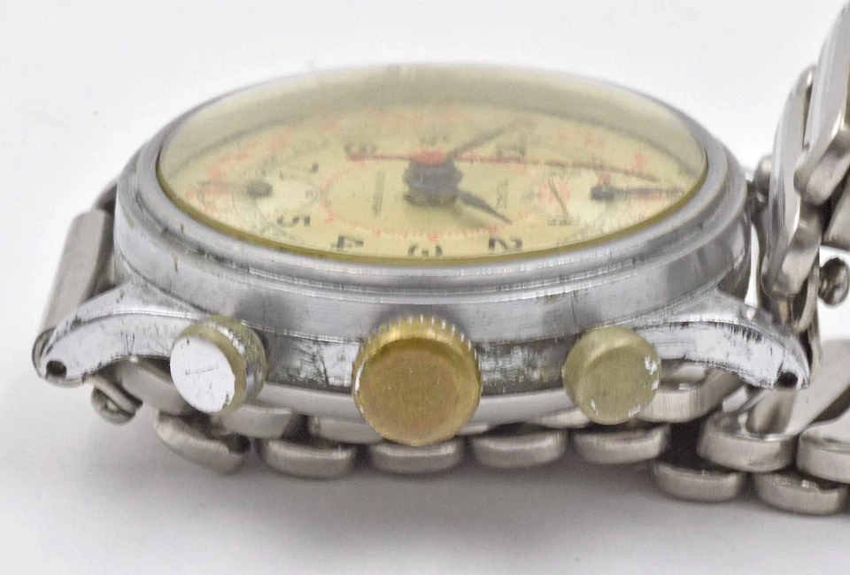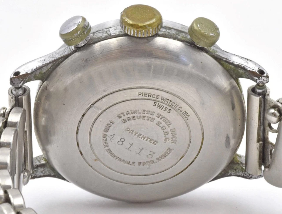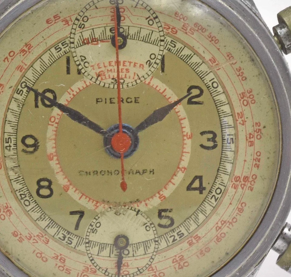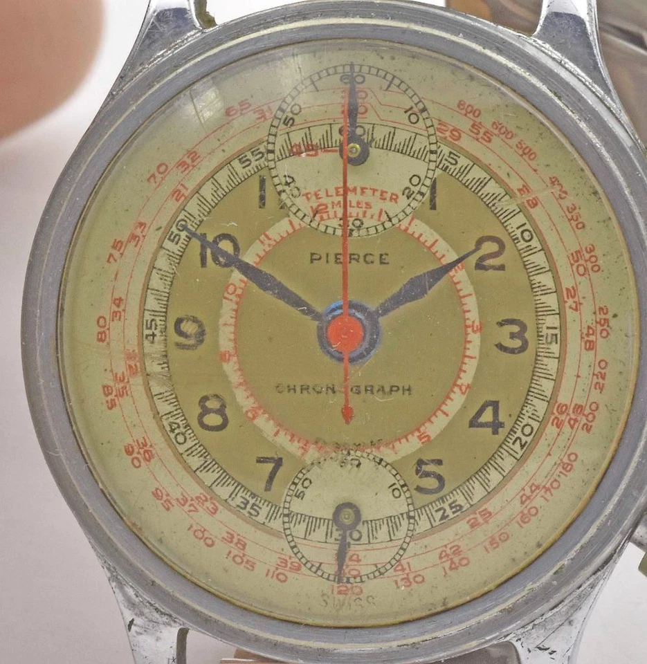 Vintage Steel 1940's PIERCE MILITARY DIAL CHRONOGRAPH Round Button running Watch