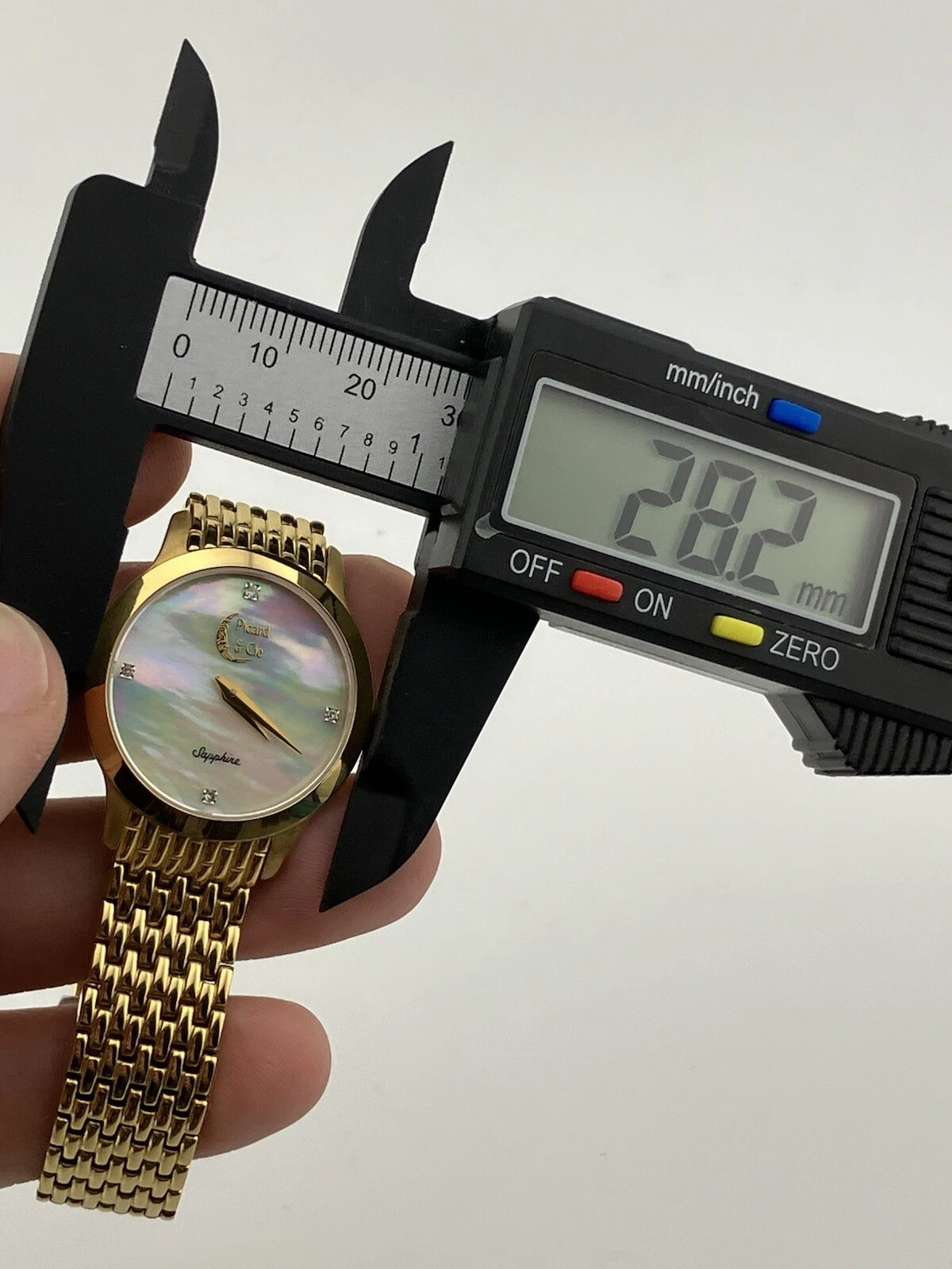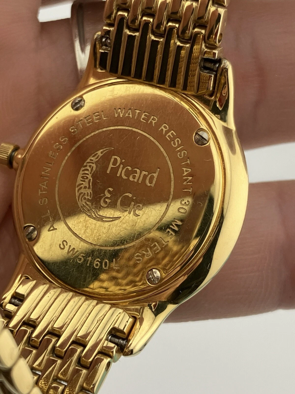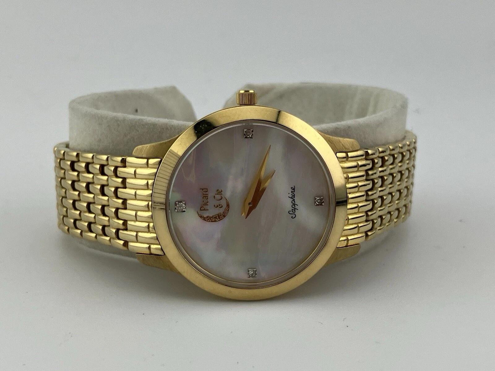 Picard & Cie Ladies 28mm Watch Gold Tone MOP Dial Sapphire Stainless Steel- RUNS
