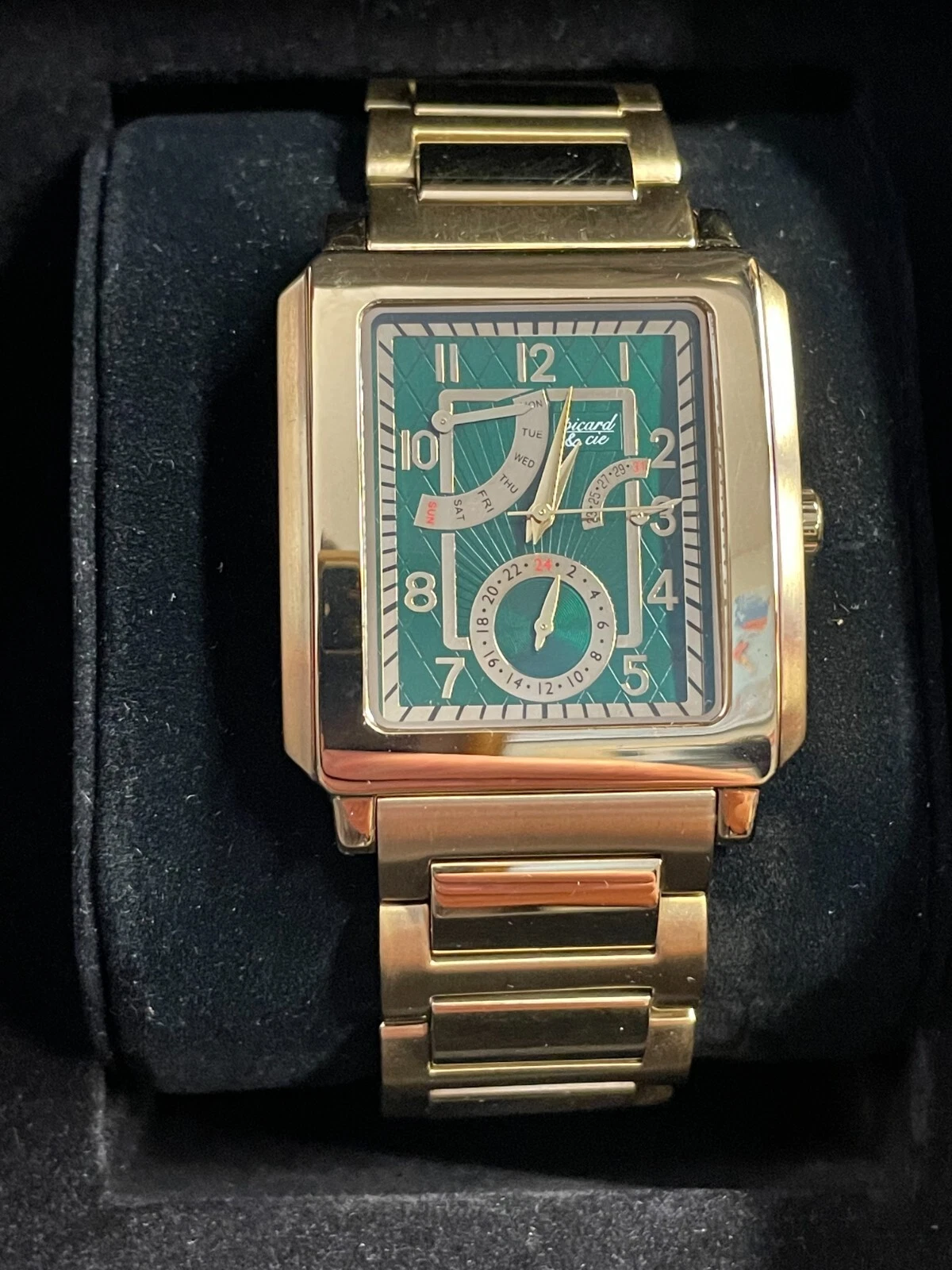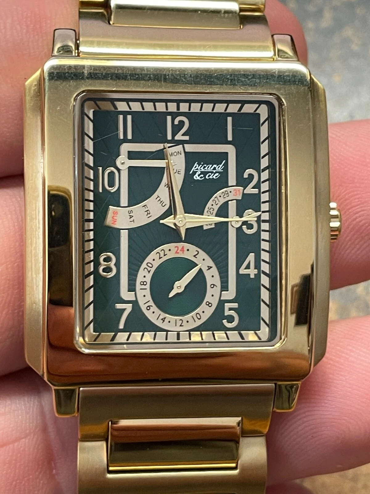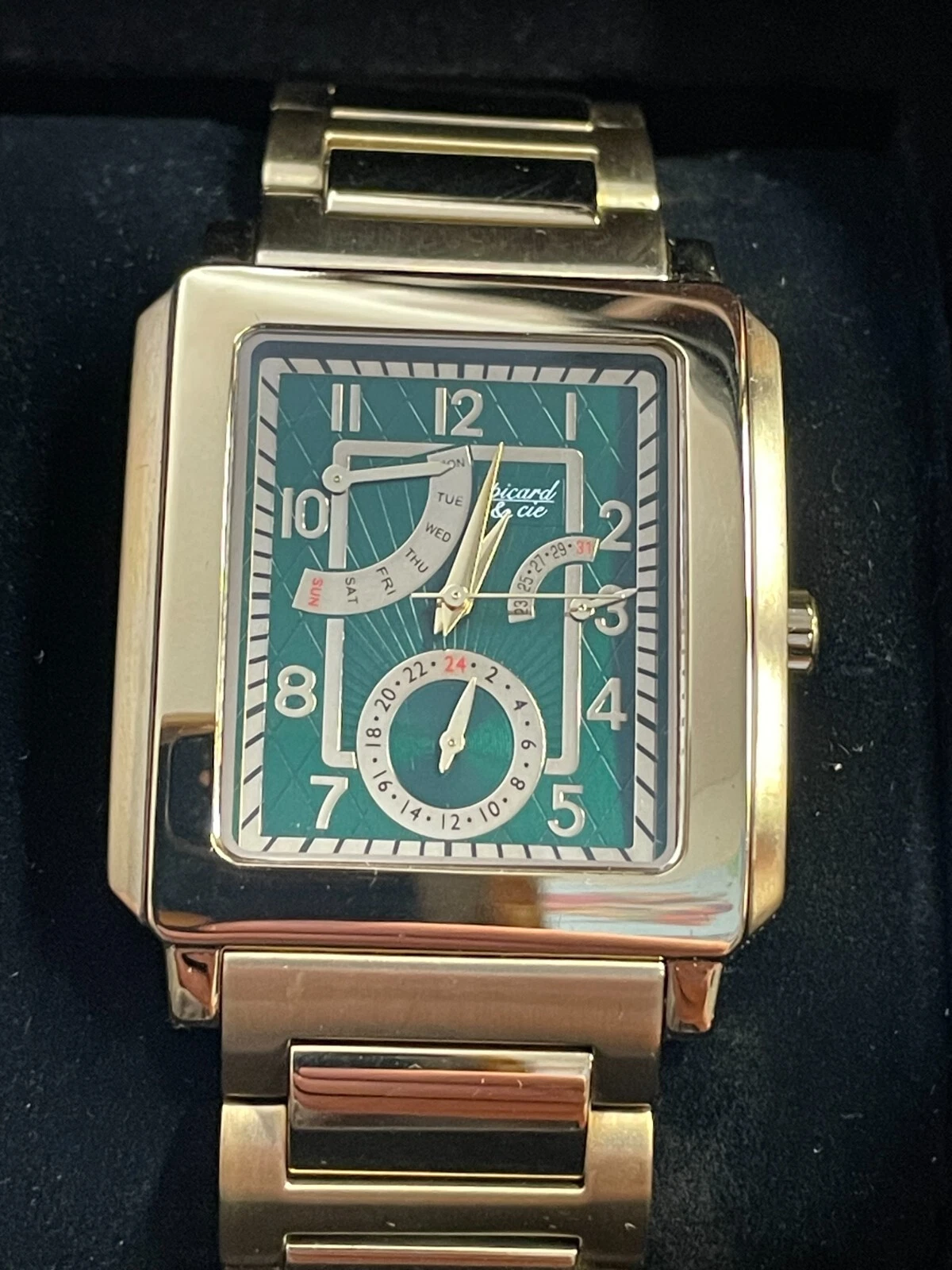 NIB PICARD & CIE mens WATCH Green Gold 285306STG Stainless DAY DATE 12 & 24 Hour