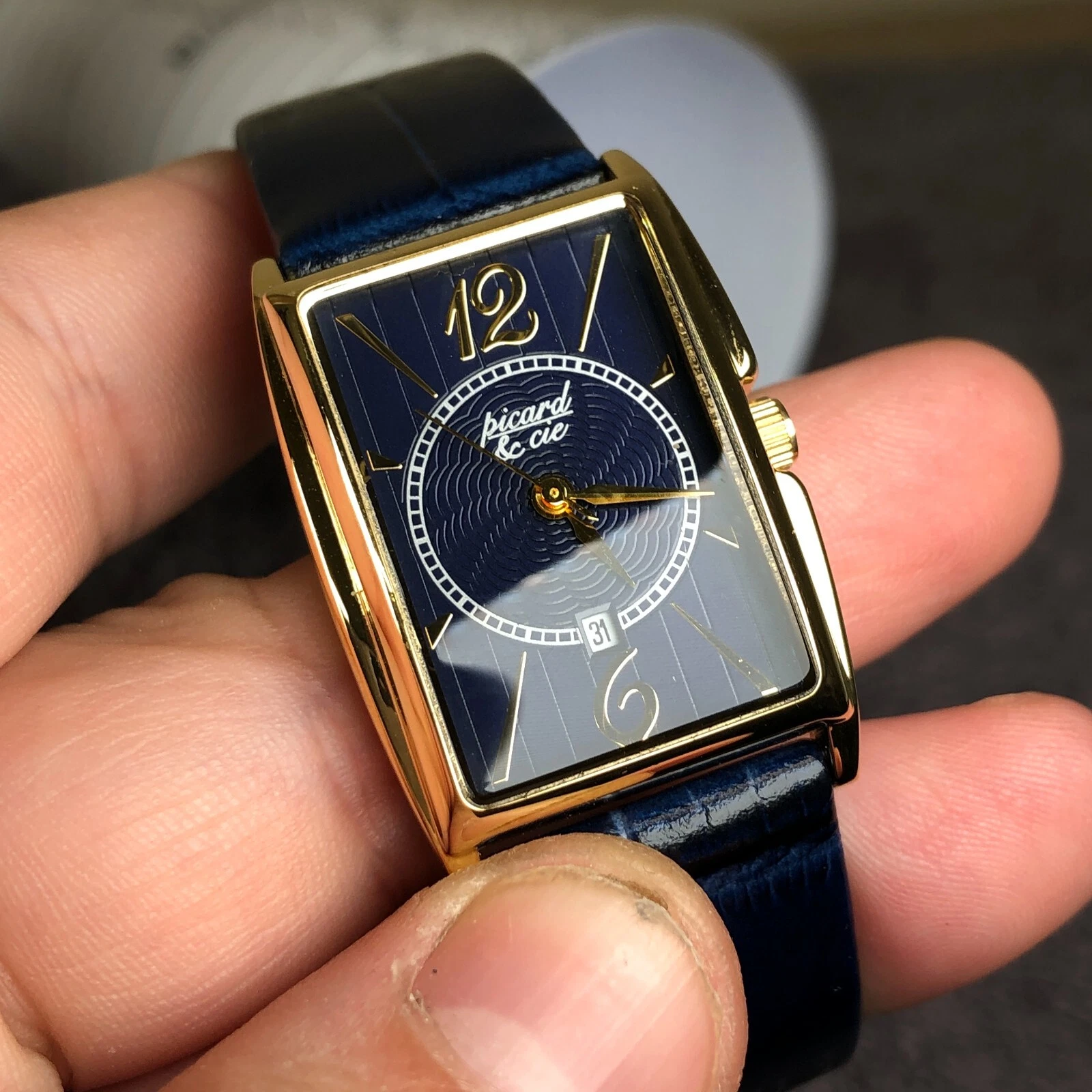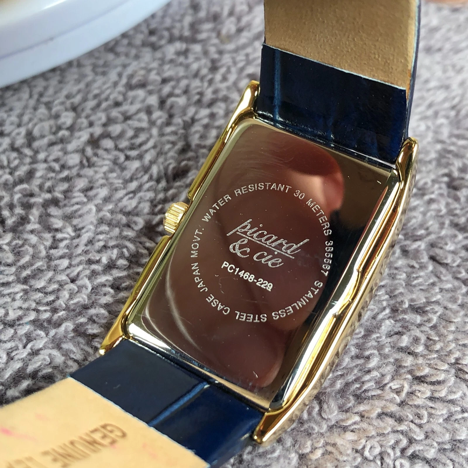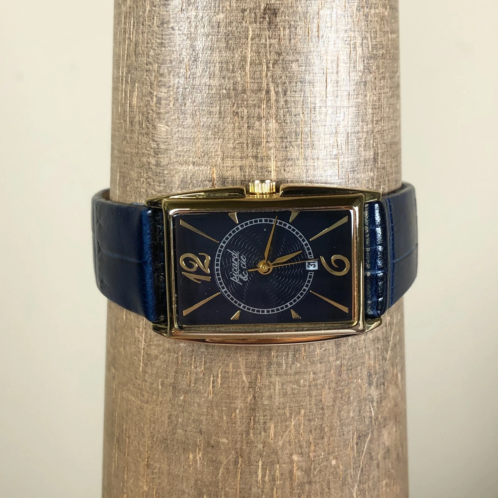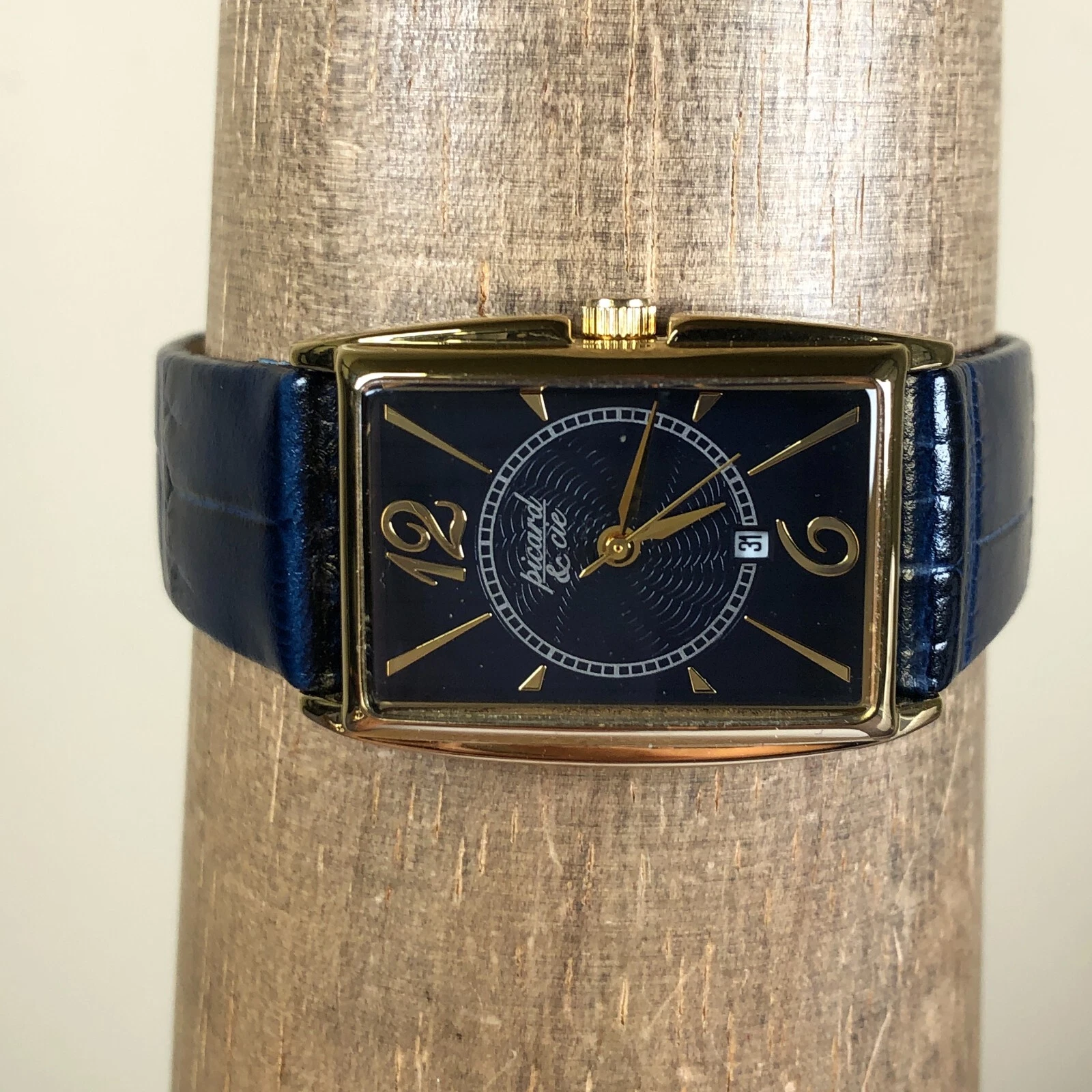 Picard & Cie Women PC1468-229 Blue Dial Date Gold Tone Leather Quartz Watch 7"
