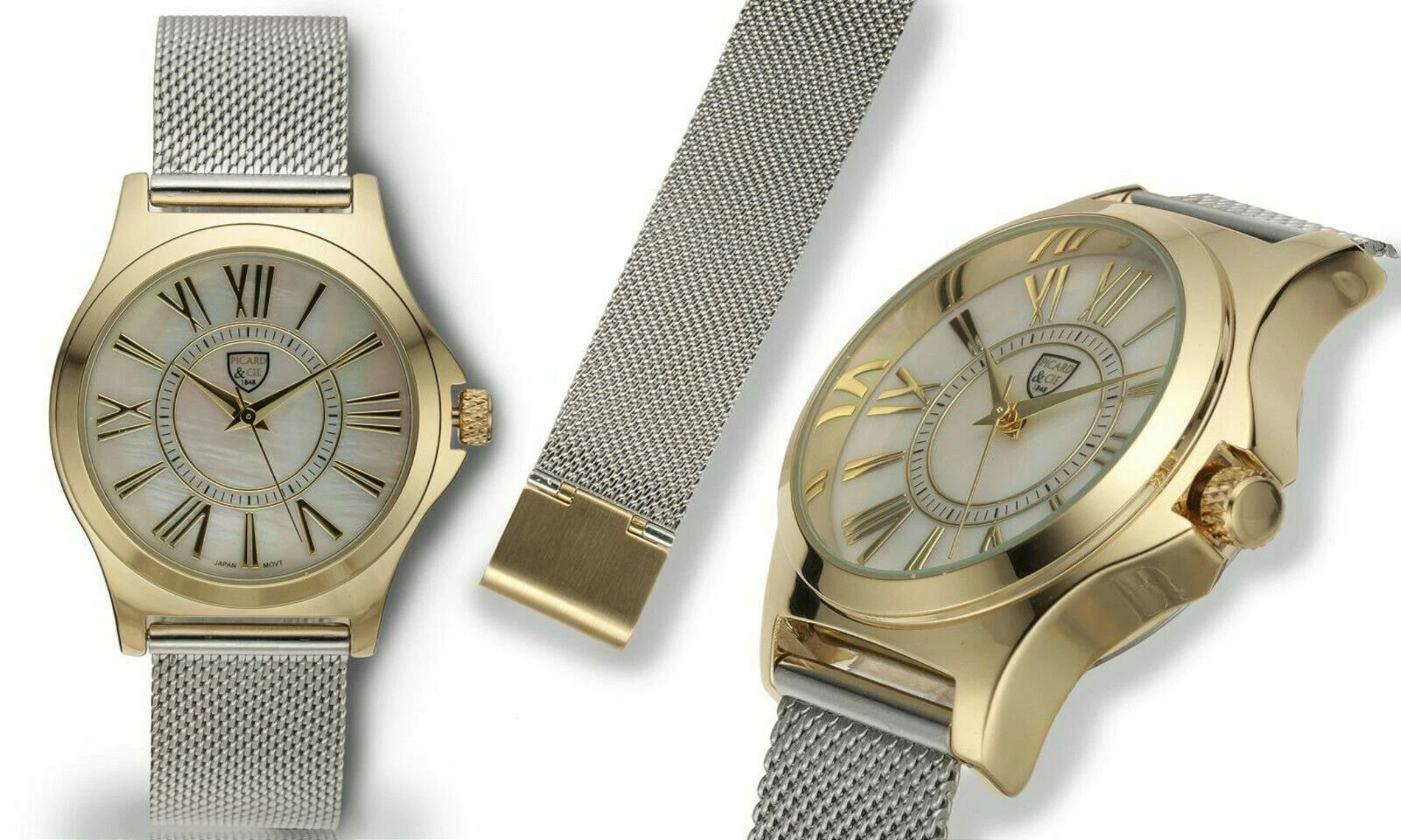 NEW Picard & Cie 9902 Womens Bonita Gold Silver Mesh Bracelet MOP Dial Watch