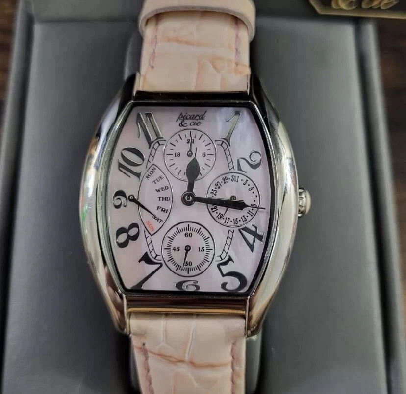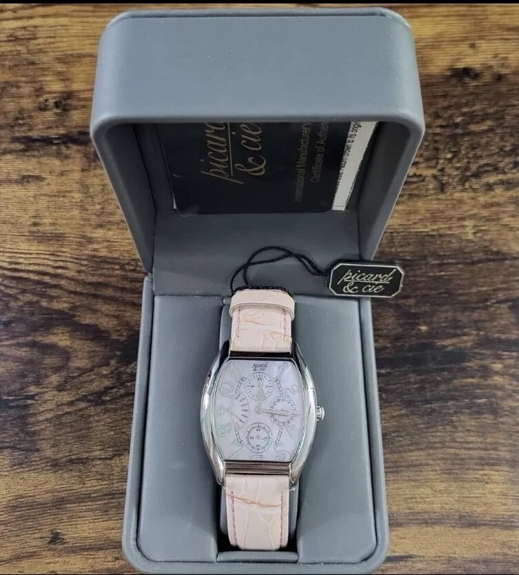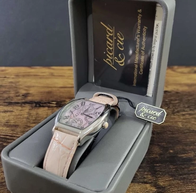 NIB PINK Women’s Watch W/ Leather Strap Pink Quartz Face Multi Dial Fashion