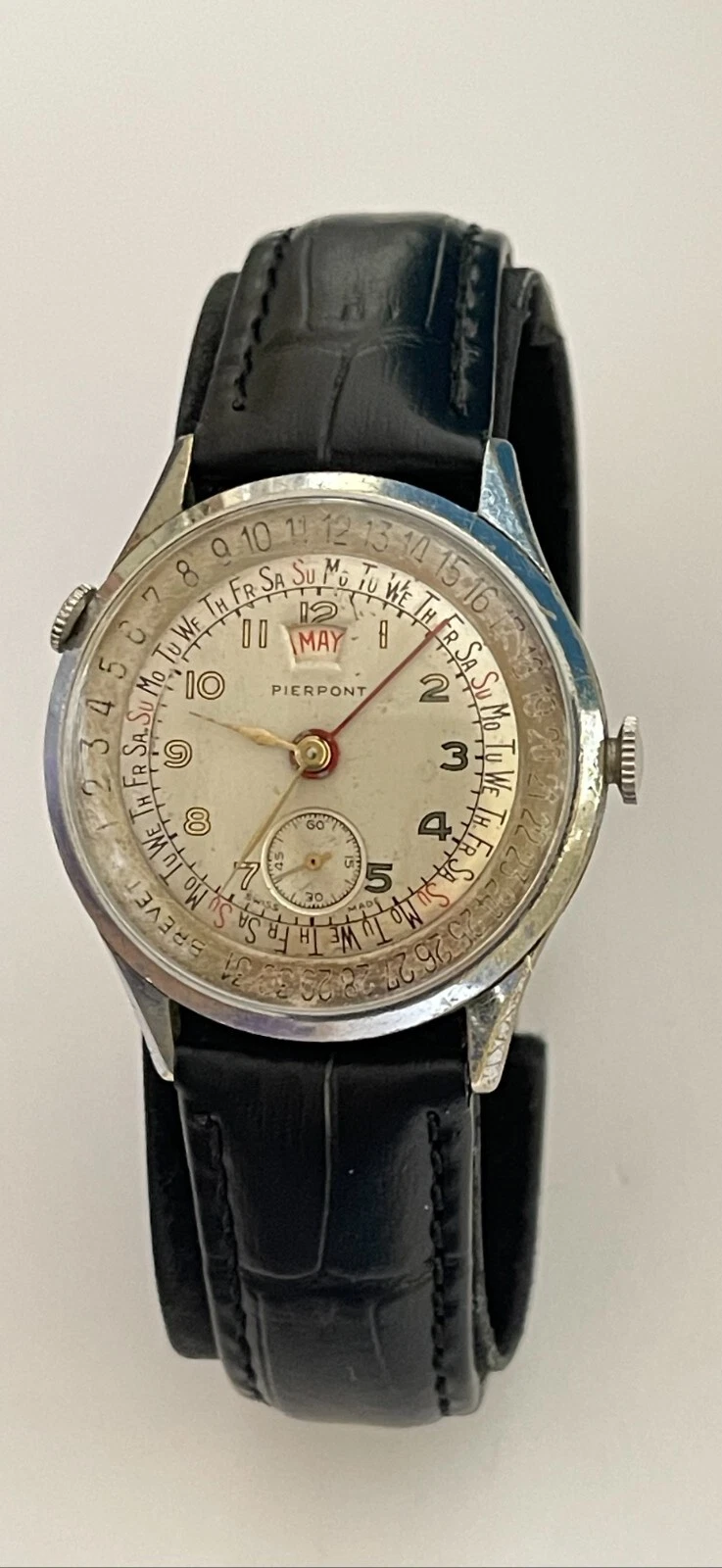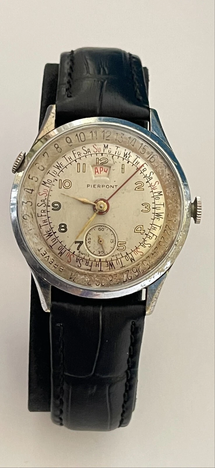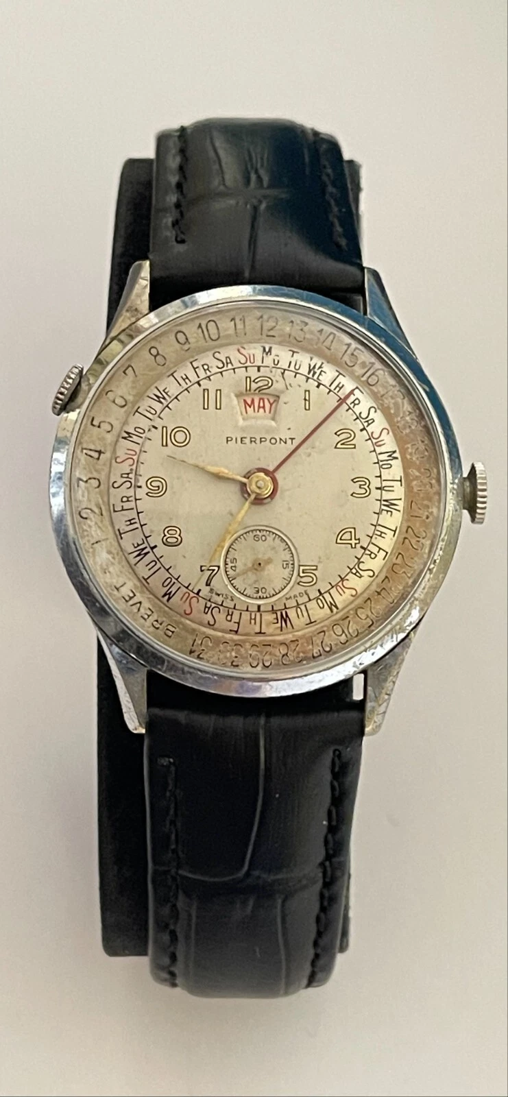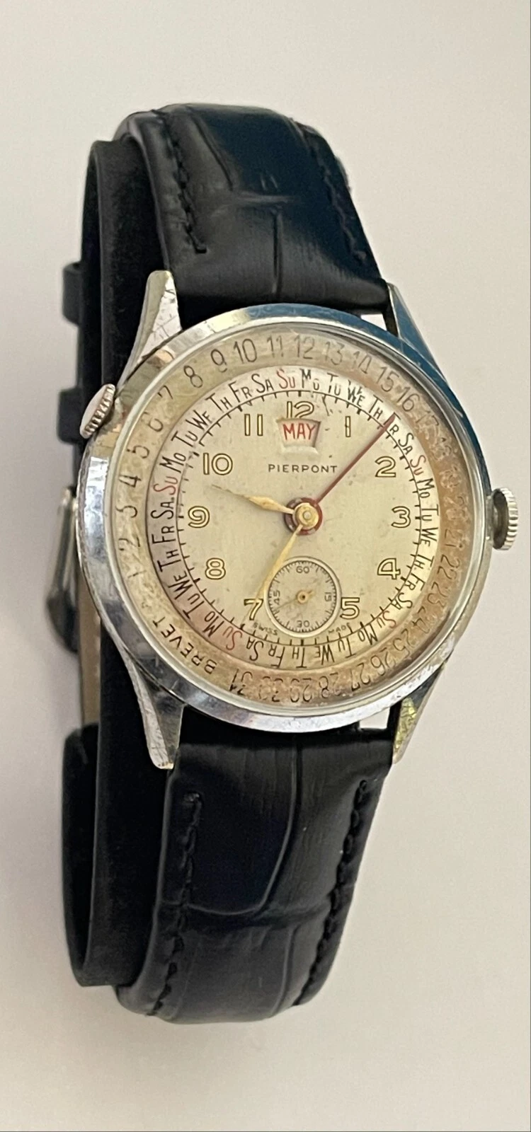 Vintage PIERPONT Calendar Watch Triple Date full calendar Swiss made Fond Acier