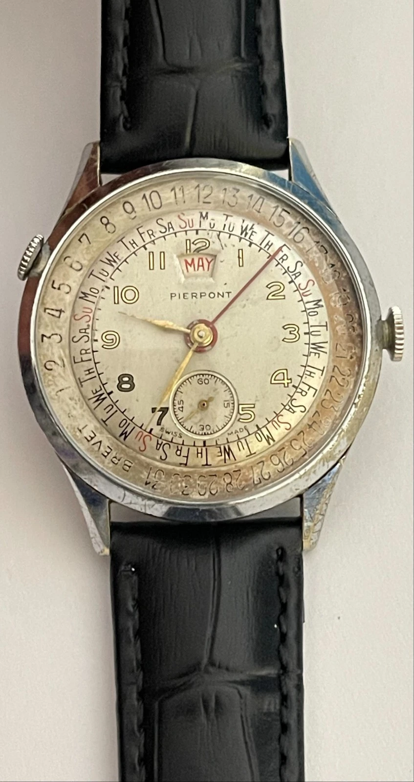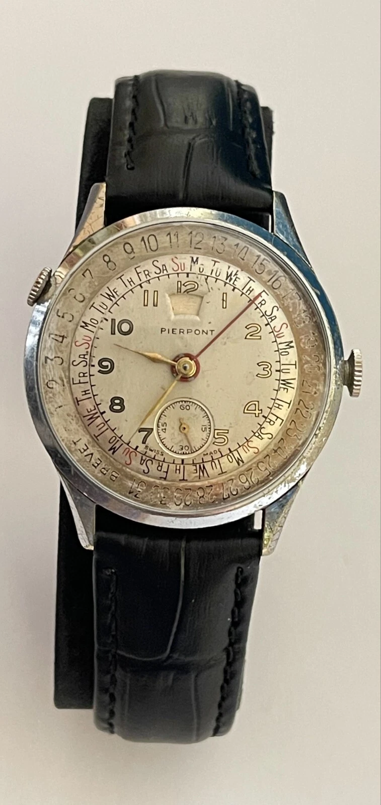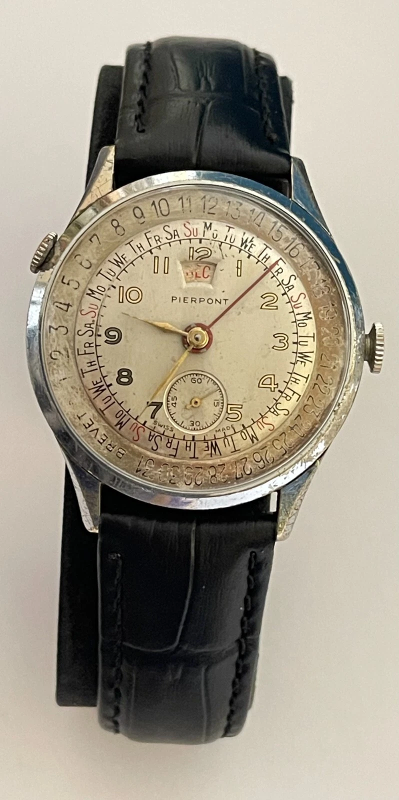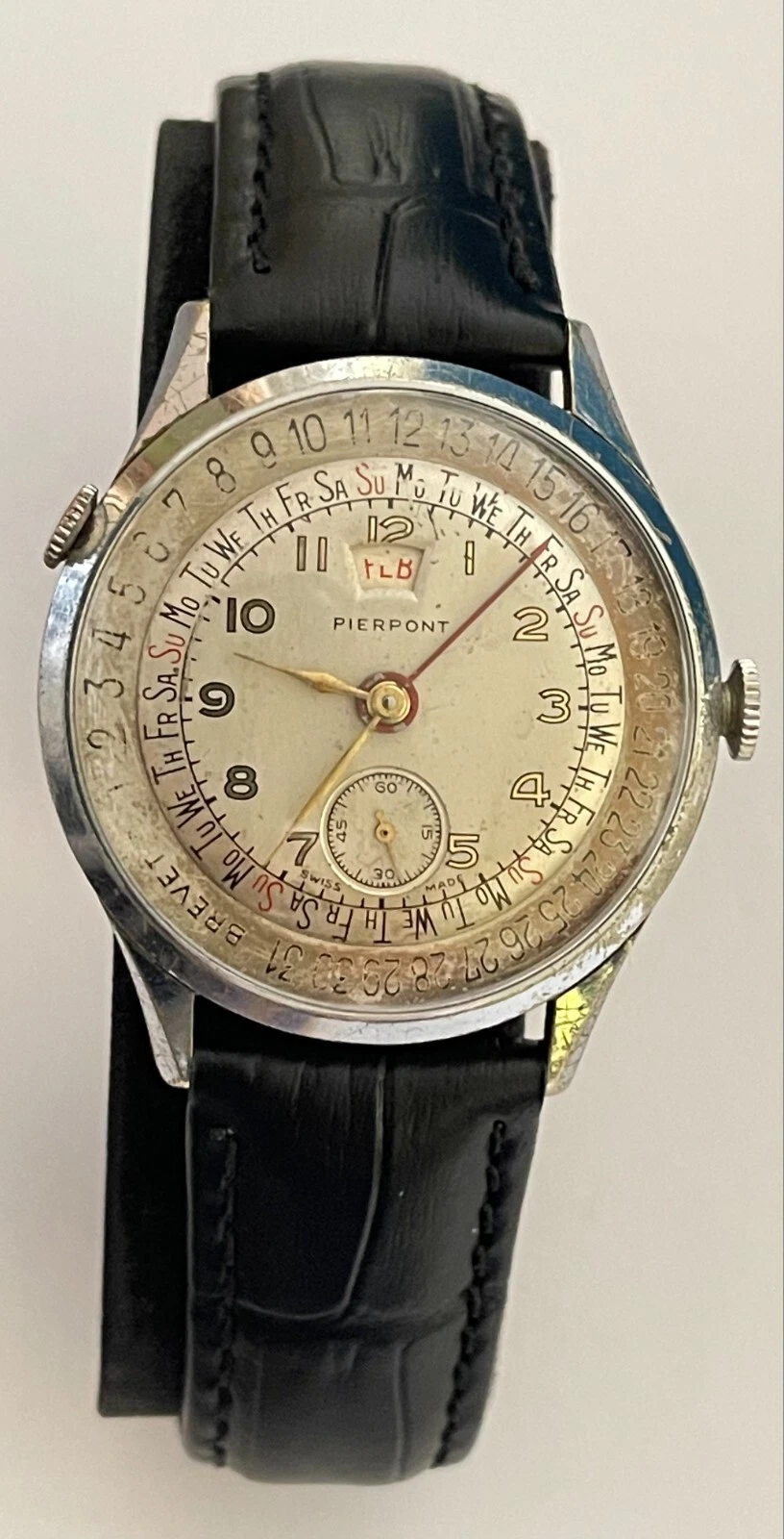 Vintage PIERPONT Calendar Watch Triple Date full calendar Swiss made Fond Acier