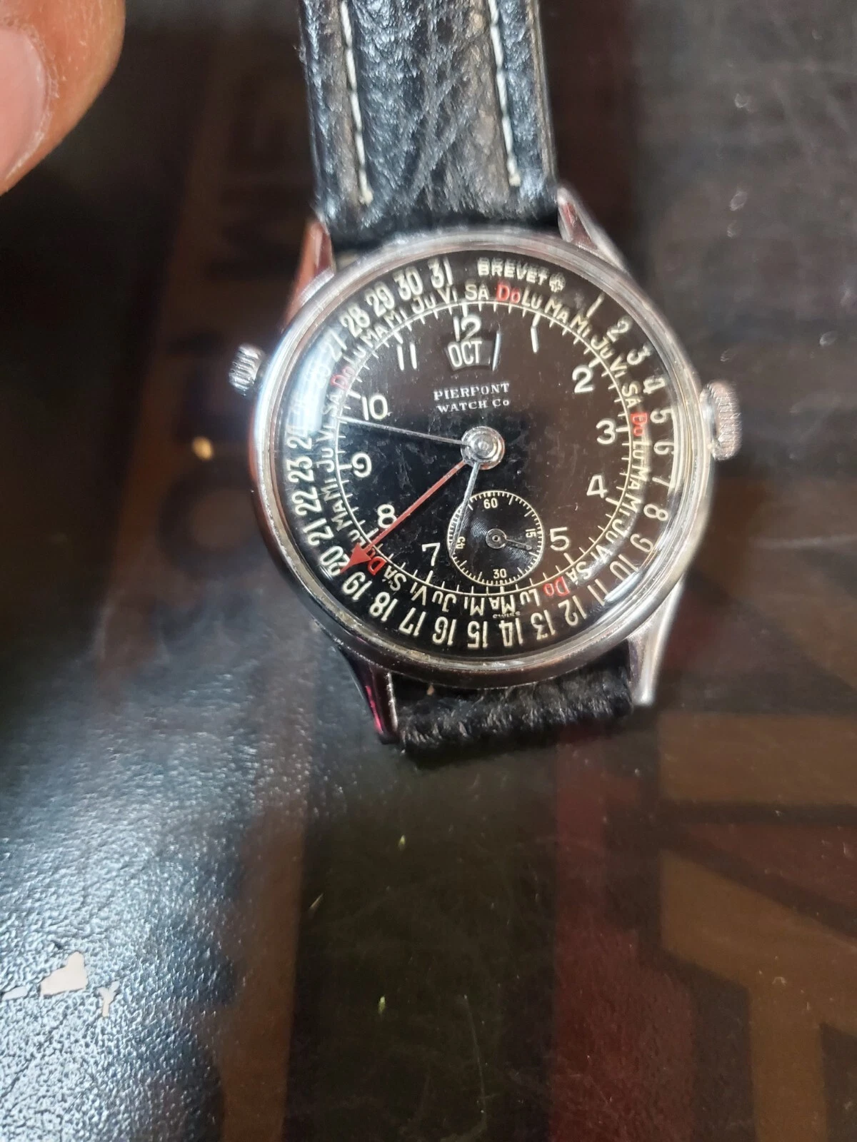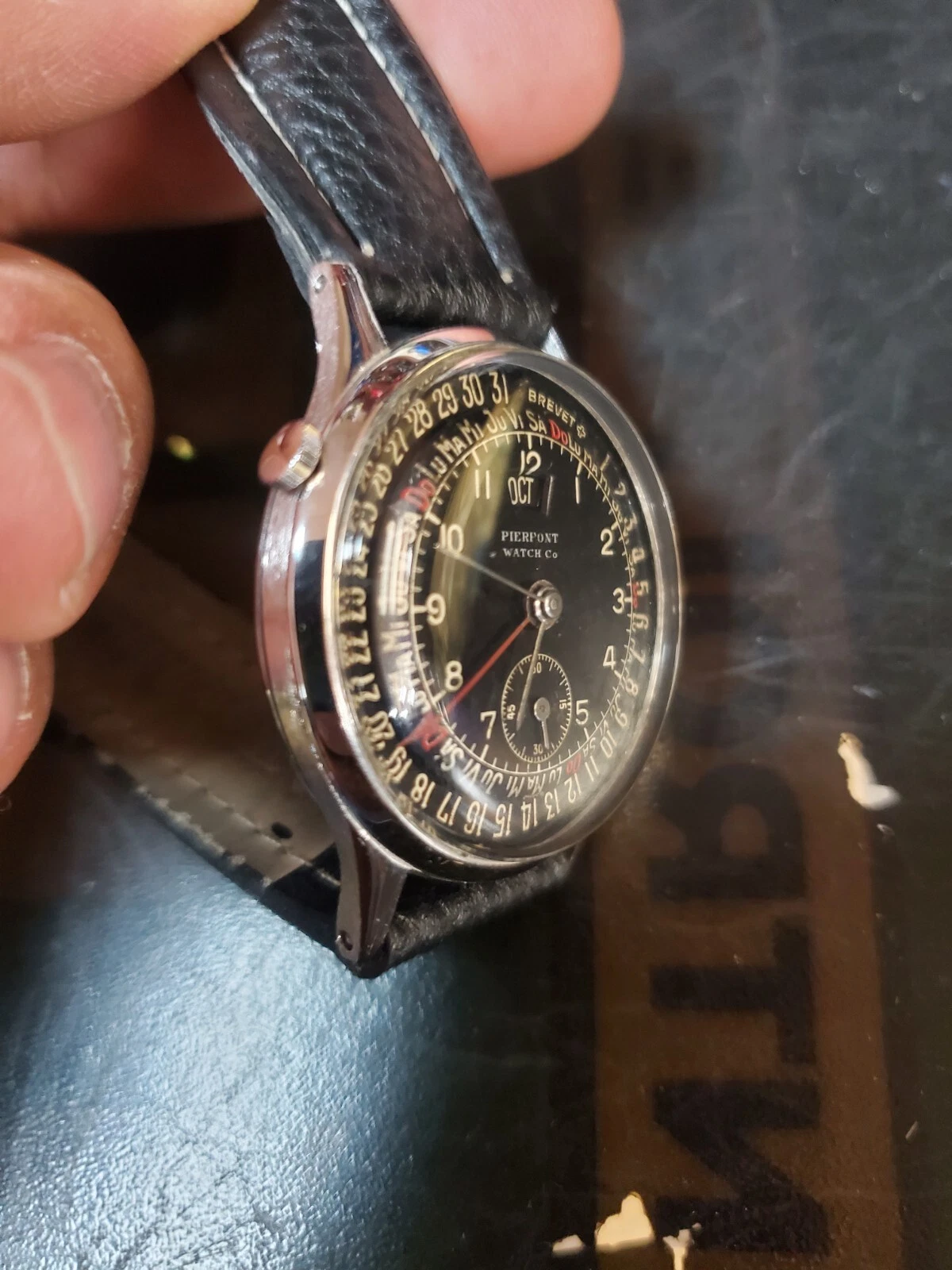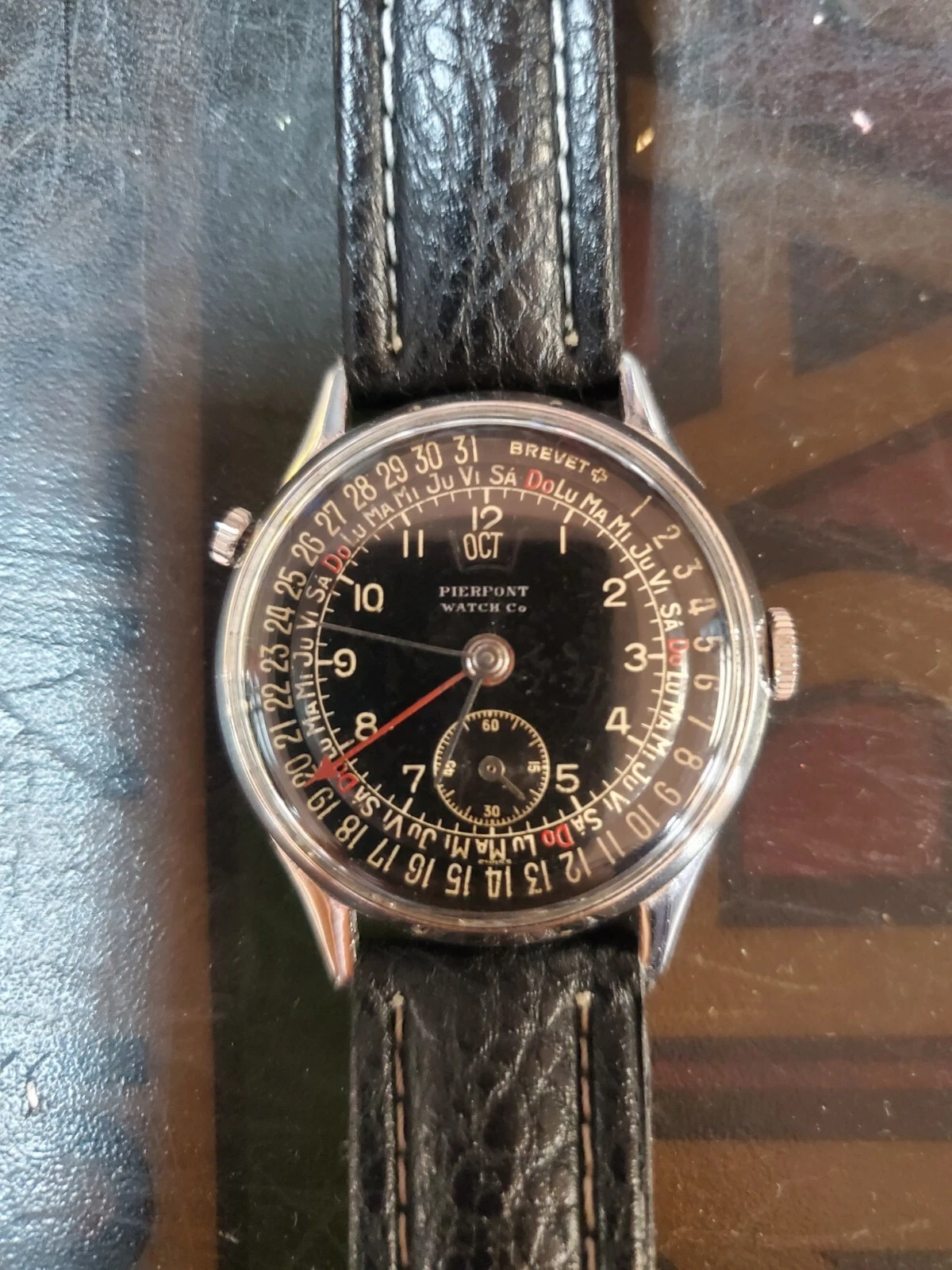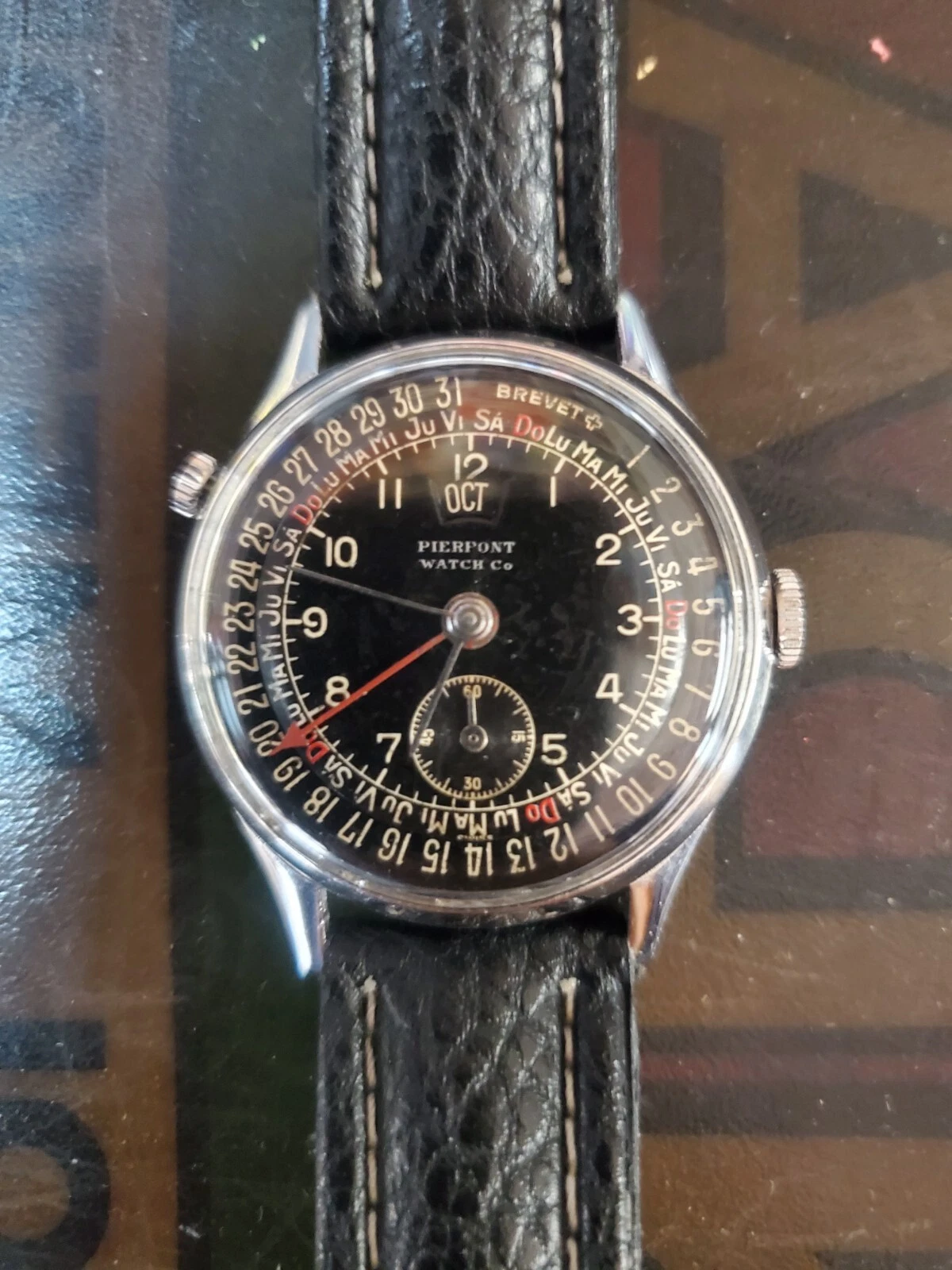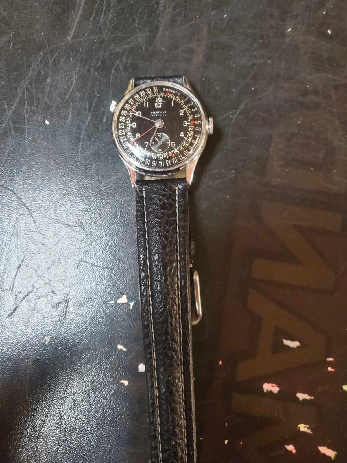 Vintage Pierpont Triple Date Calendar Mechanical watch Black on Black 1950s