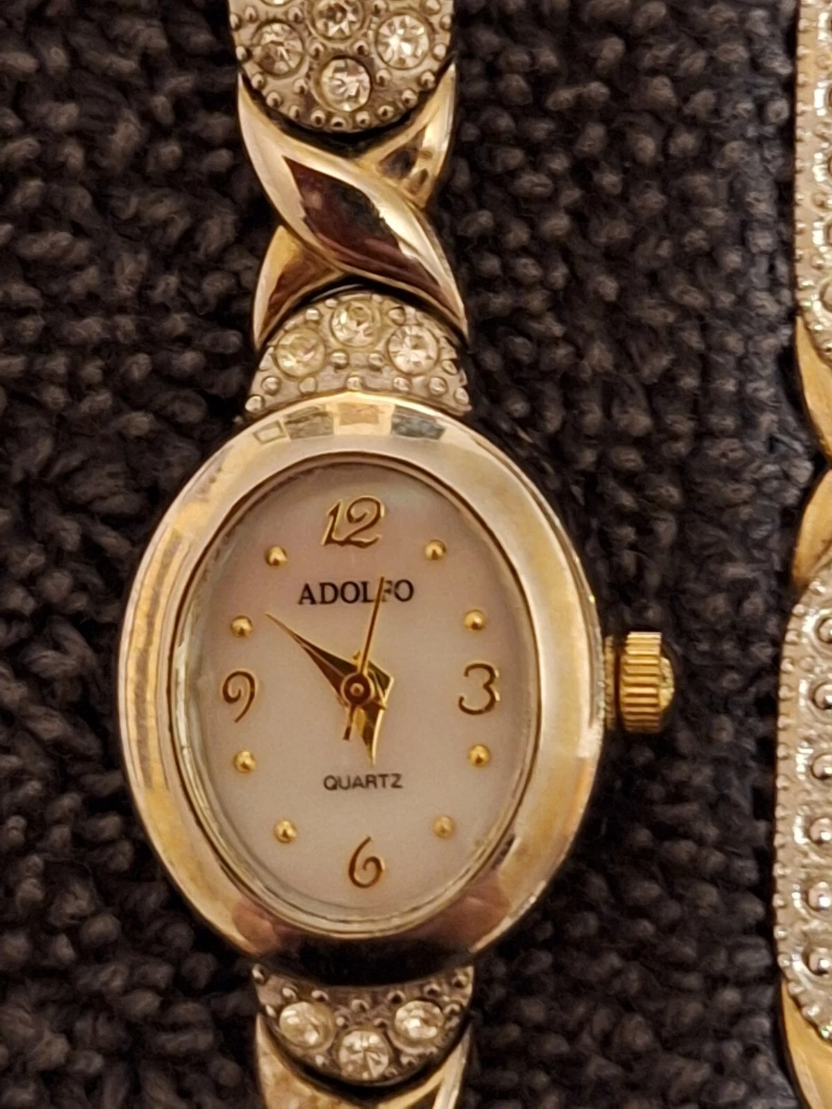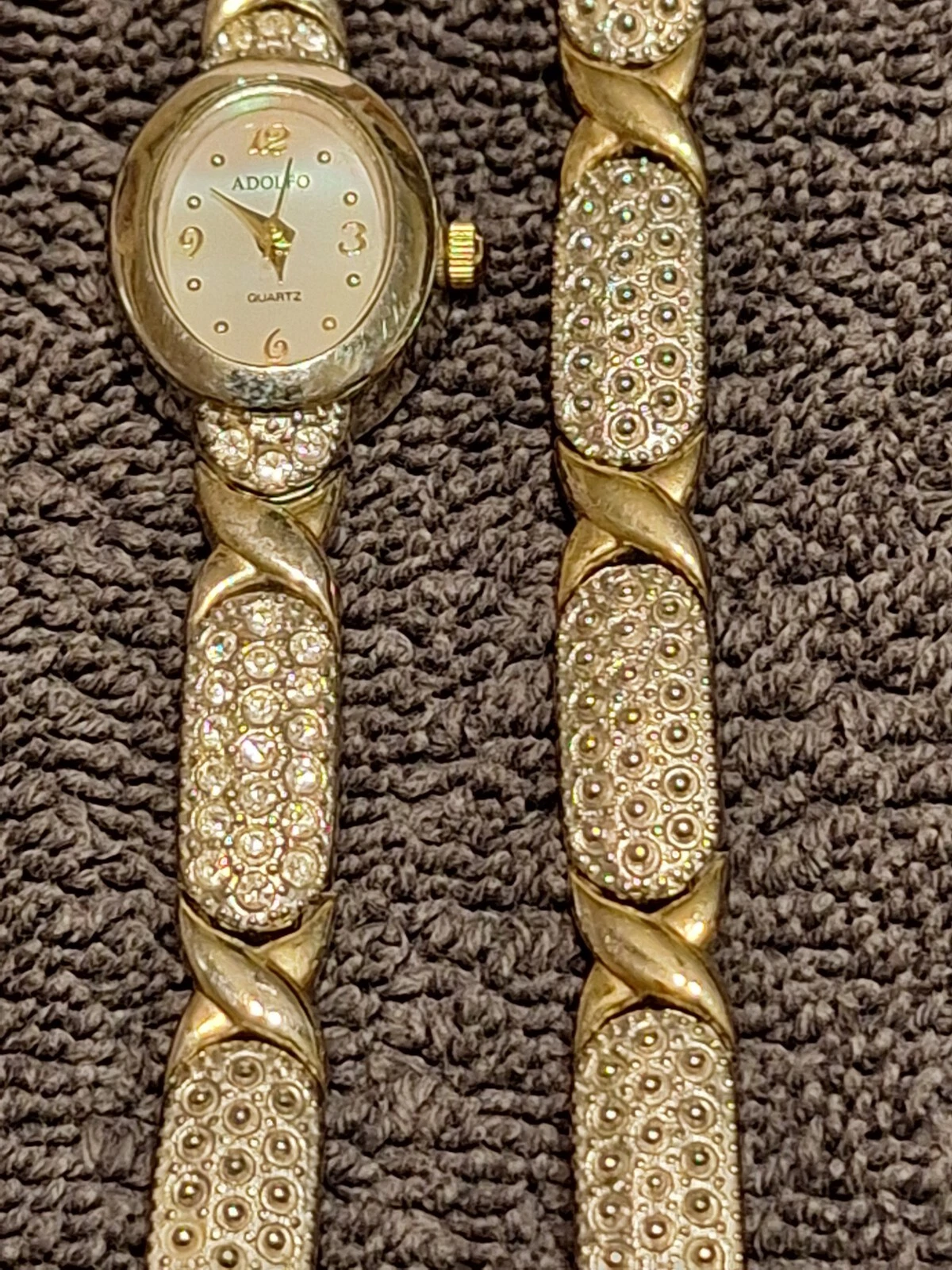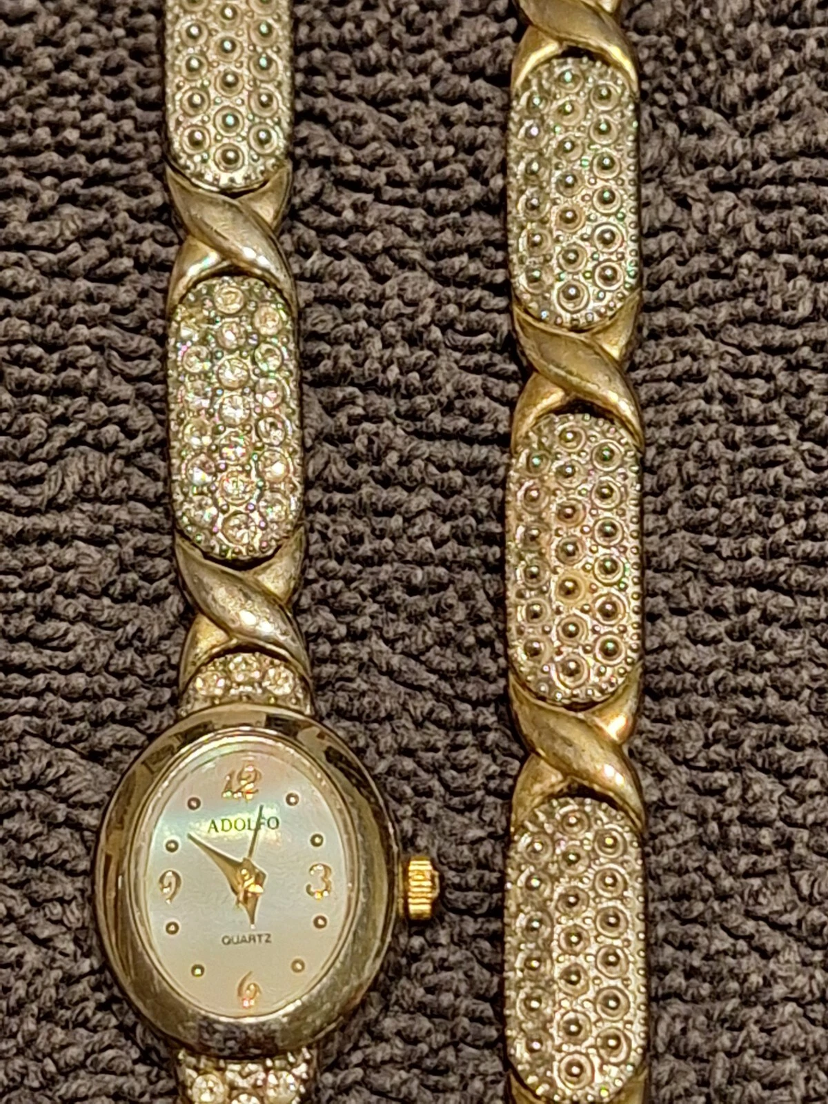 Vintage Silver Tone Adolfo Quartz Women's Wristwatch And Matching Bracelet Set