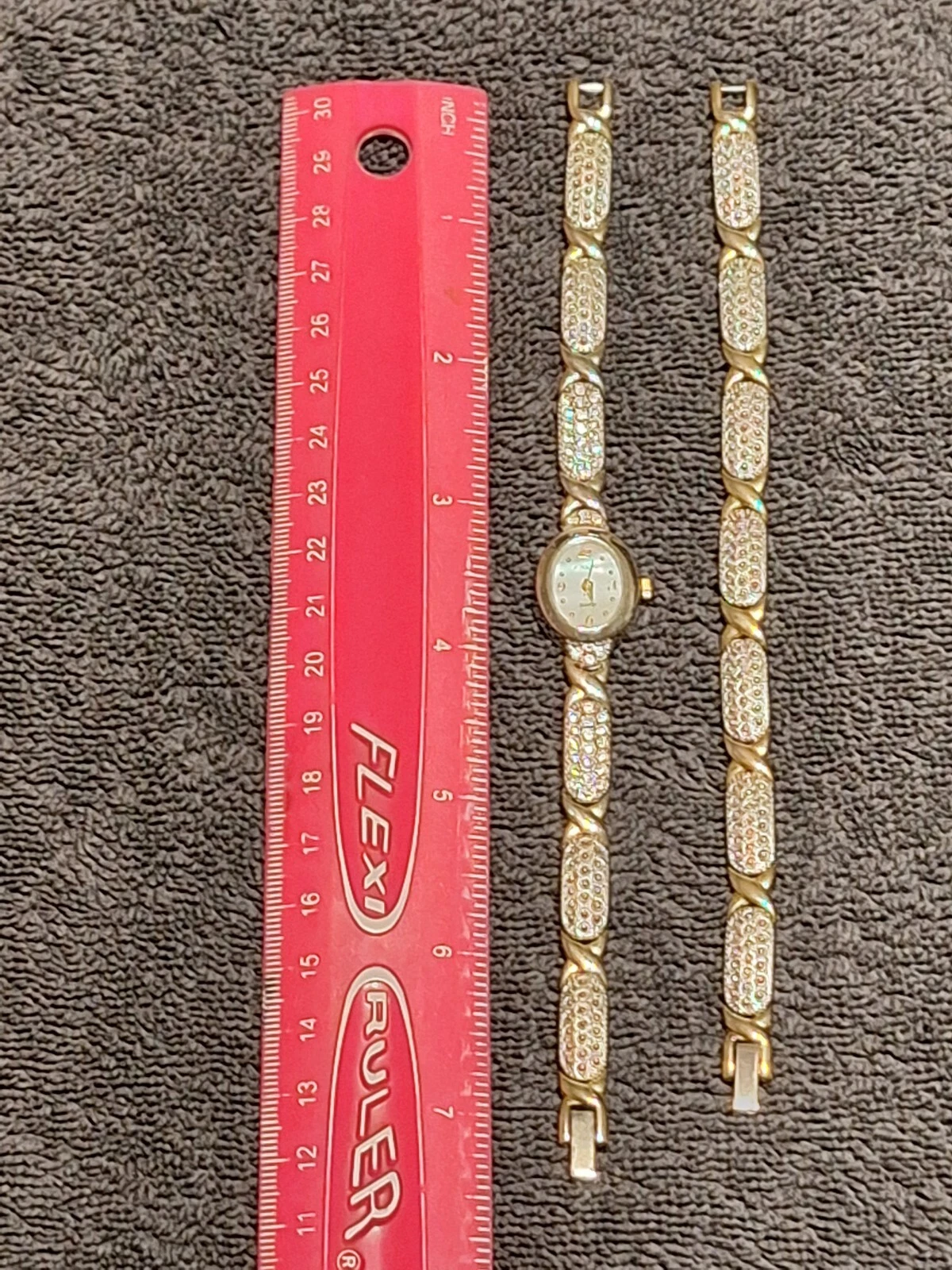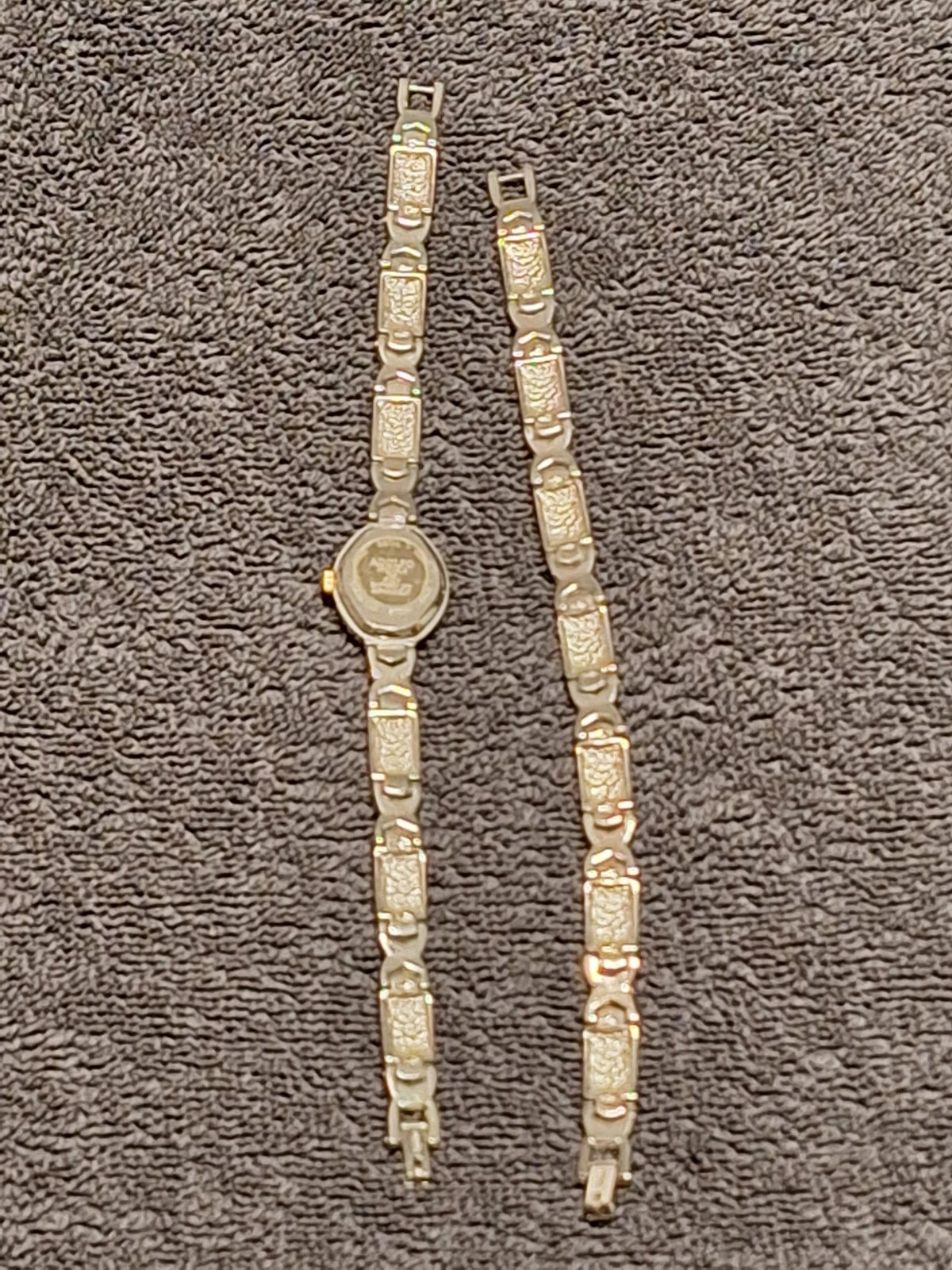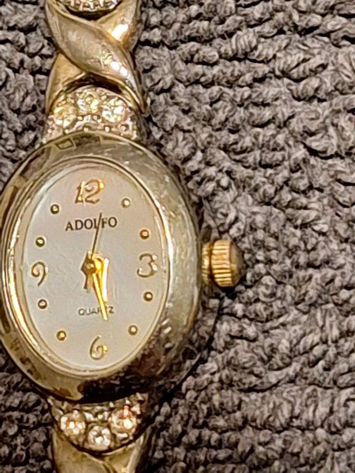 Vintage Silver Tone Adolfo Quartz Women's Wristwatch And Matching Bracelet Set