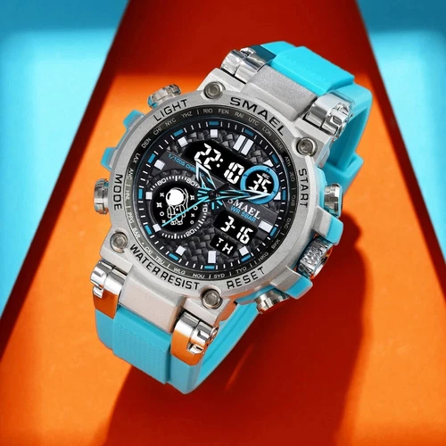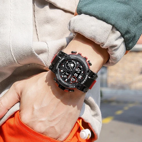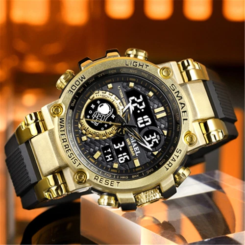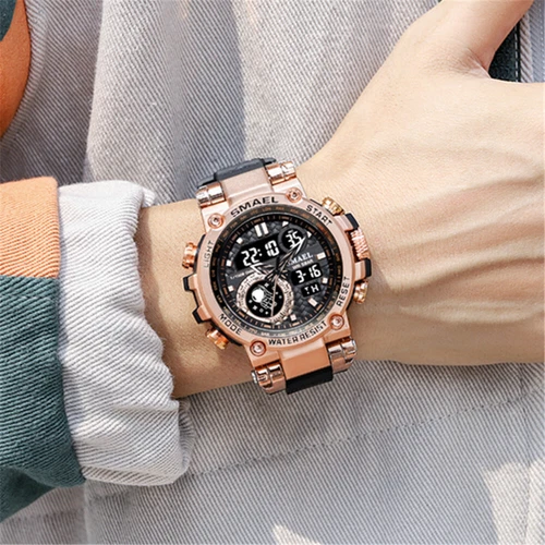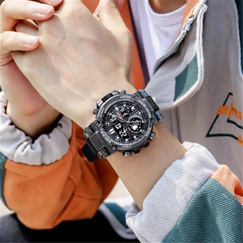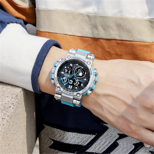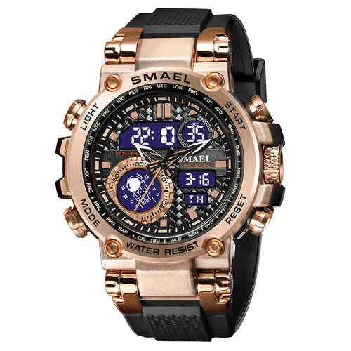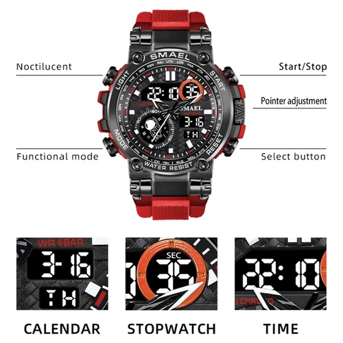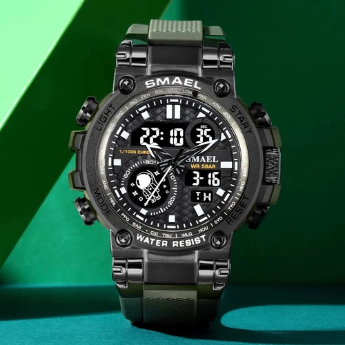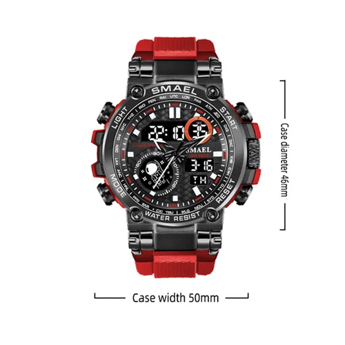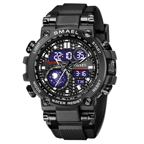 SMAEL 8093 Men Digital Military Watch Water Resist 5ATM Dual Display Black Color