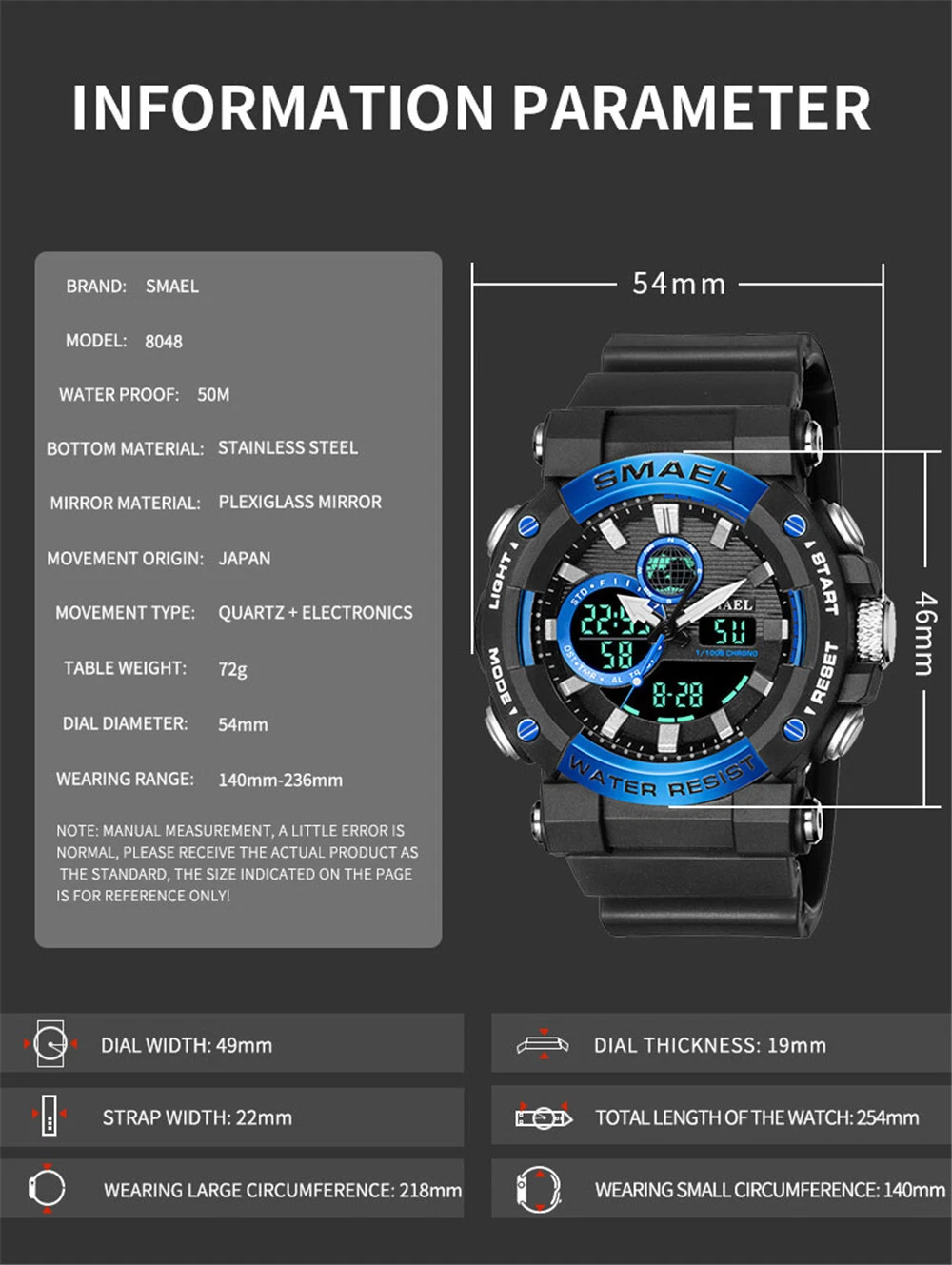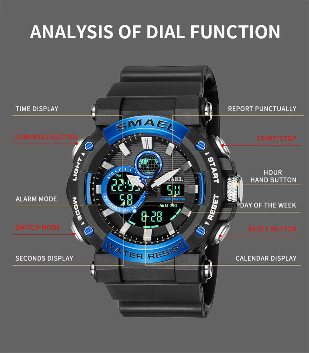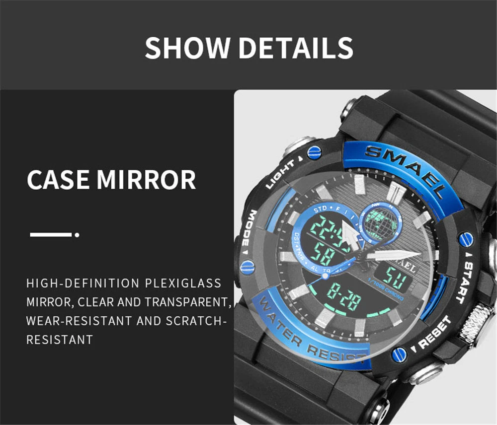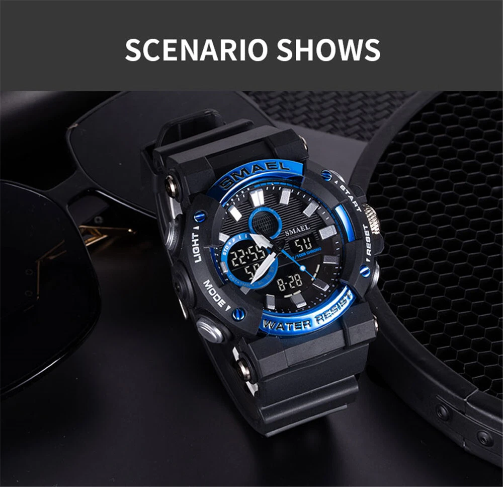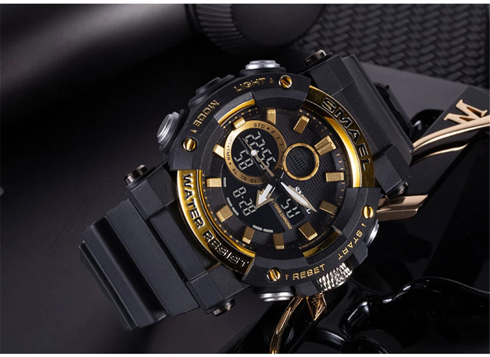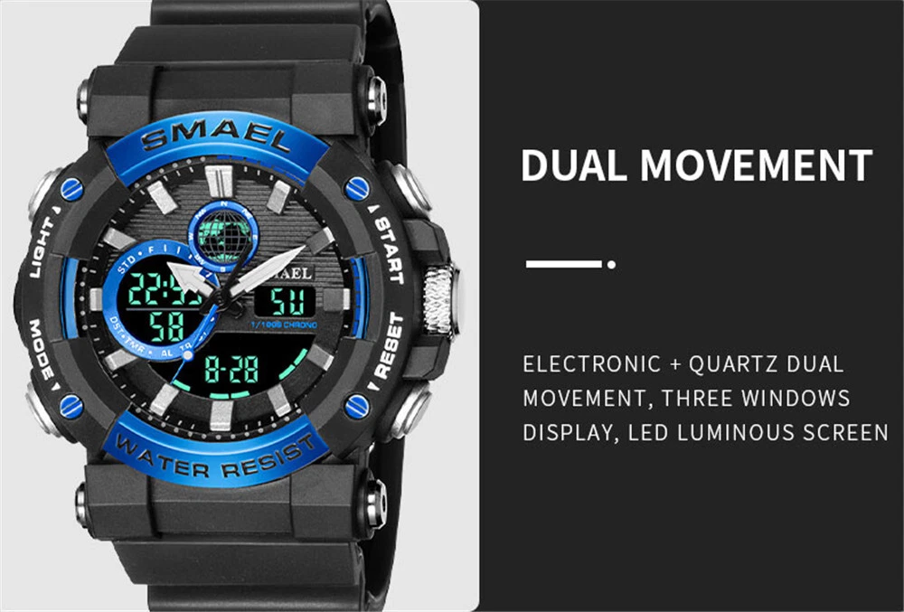 SMAEL Men Sport Watches Rubber Strap Digital LED Electronic Military Wristwatch