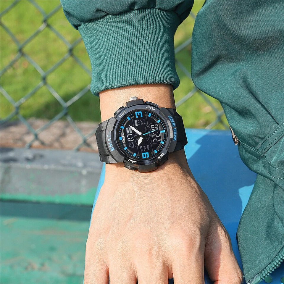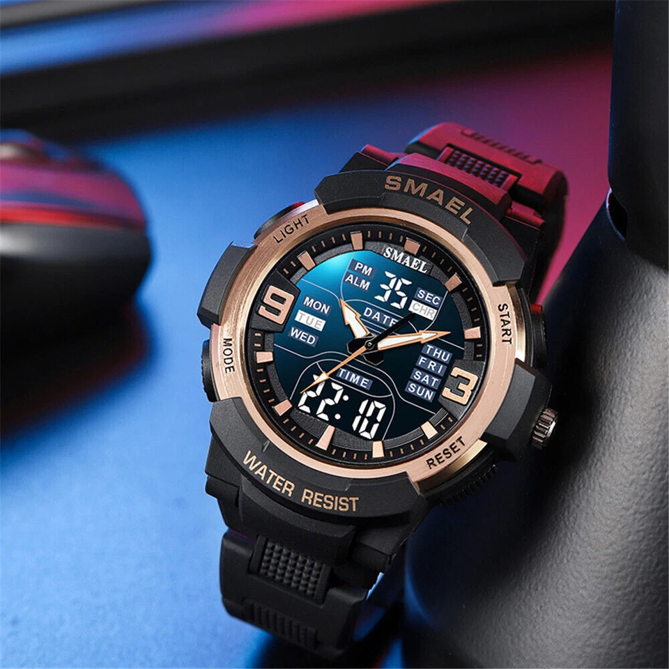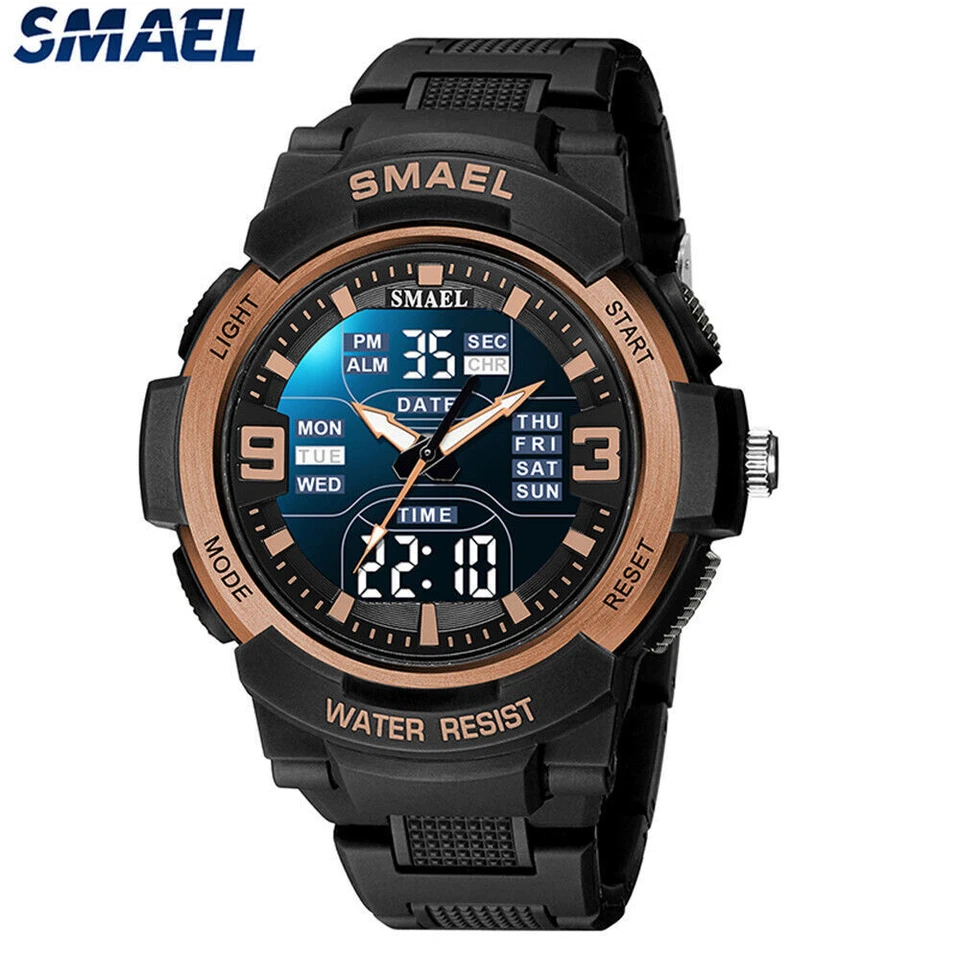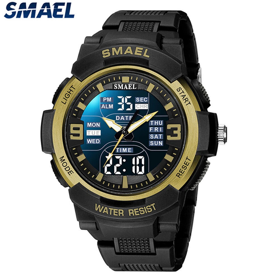 SMAEL Men Digital Watch LED Military Sport Wristwatch Big Dial Boy Alarm Watches
