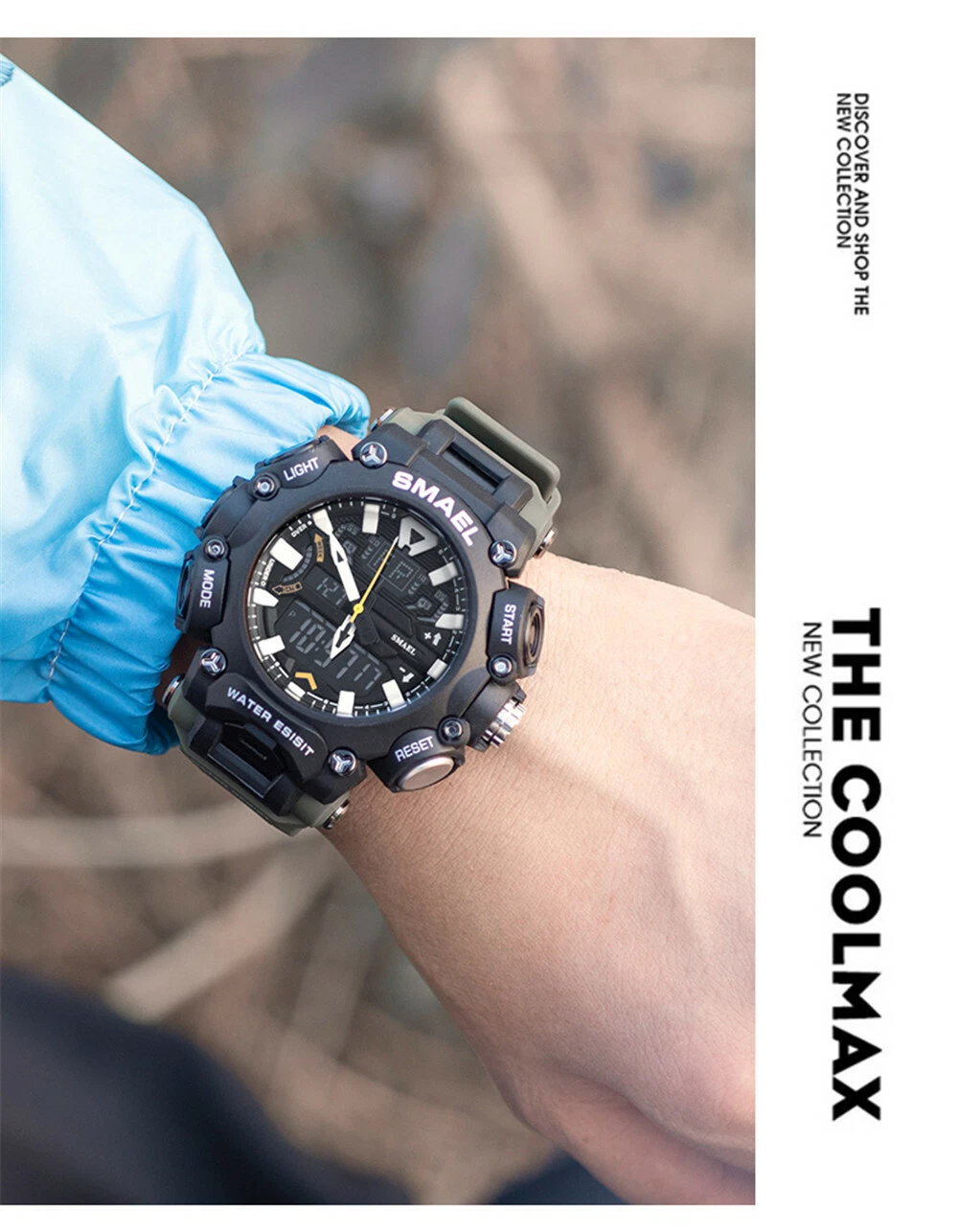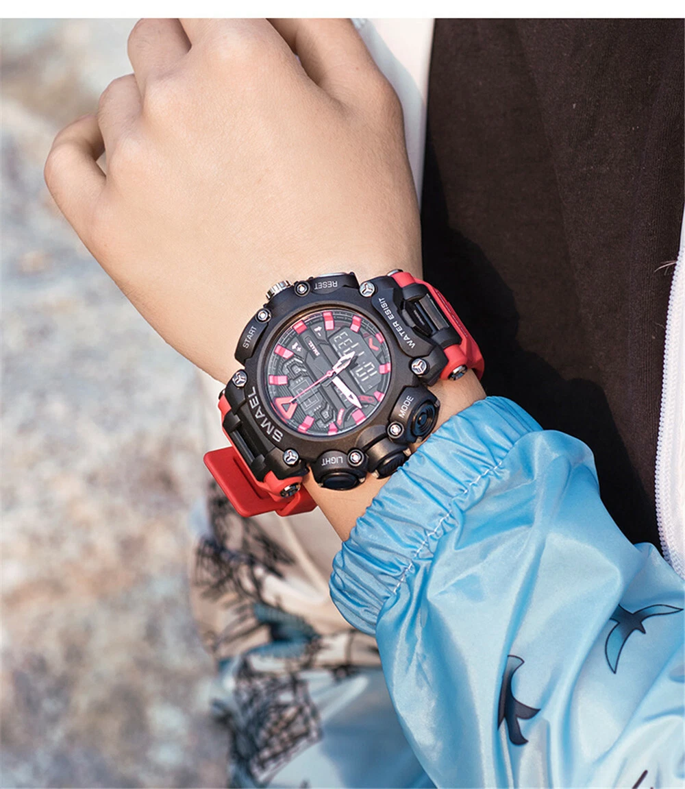 SMAEL Men Sport Watch Big Dial Electronic Wristwatch Shockproof Digital Watches