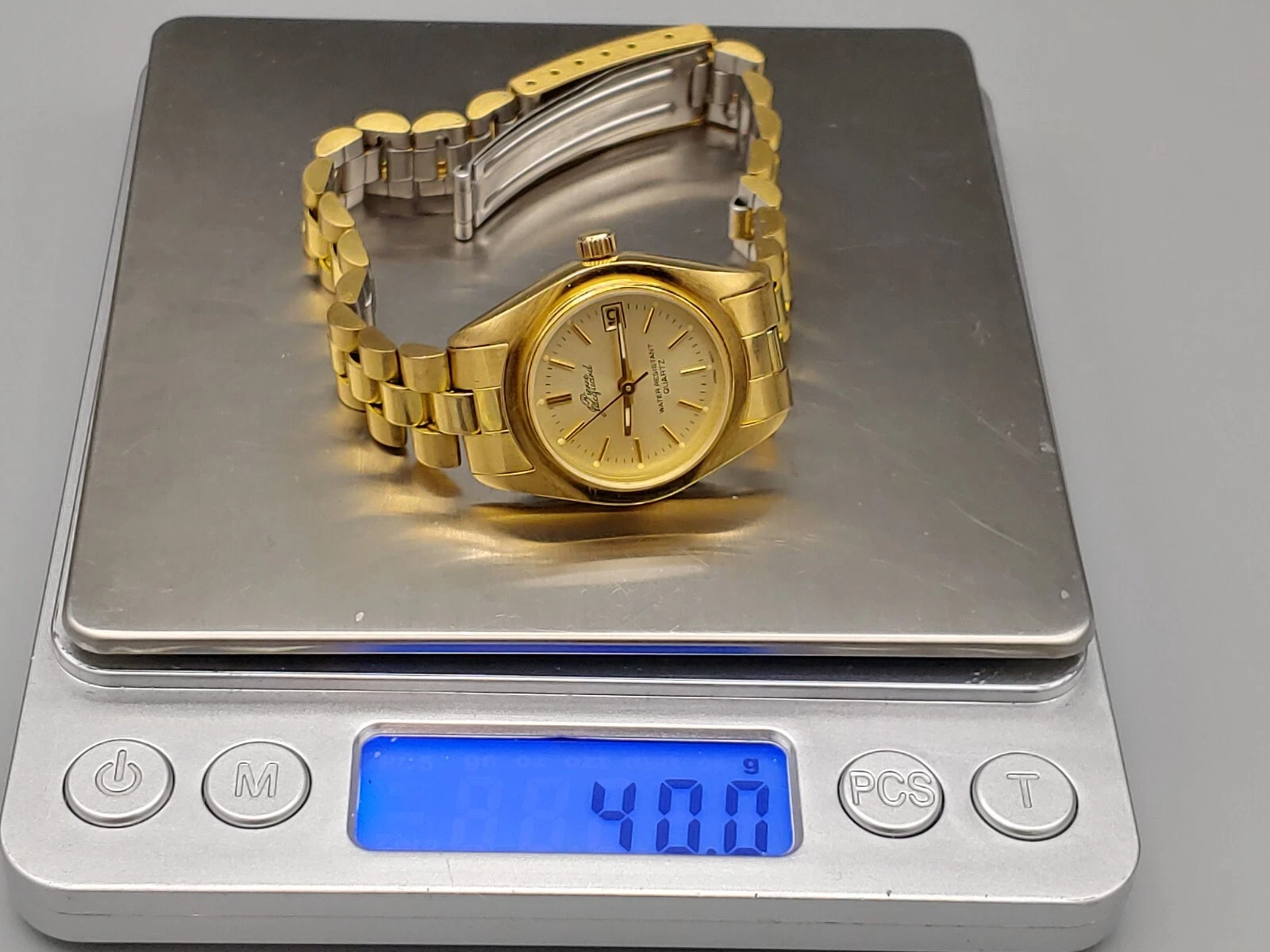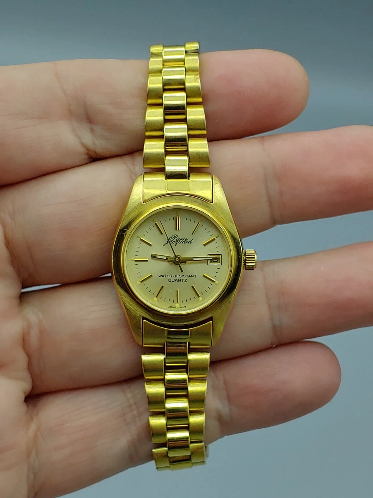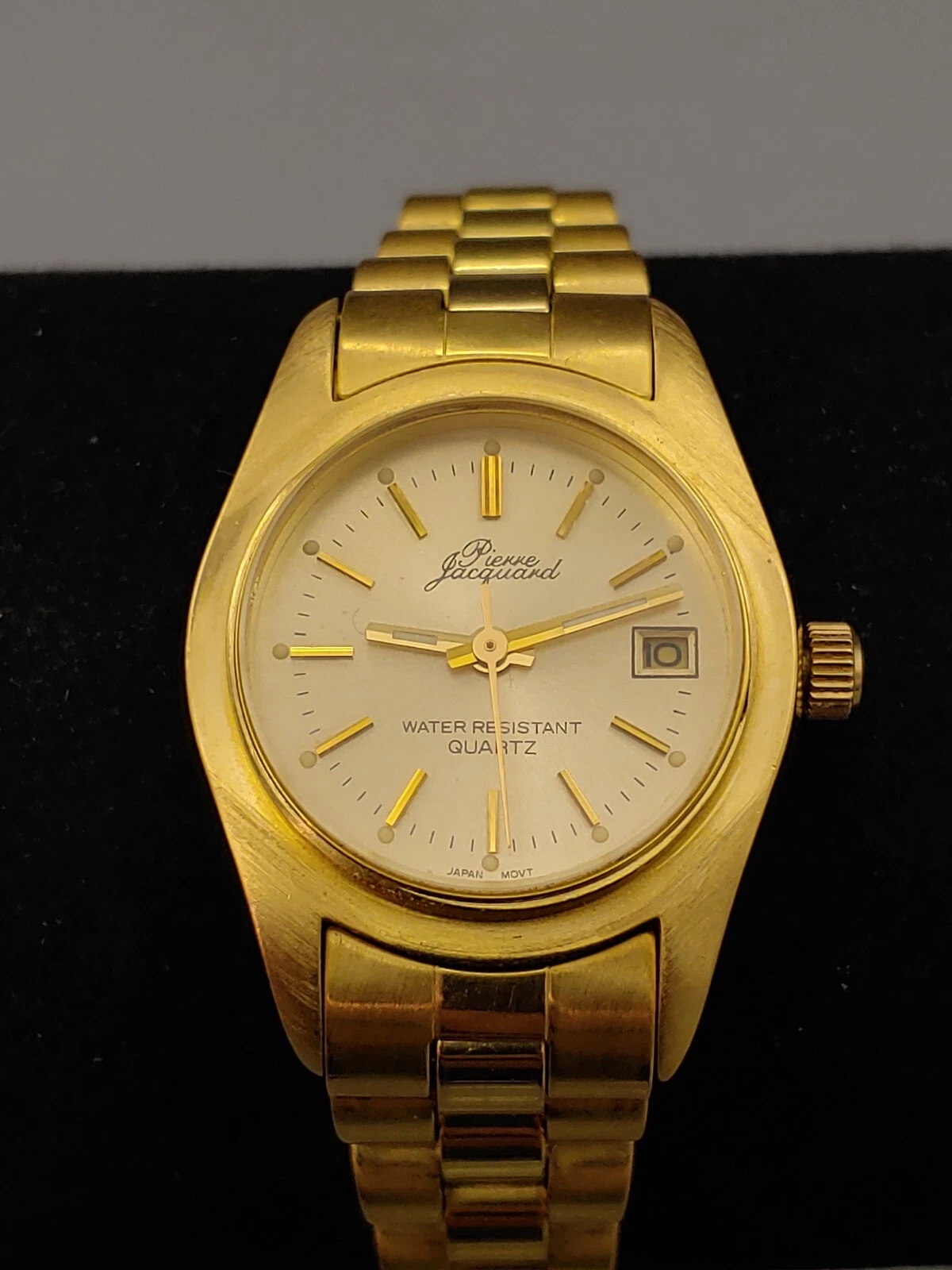 VTG Pierre Jacquard Watch Gold Toned 25mm Jubilee Bracelet Day Date New Battery