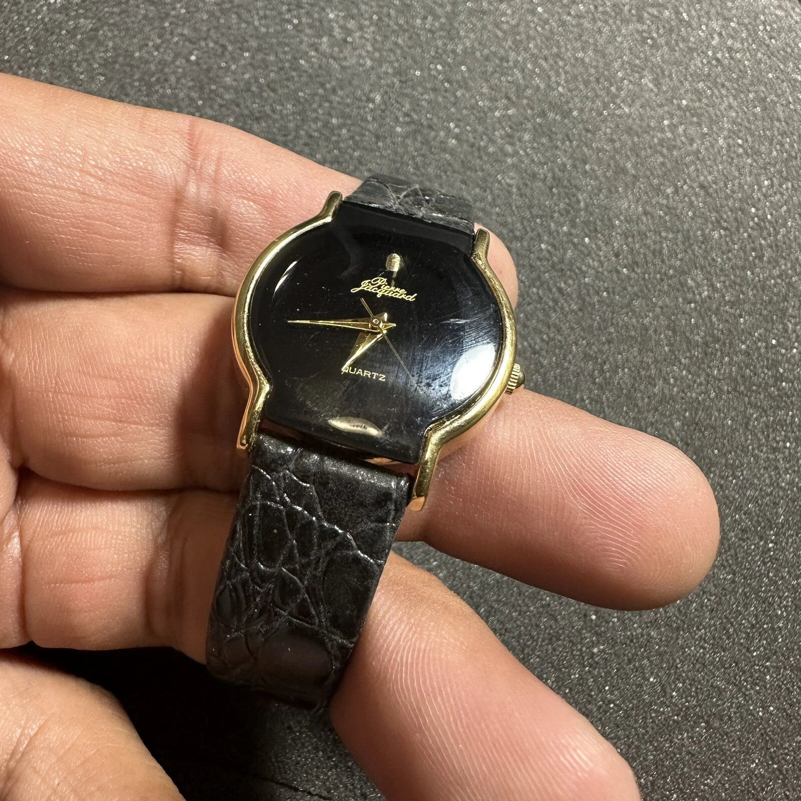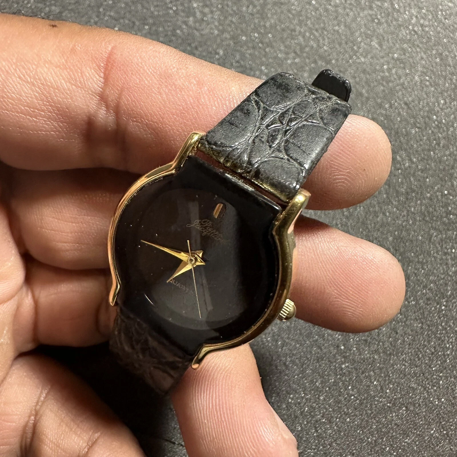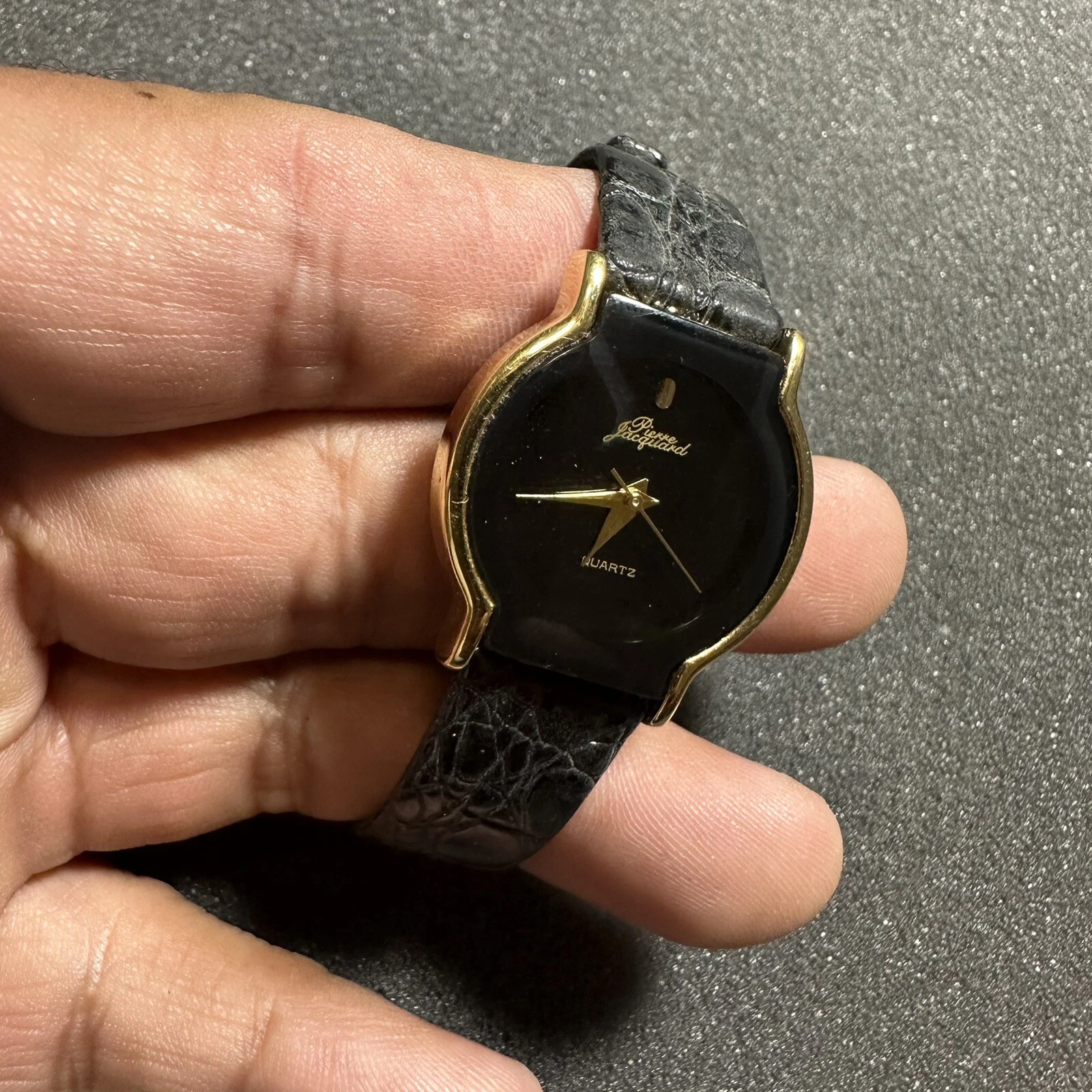 Pierre Jacquard Ladies Watch Gold Tone Black Dial Quartz Movement Working