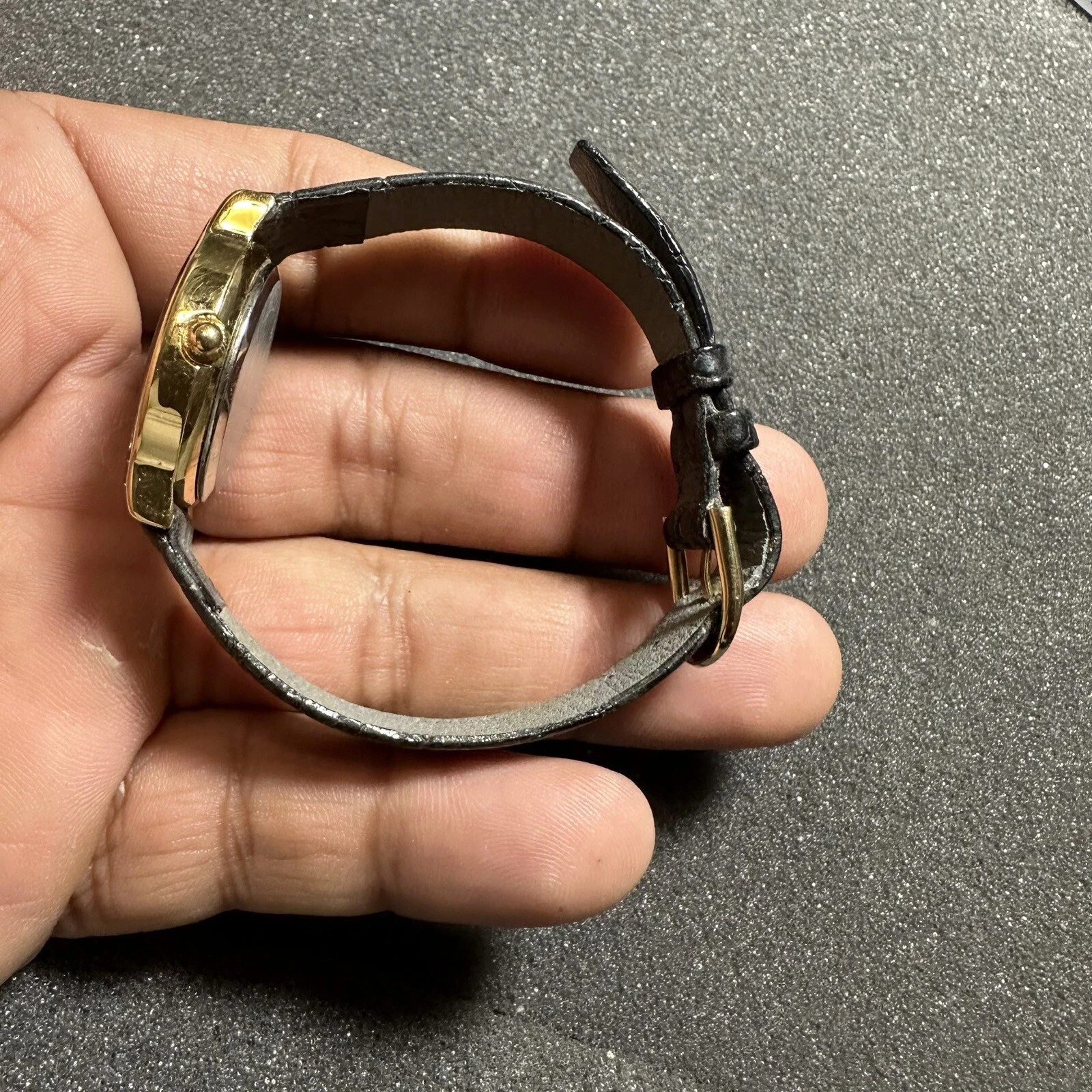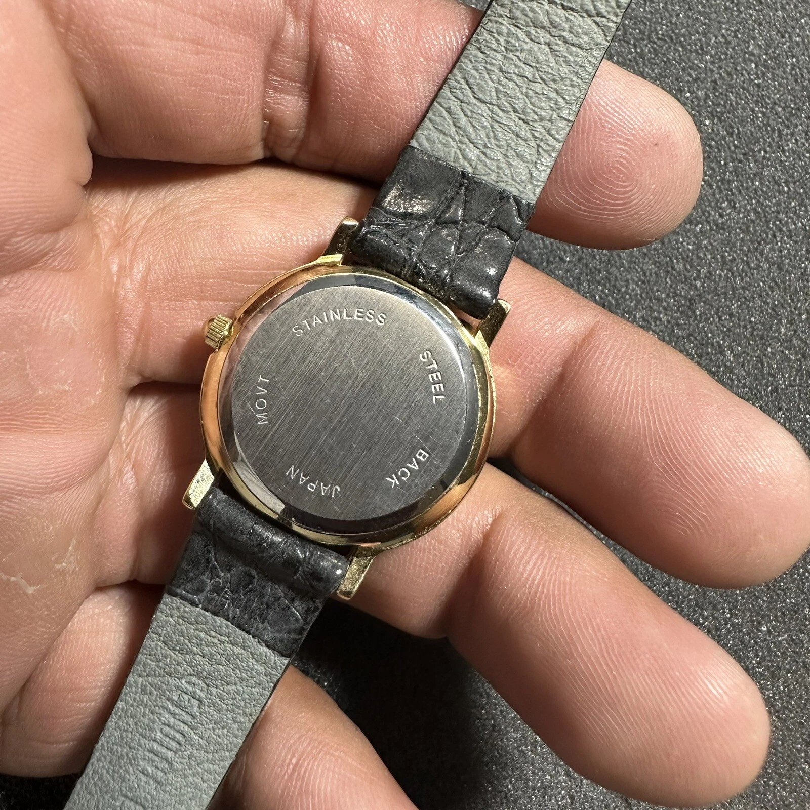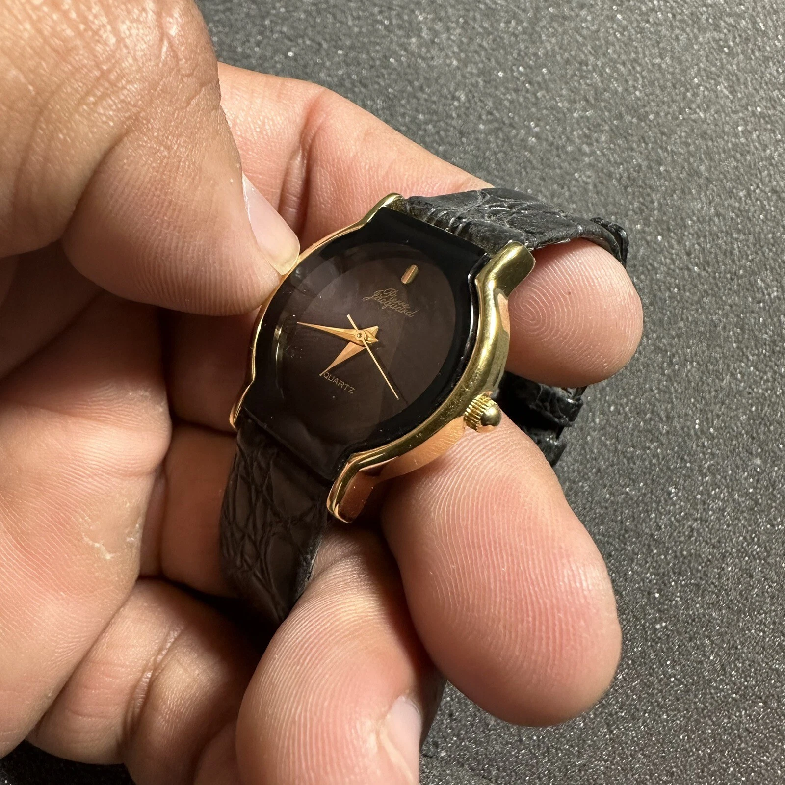 Pierre Jacquard Ladies Watch Gold Tone Black Dial Quartz Movement Working