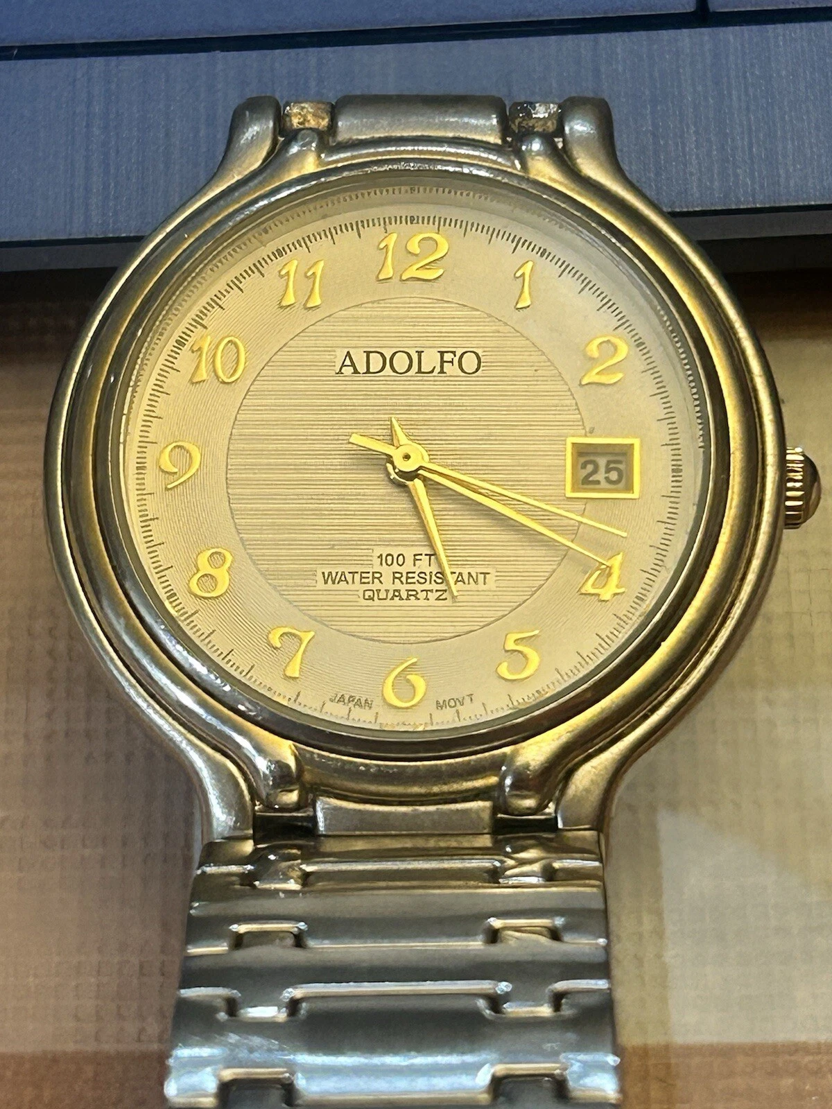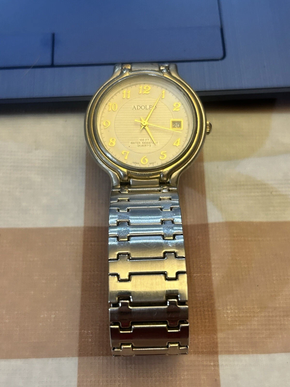 Adolfo Quartz Men’s Watch Two Tone Date Vintage expansion Band