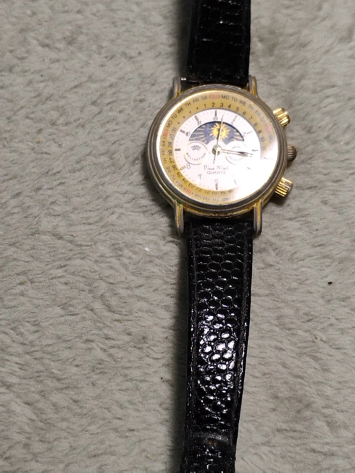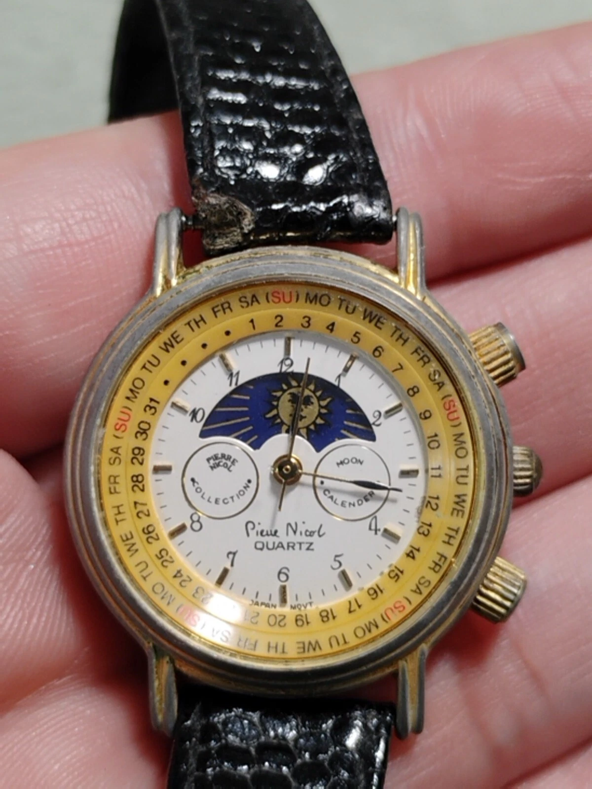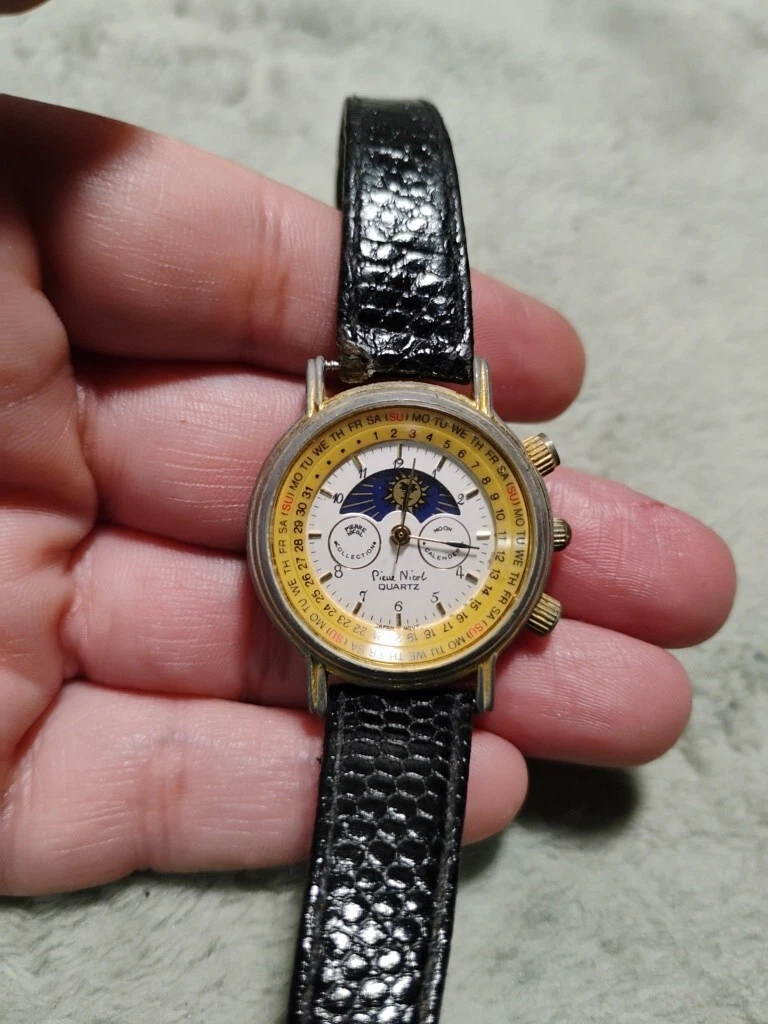 VTG Pierre Nicol Watch Womens Round Moon Calendar Phase Luner Date Two Tone