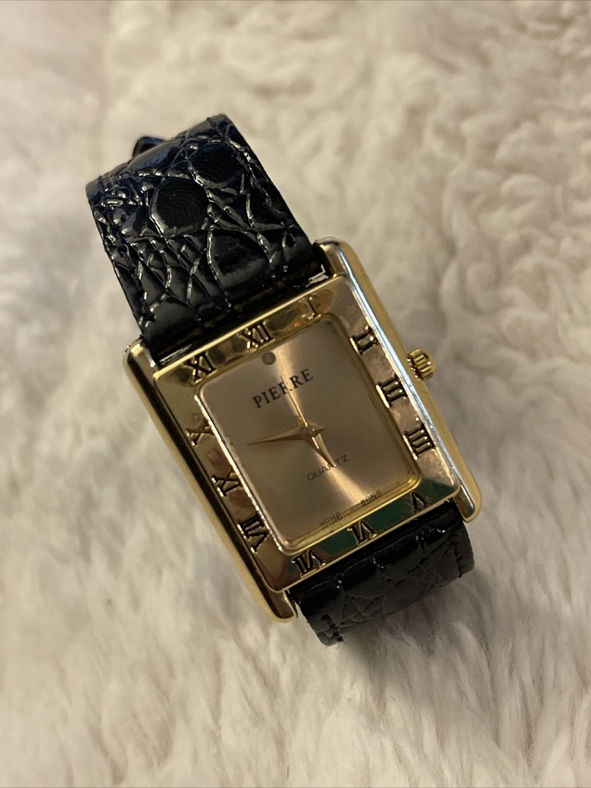 Piere Nicol Ladies Watch Black Patent Leather Band Wristwatch New 22mm