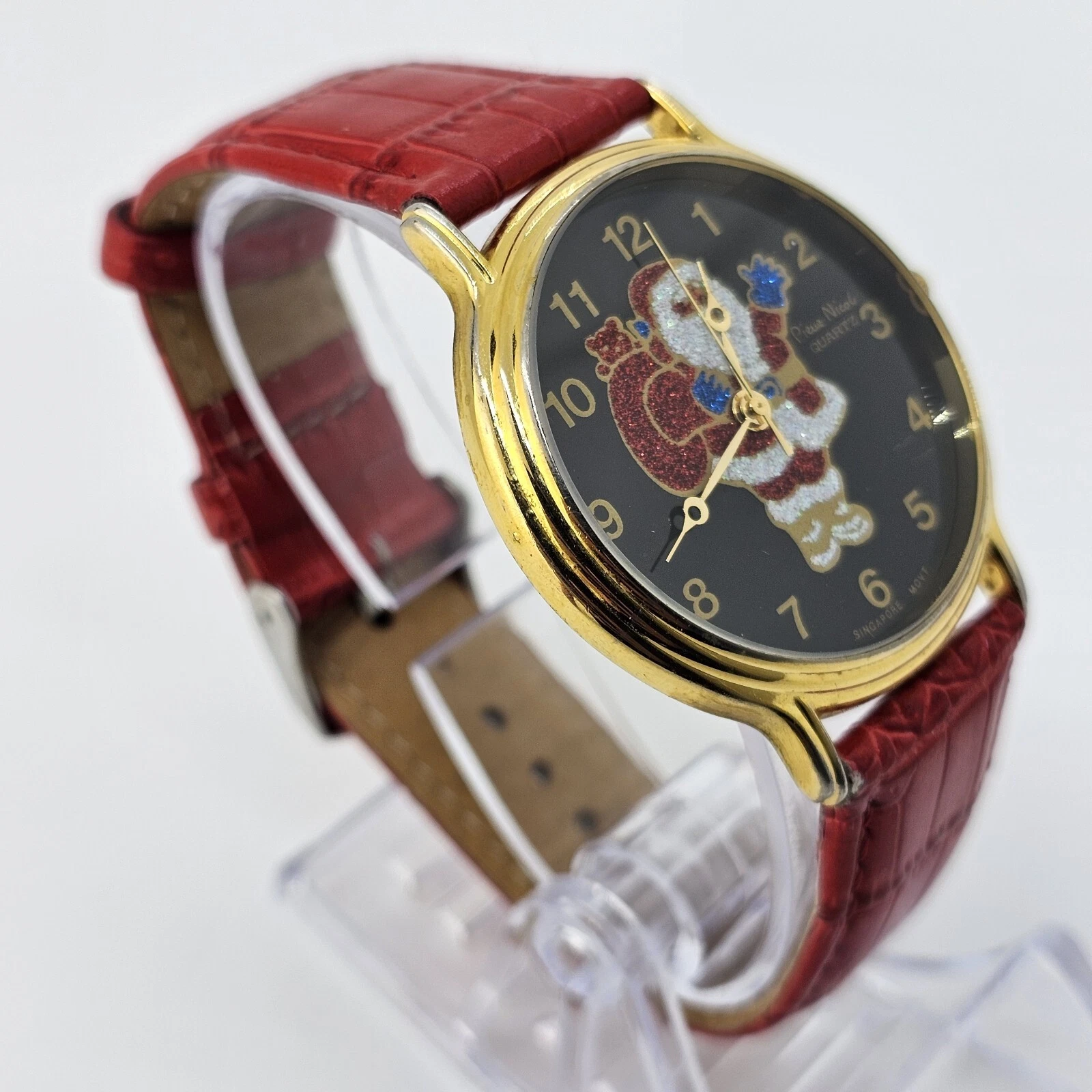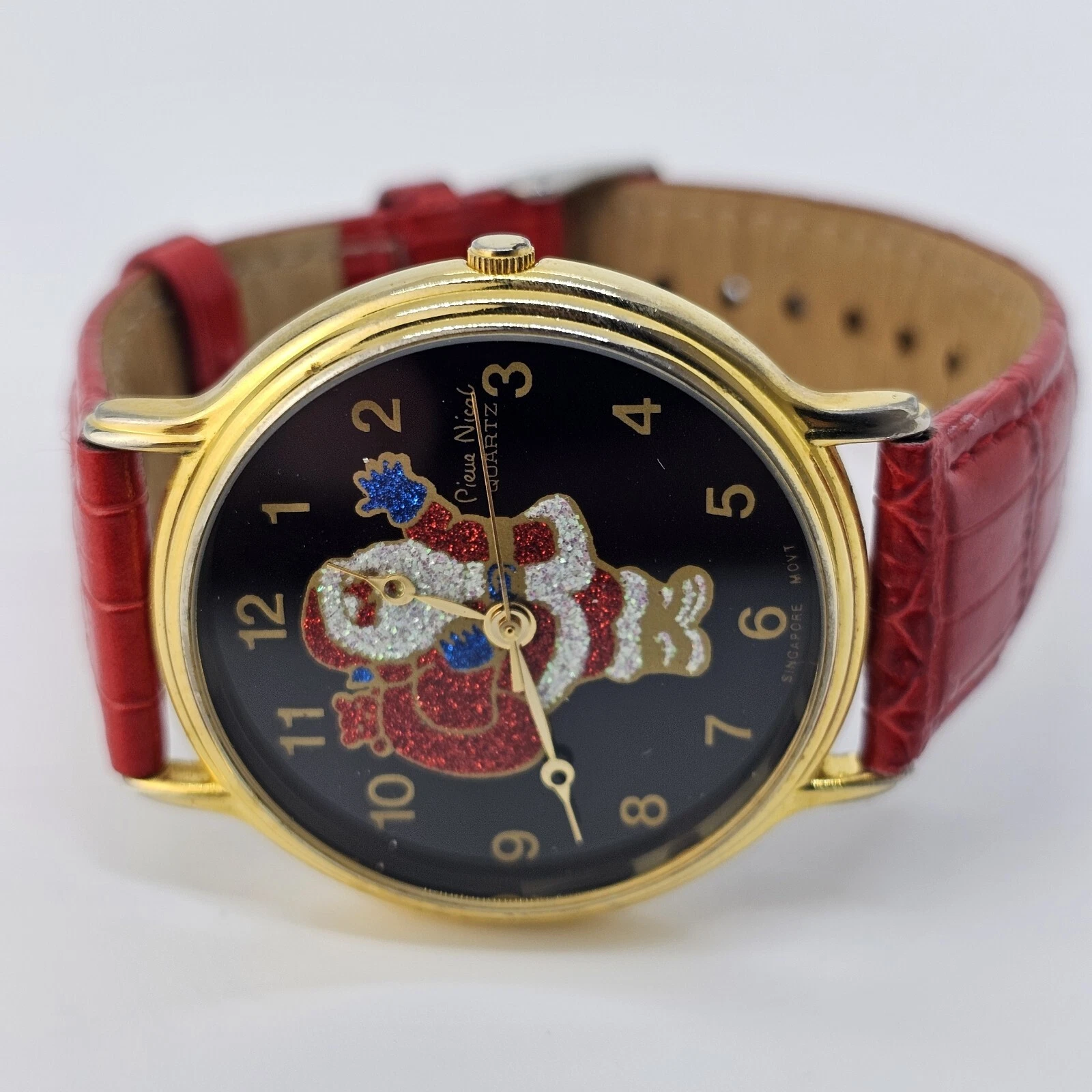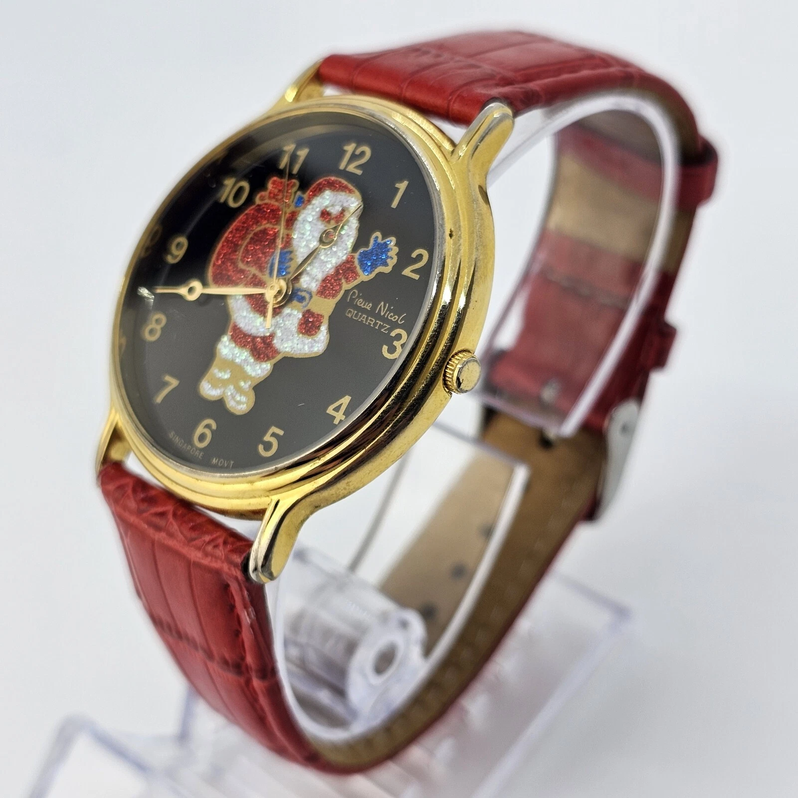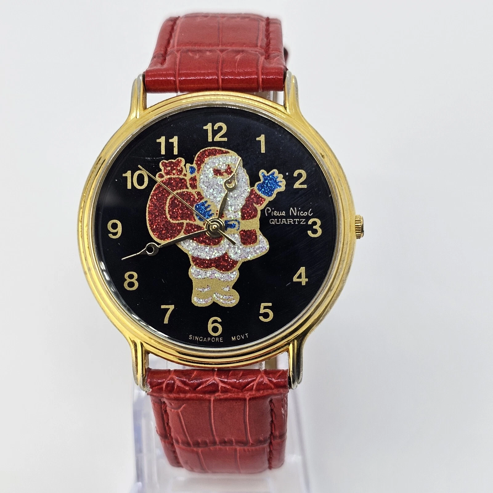 VTG Pierre Nicol Santa Claus Christmas Watch 40MM Red Leather Bands New Battery