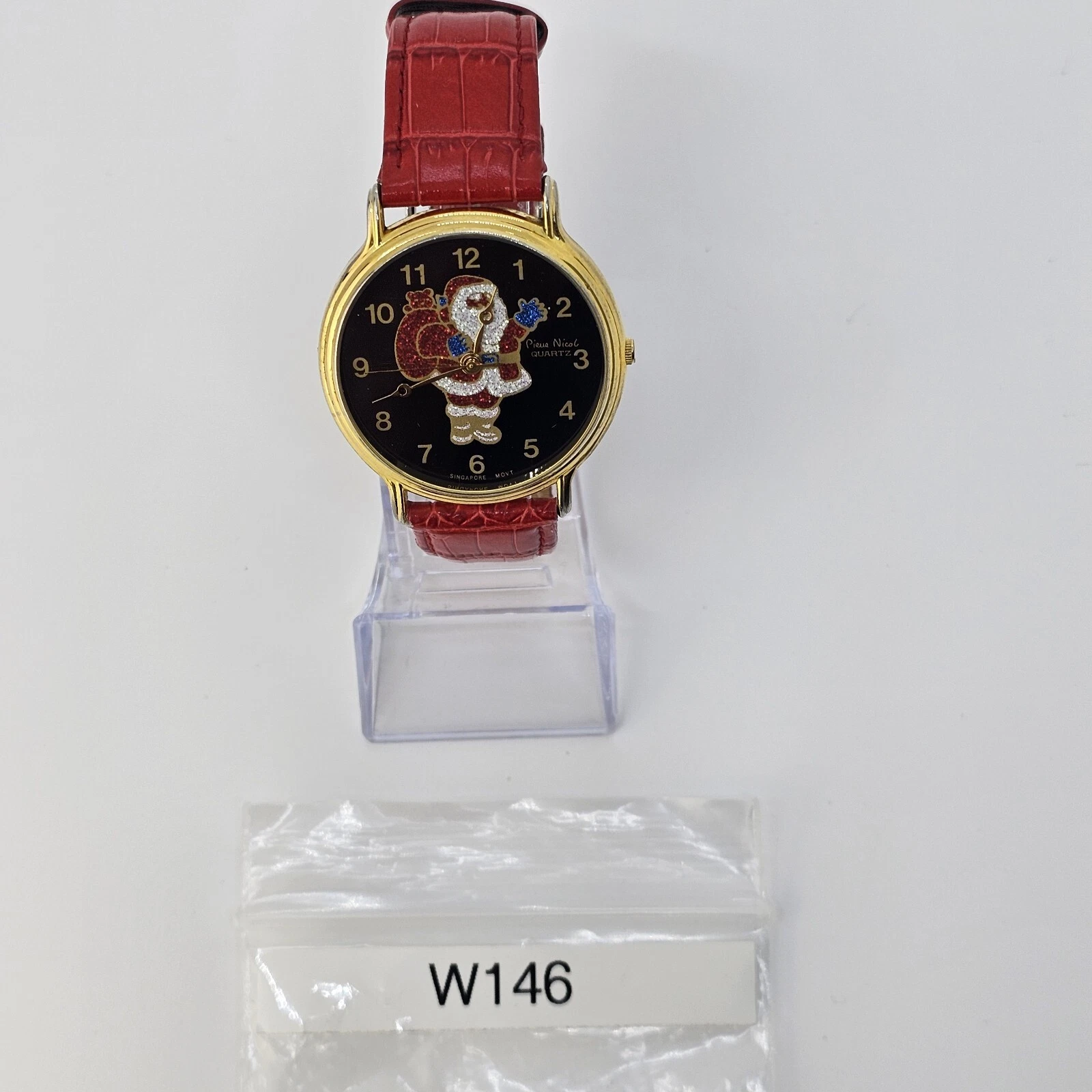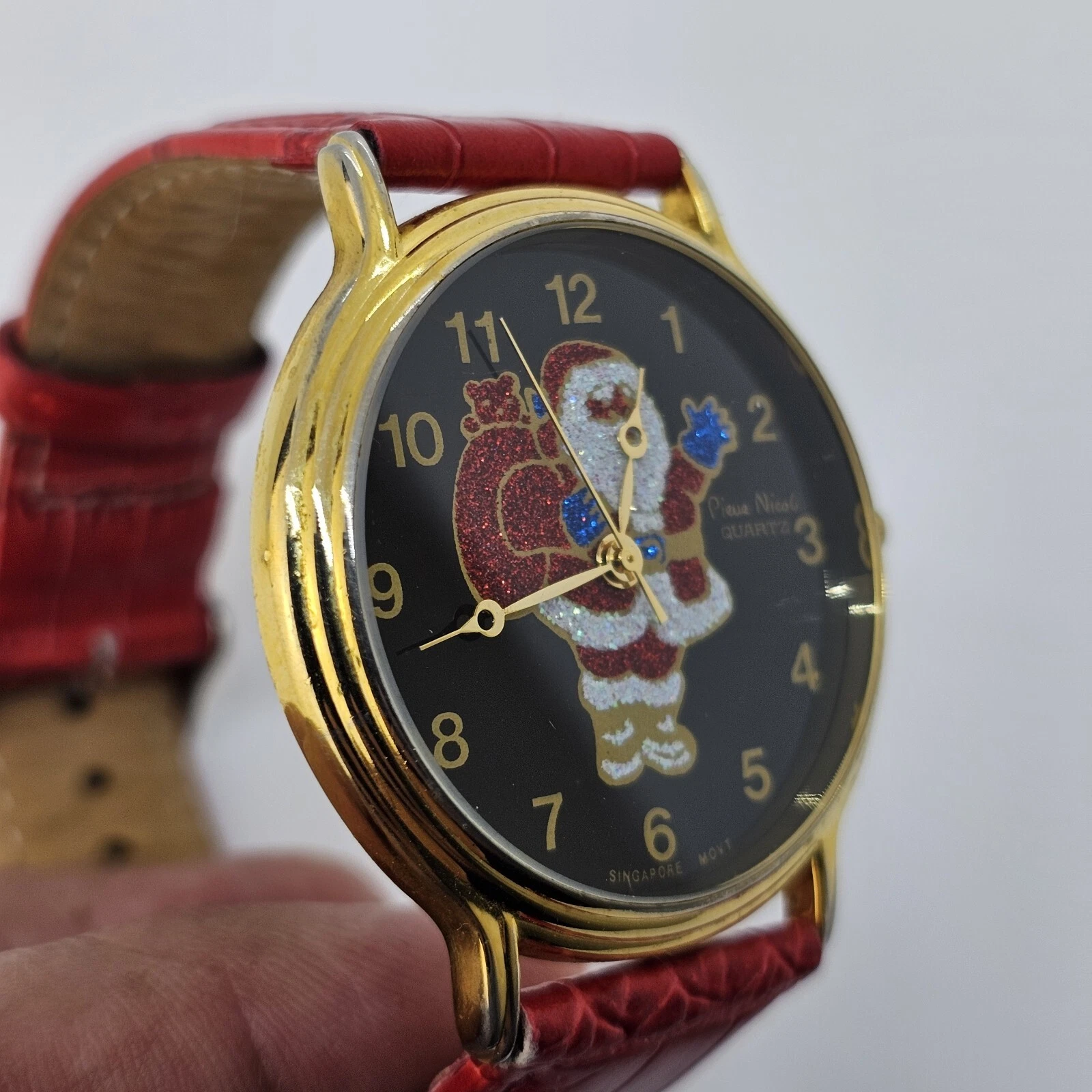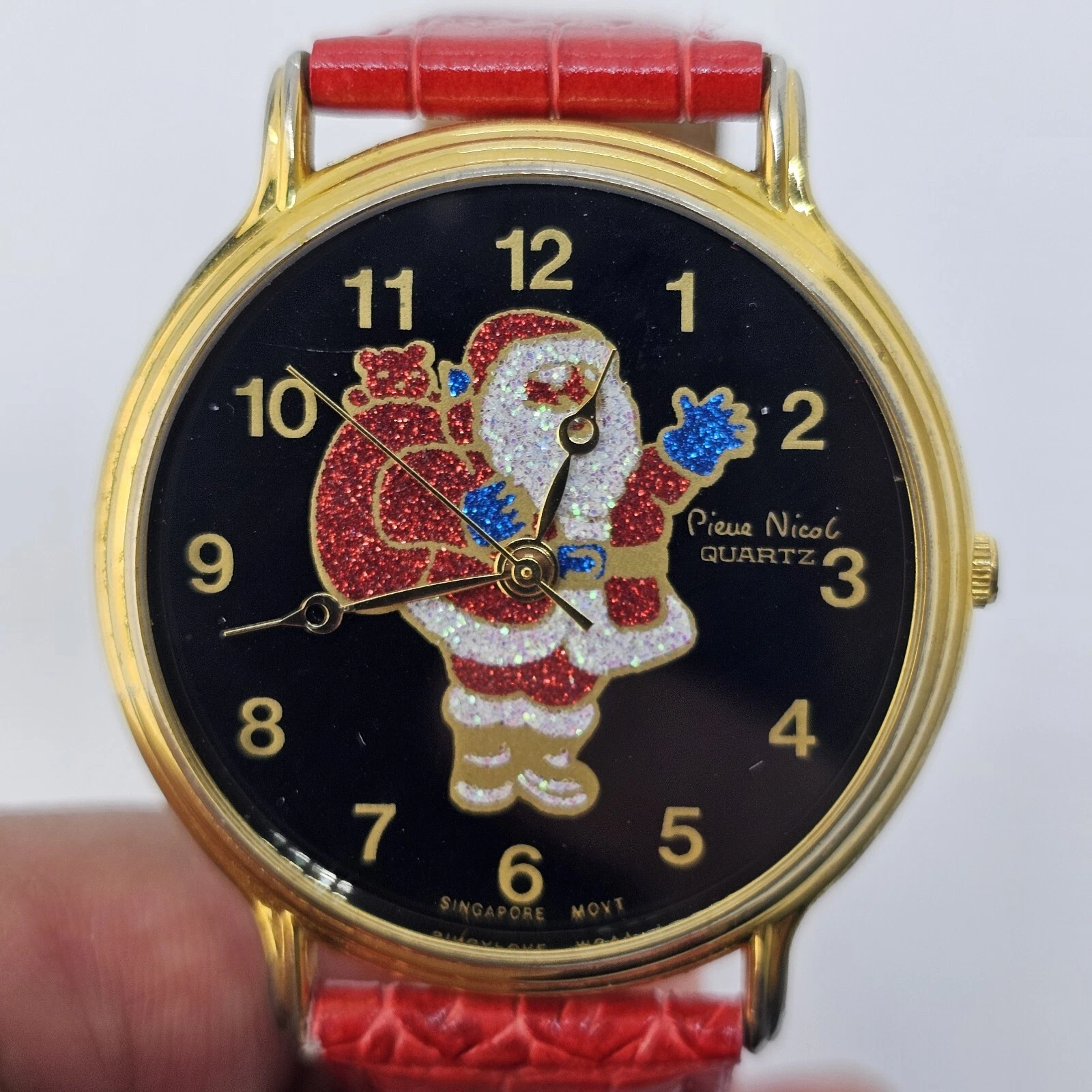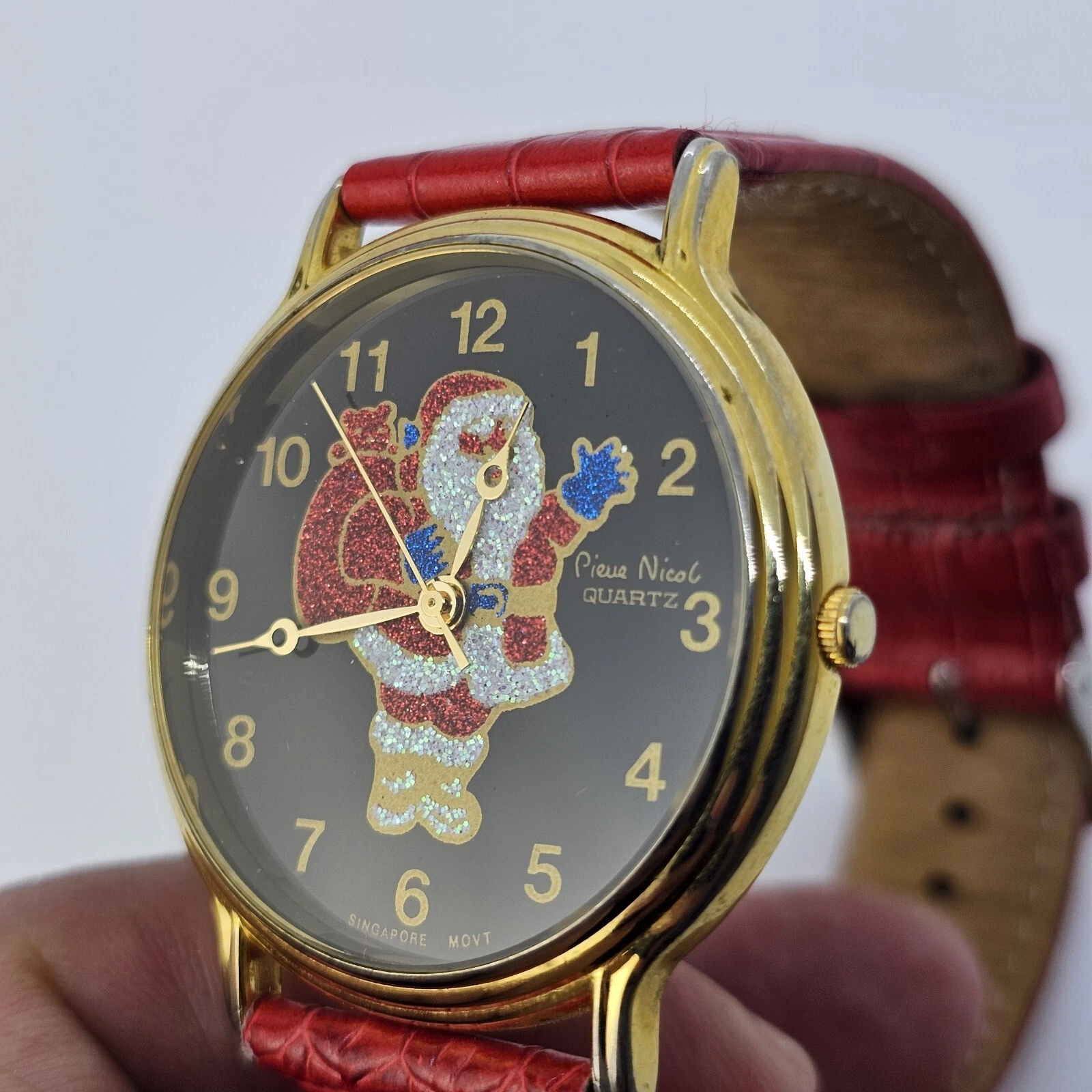 VTG Pierre Nicol Santa Claus Christmas Watch 40MM Red Leather Bands New Battery