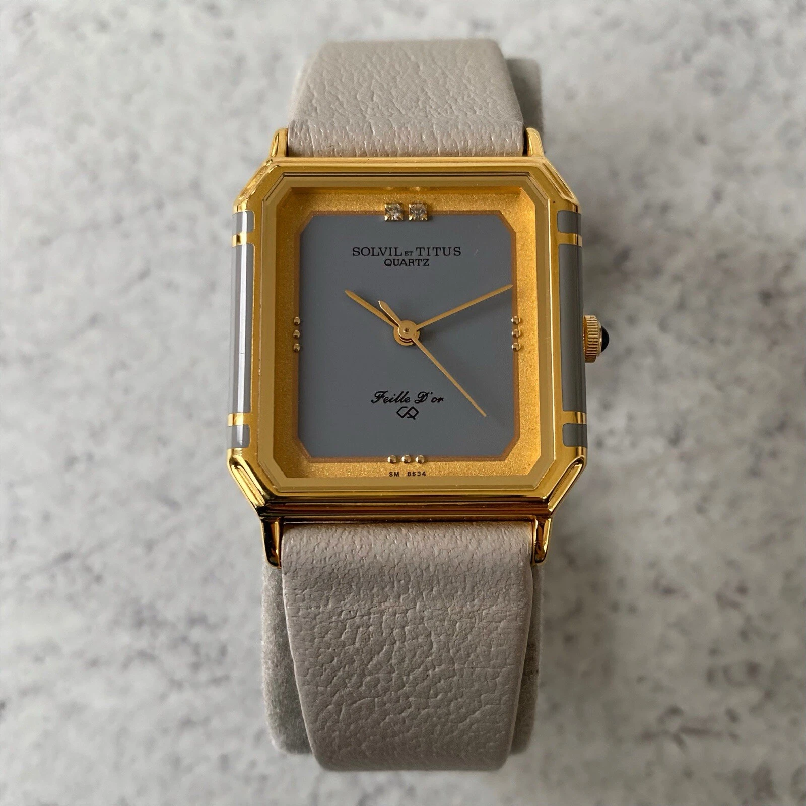 Ladies Solvil Et Titus Feille D’or Gold Plated Diamond Marker Quartz Watch - Box