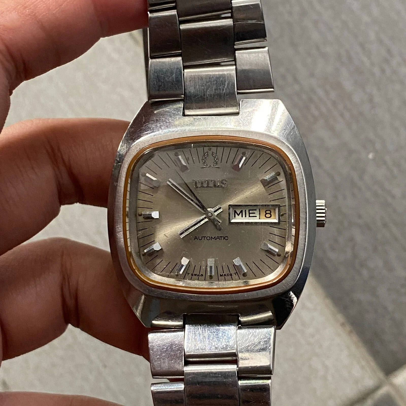 RARE Solvil Et Titus Automatic 3799 TV Shape Day Date Vintage Men Watch Swiss