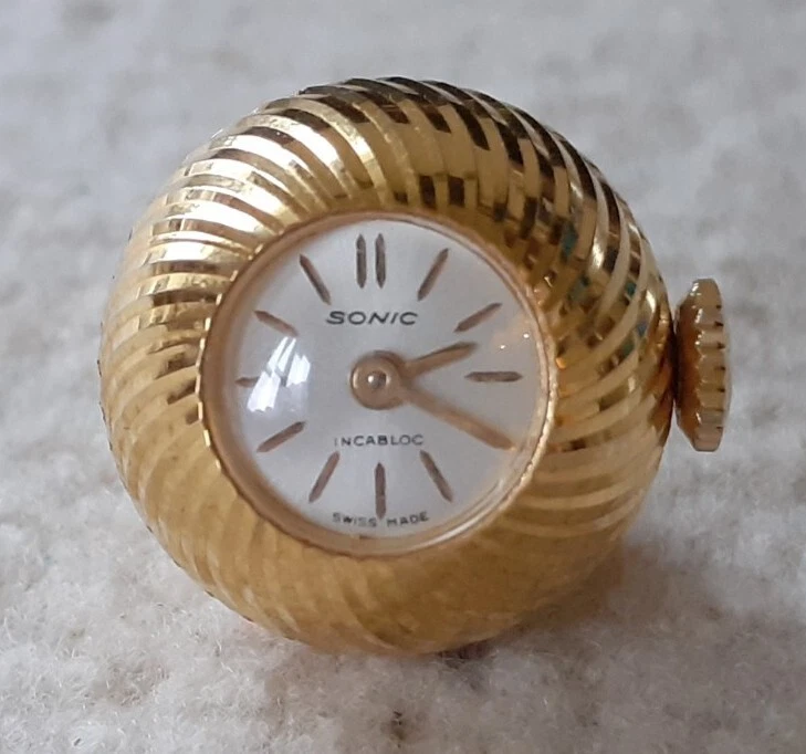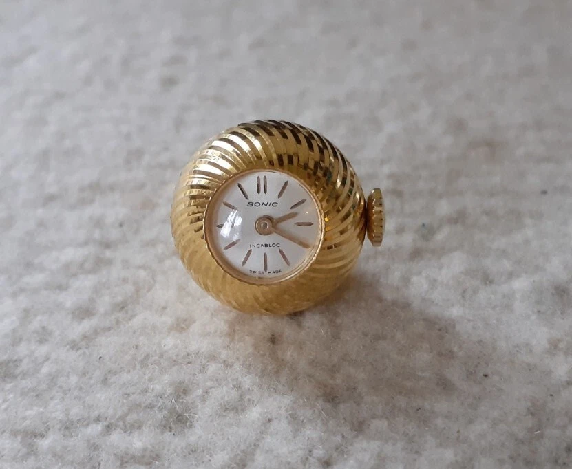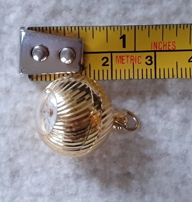 RARE GOLD TONE METAL SONIC INCABLOC SWISS MADE MECHANICAL BALL PENDANT WATCH