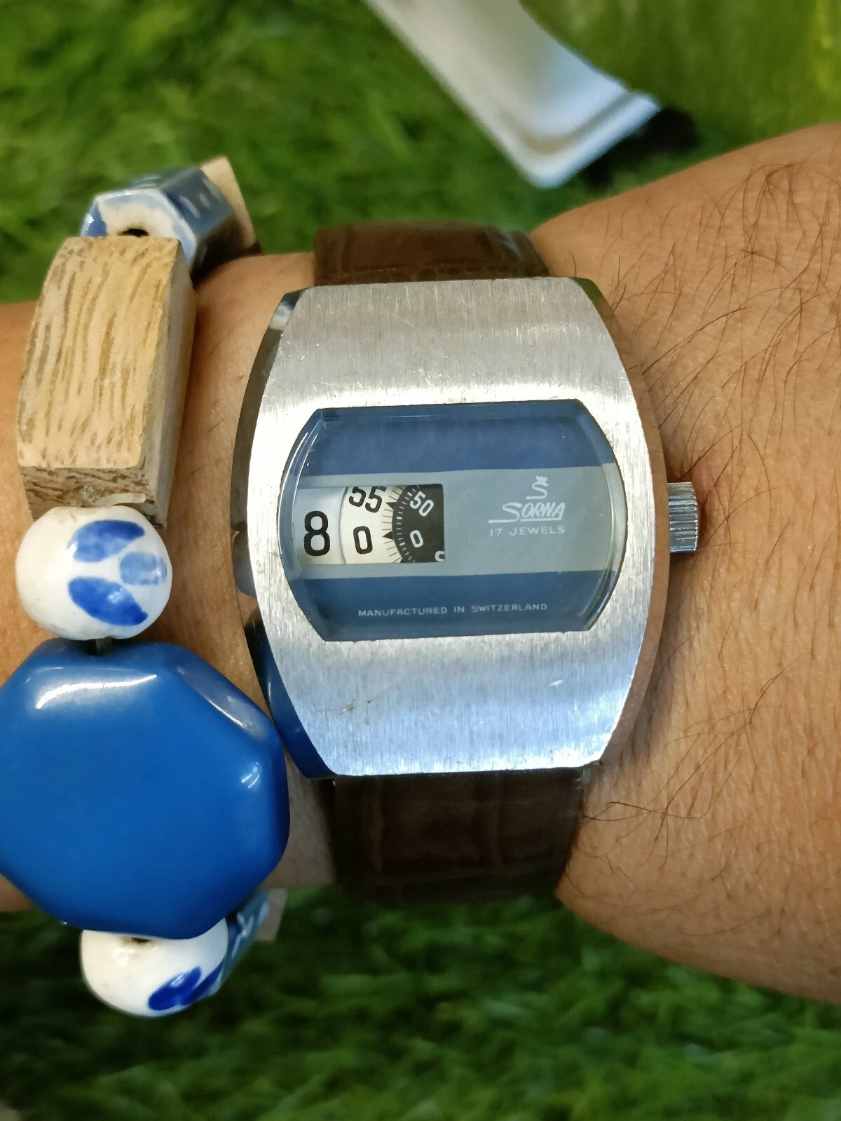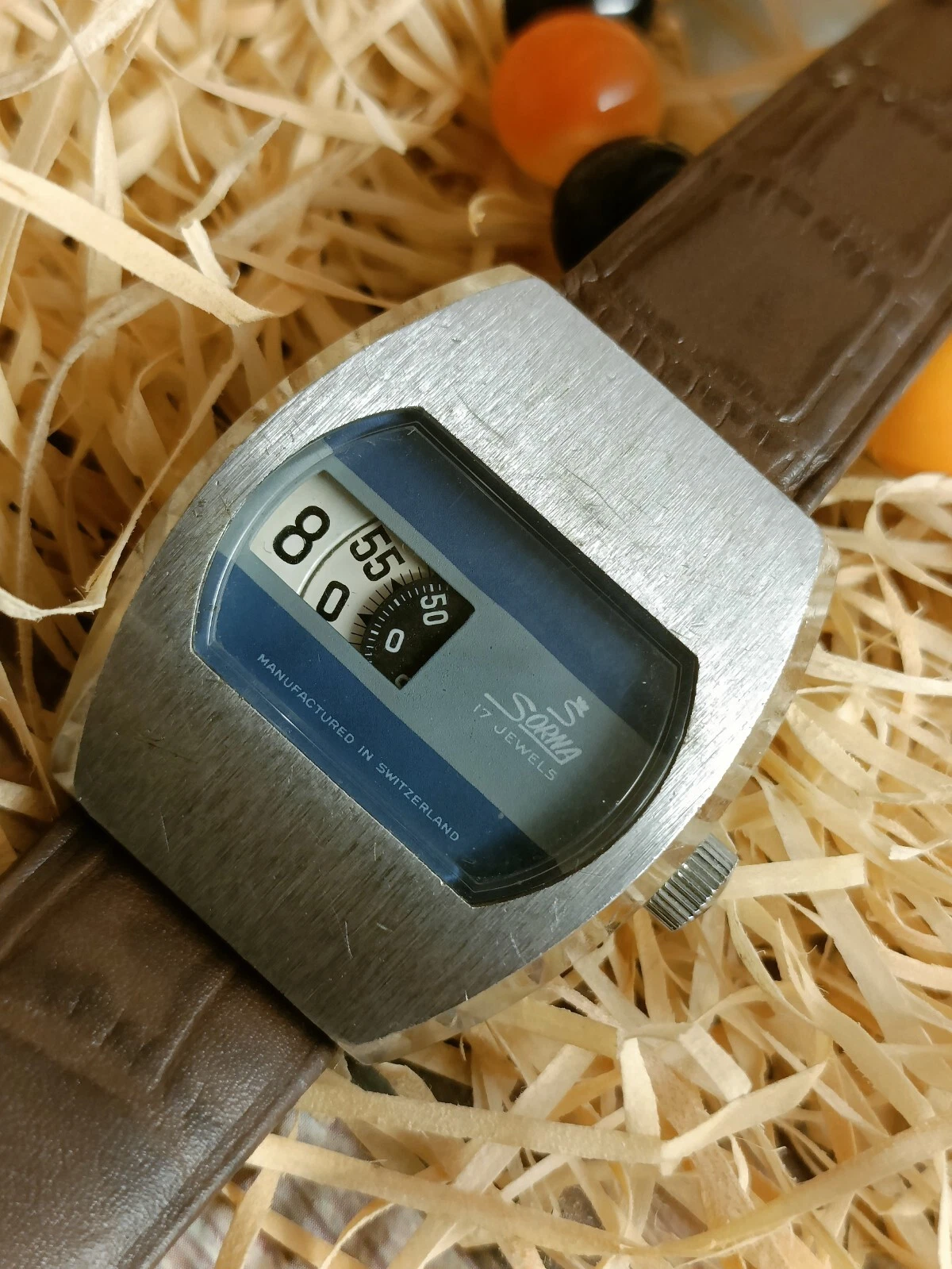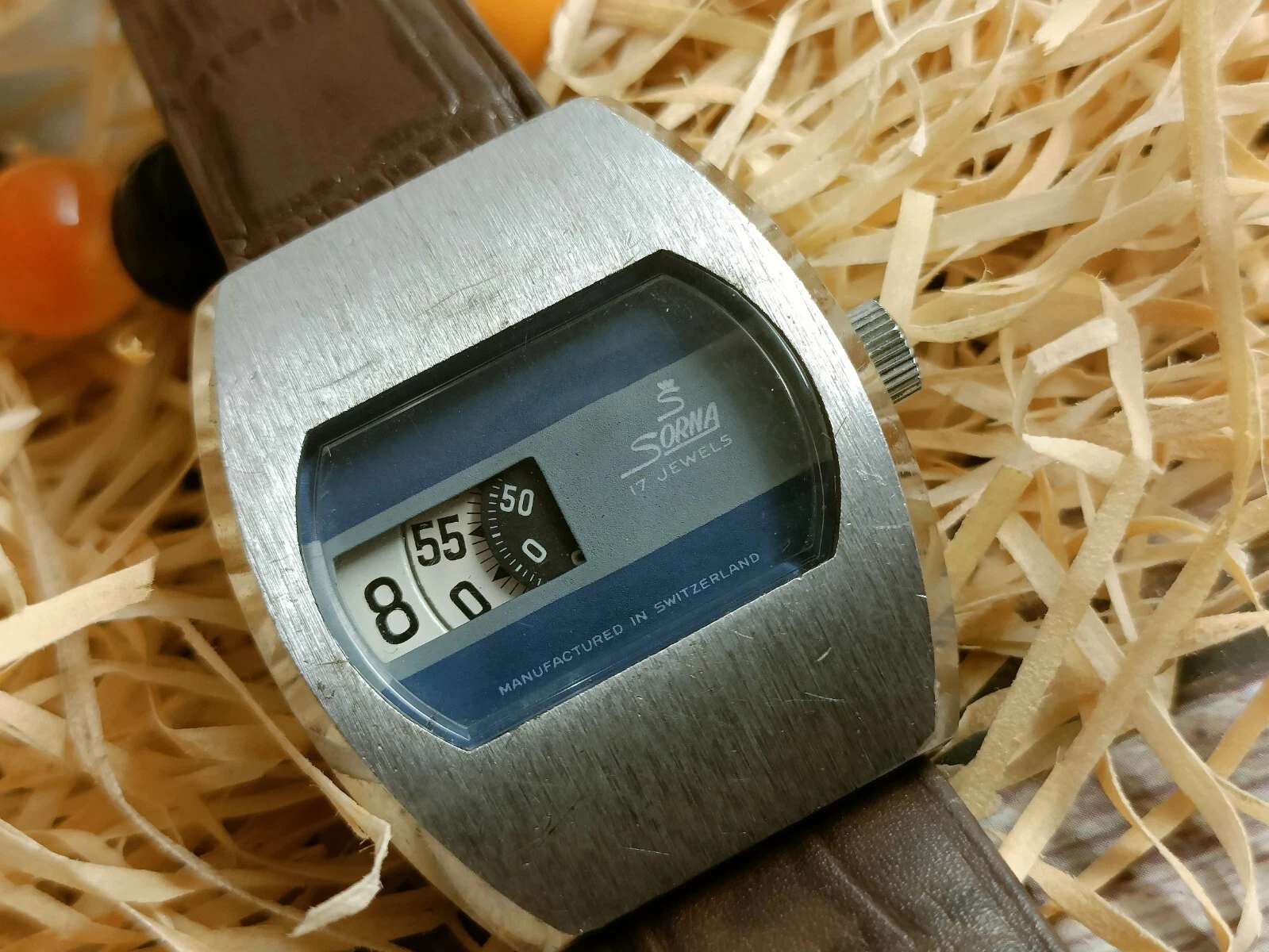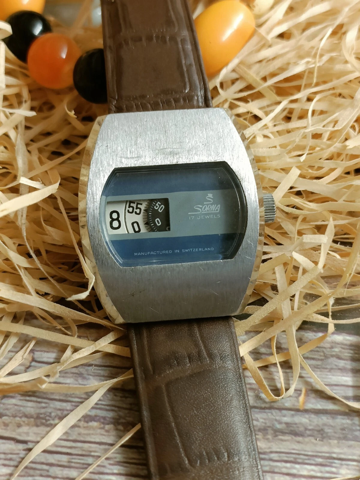 SORNA 2581 SWISS MEN'S WINDING MINT DIGITAL JUMP HOUR VINTAGE WATCH