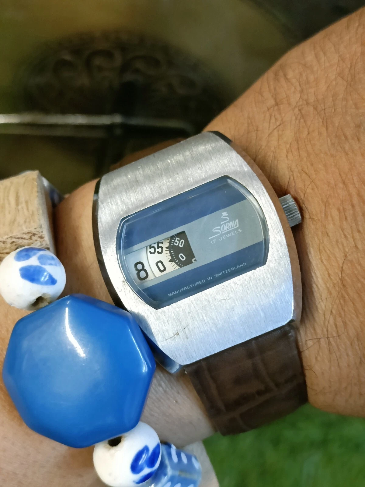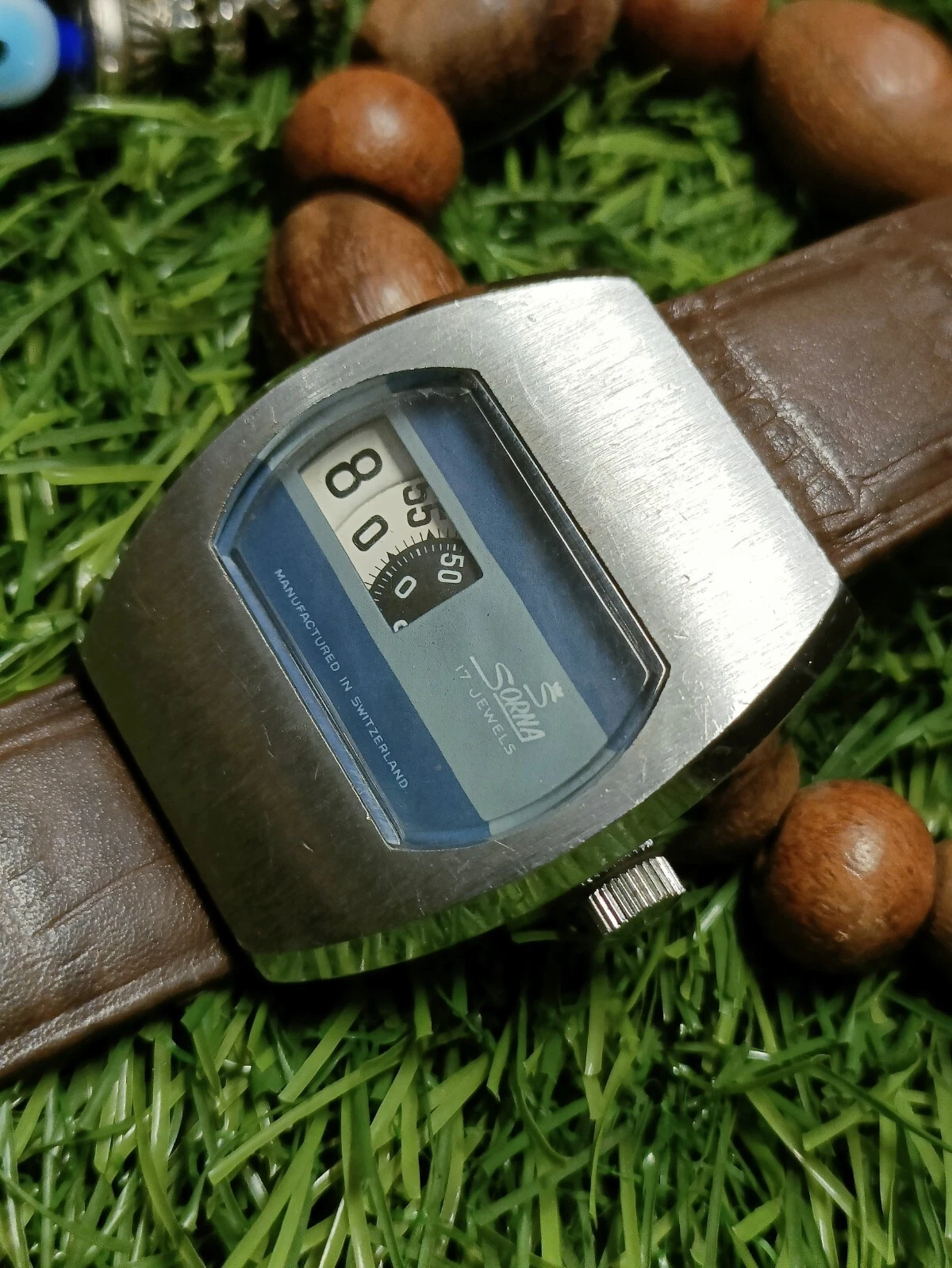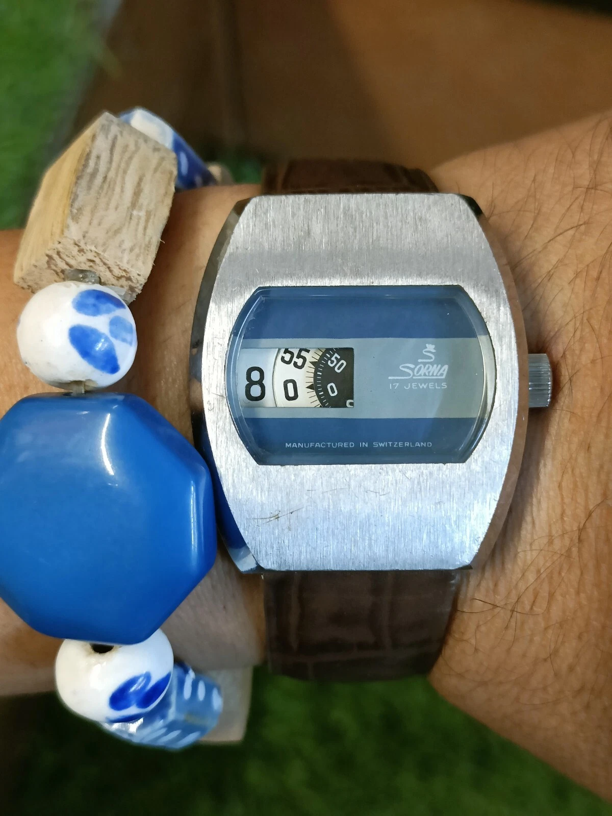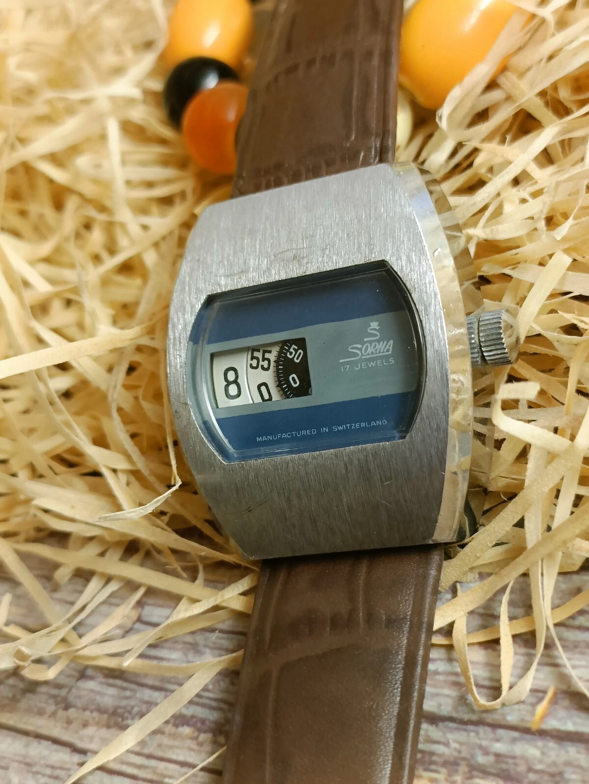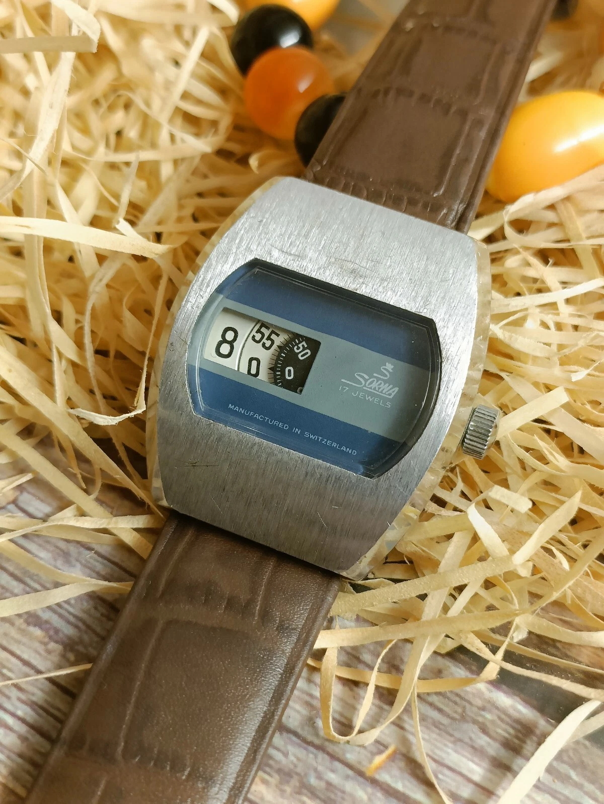 SORNA 2581 SWISS MEN'S WINDING MINT DIGITAL JUMP HOUR VINTAGE WATCH