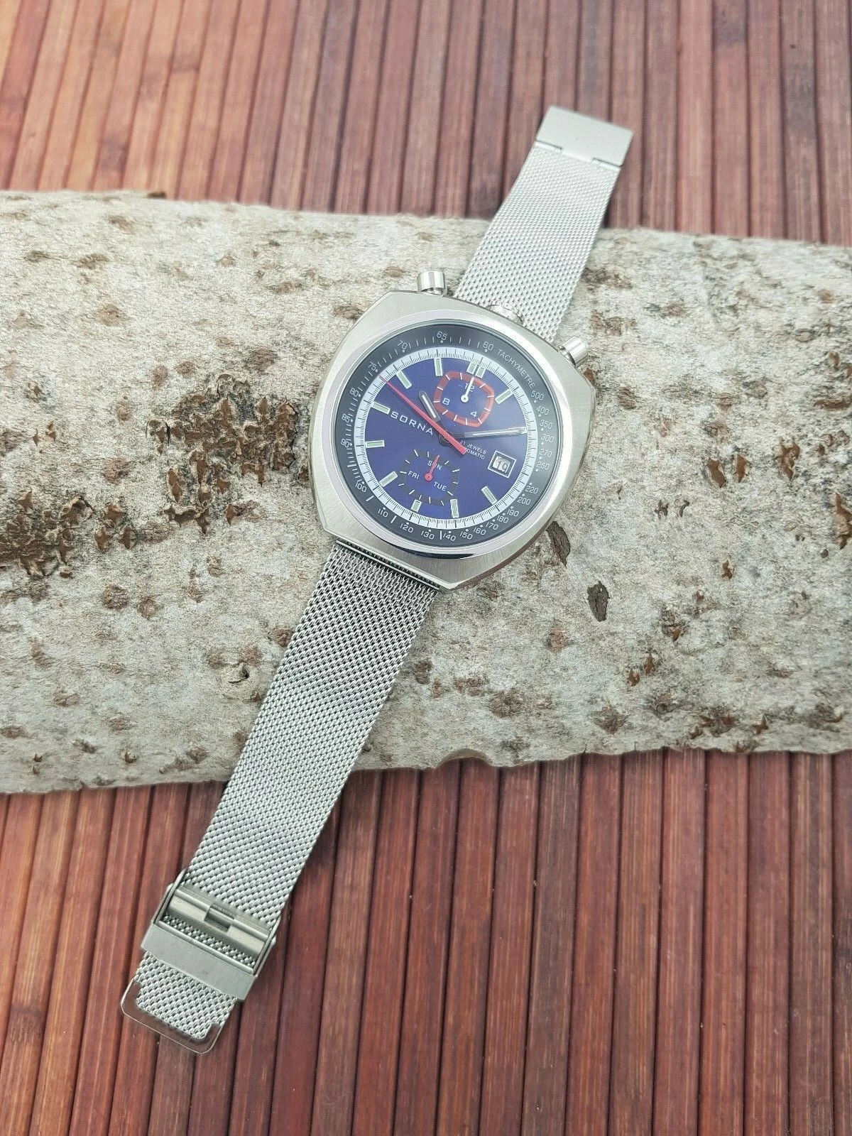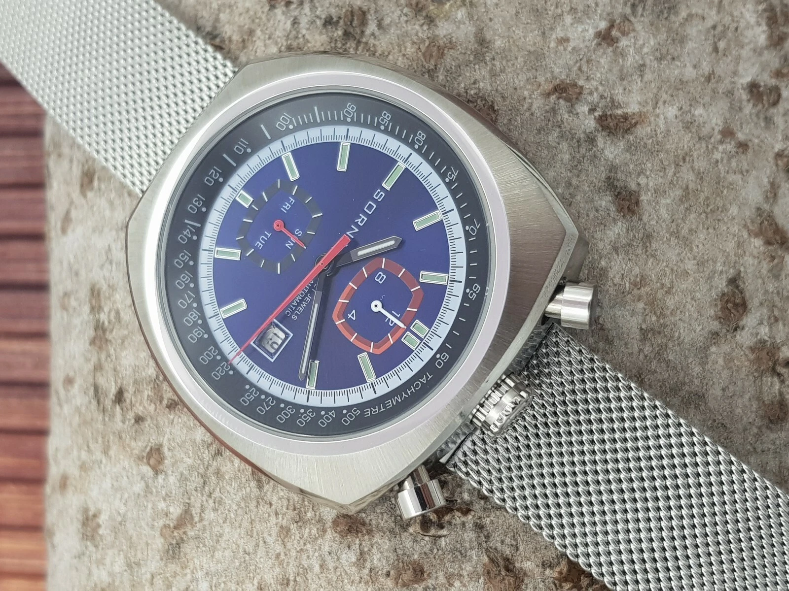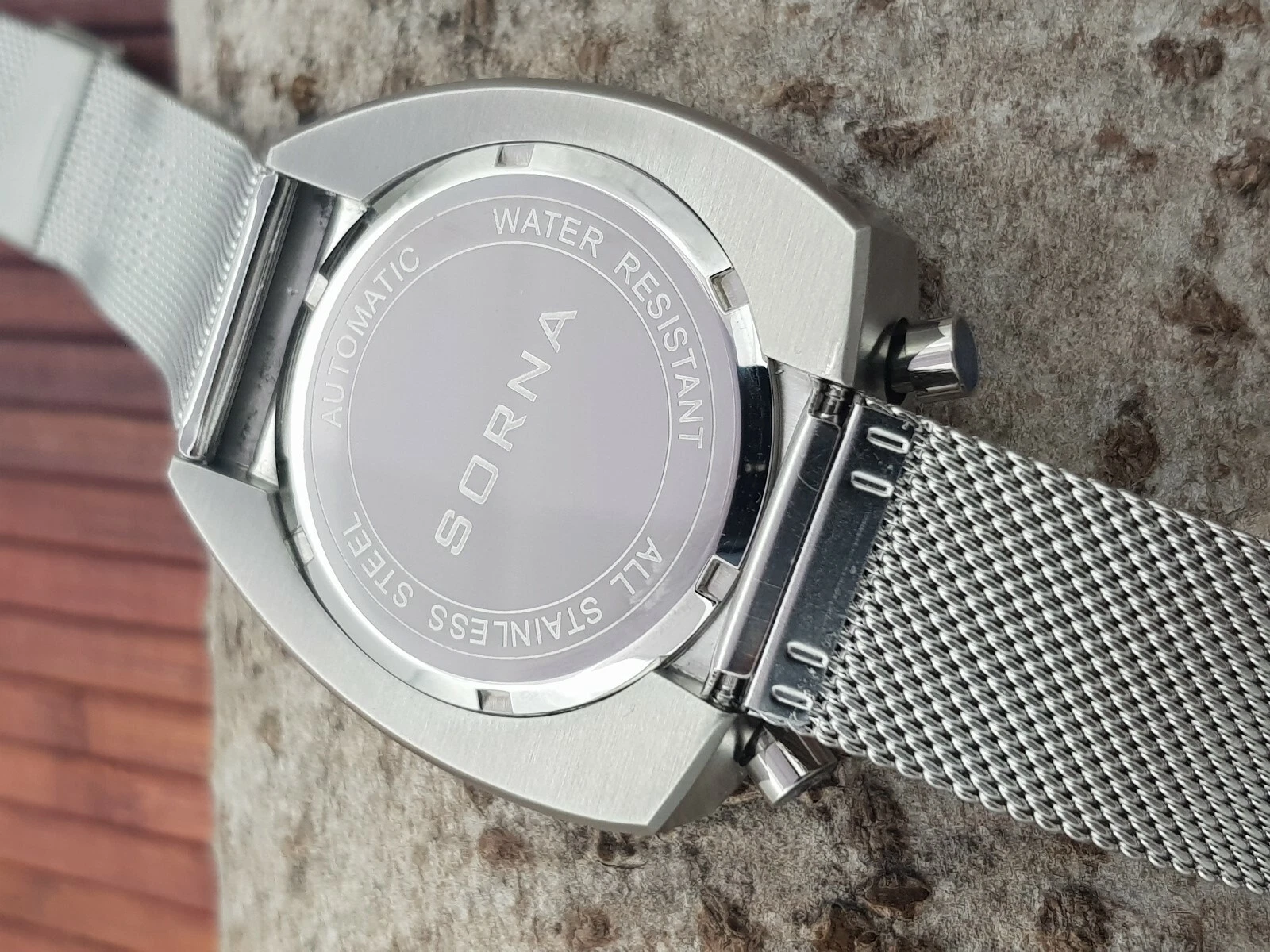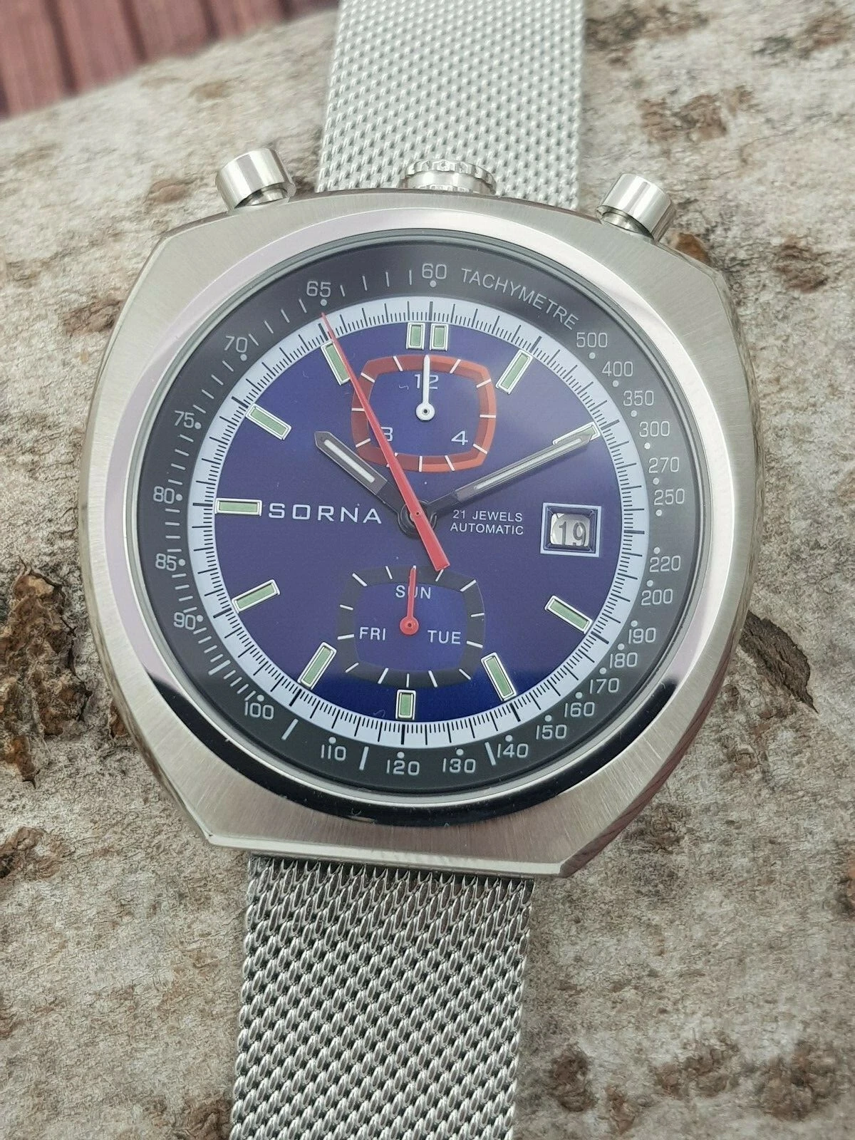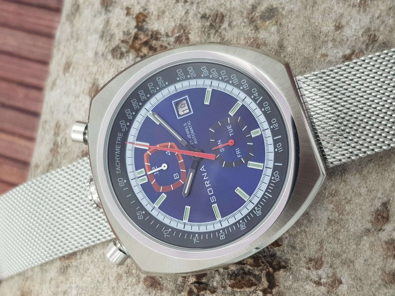 Bullhead SORNA automatic watch tachymeter scale blue version new unworn mesh