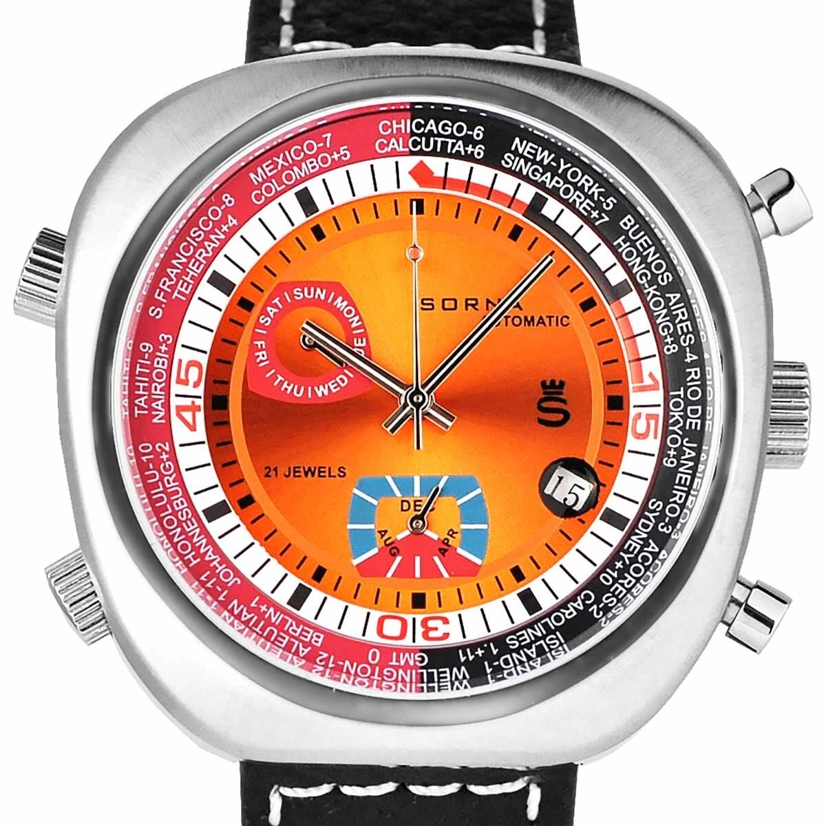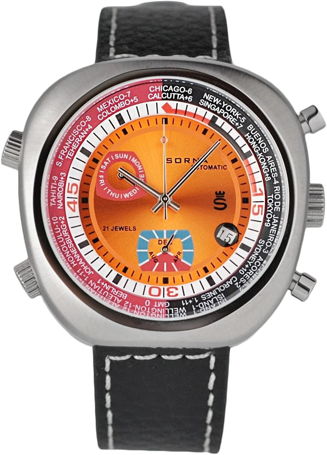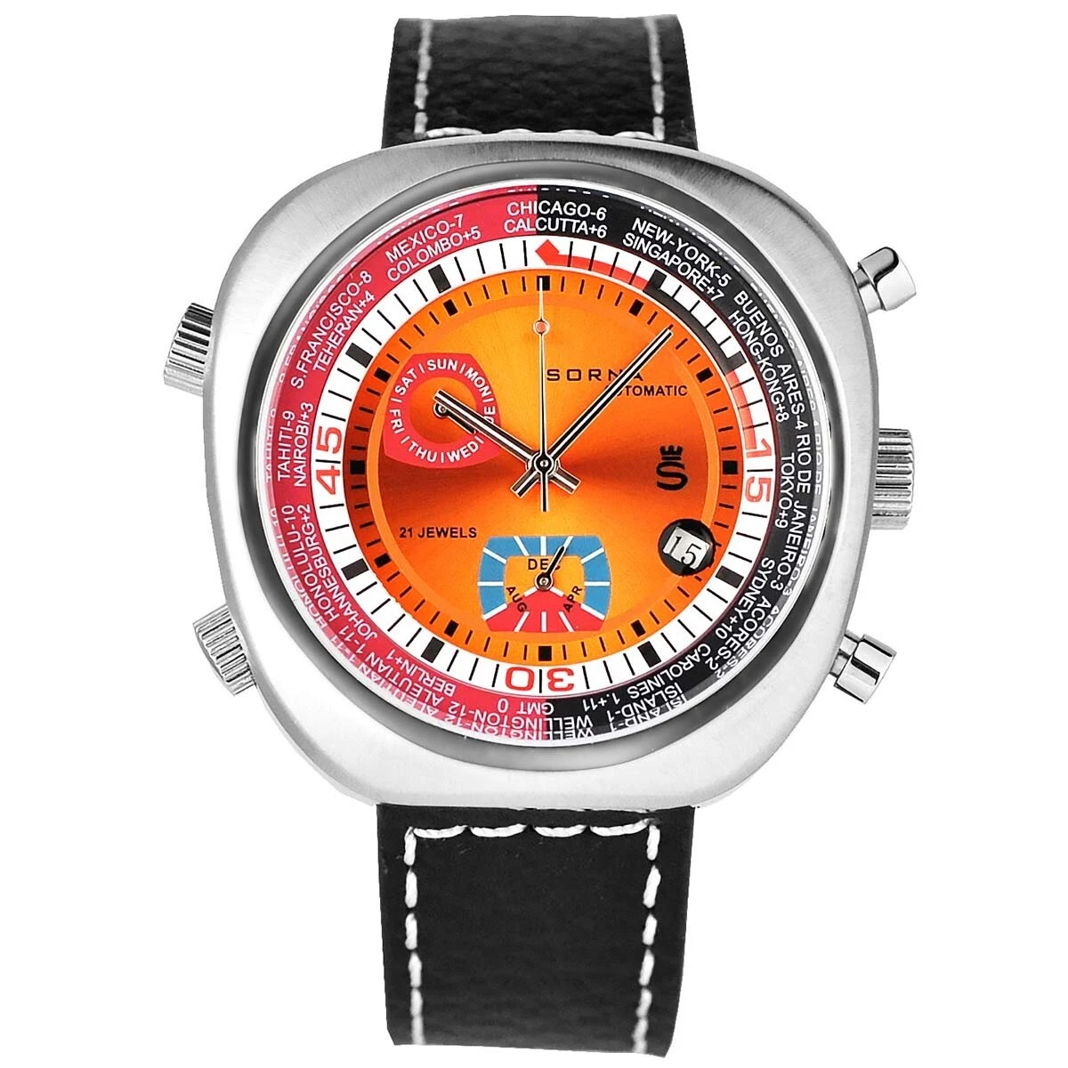 SORNA T23766-ORANGE Automatic watch Manual winding function Reproduction model