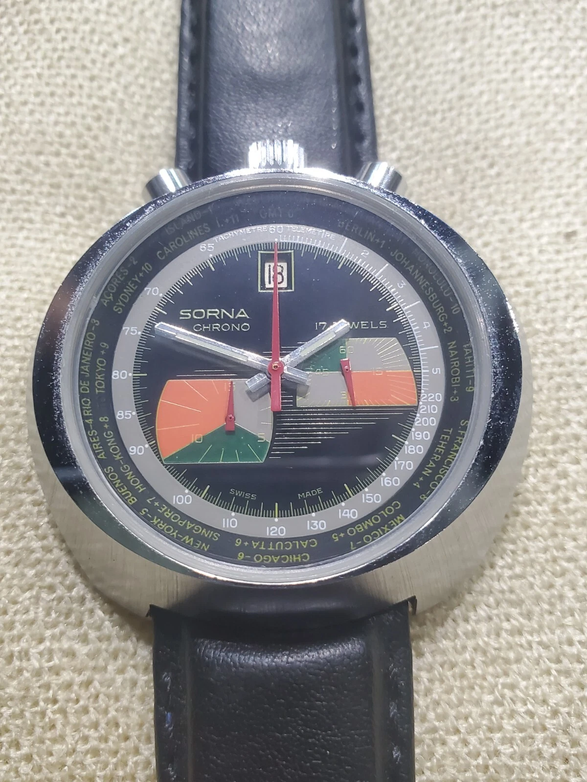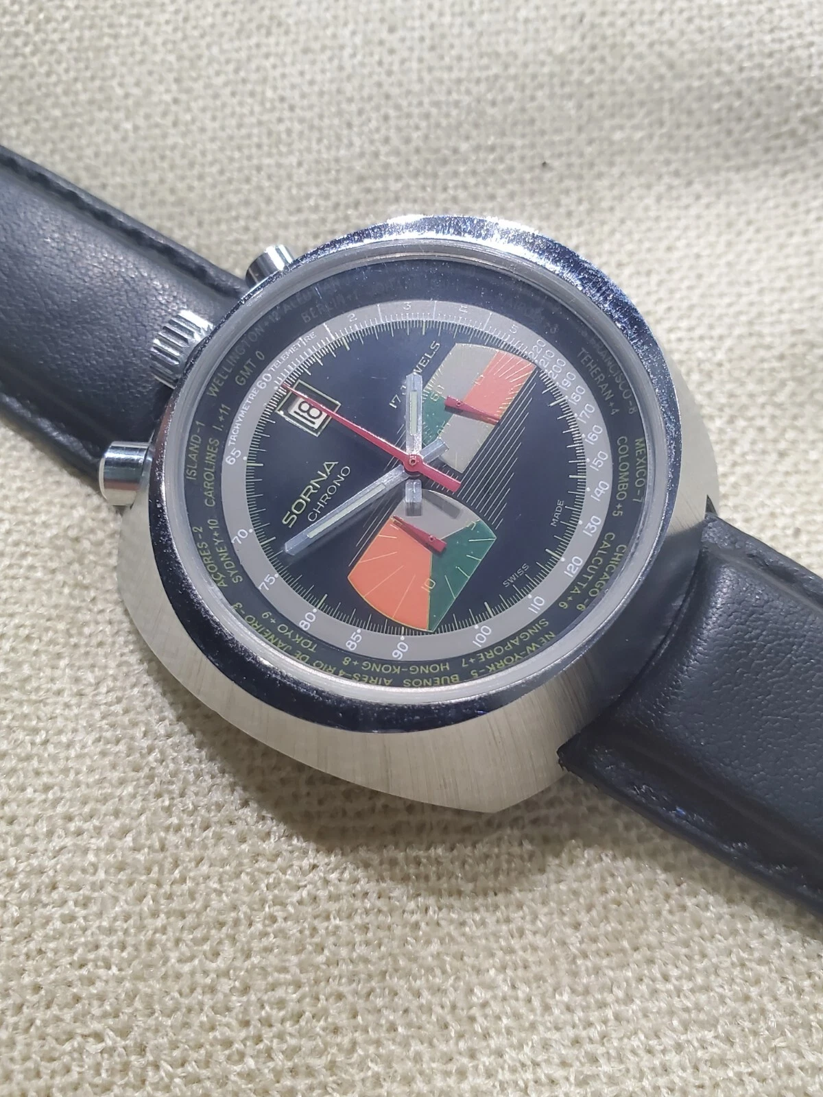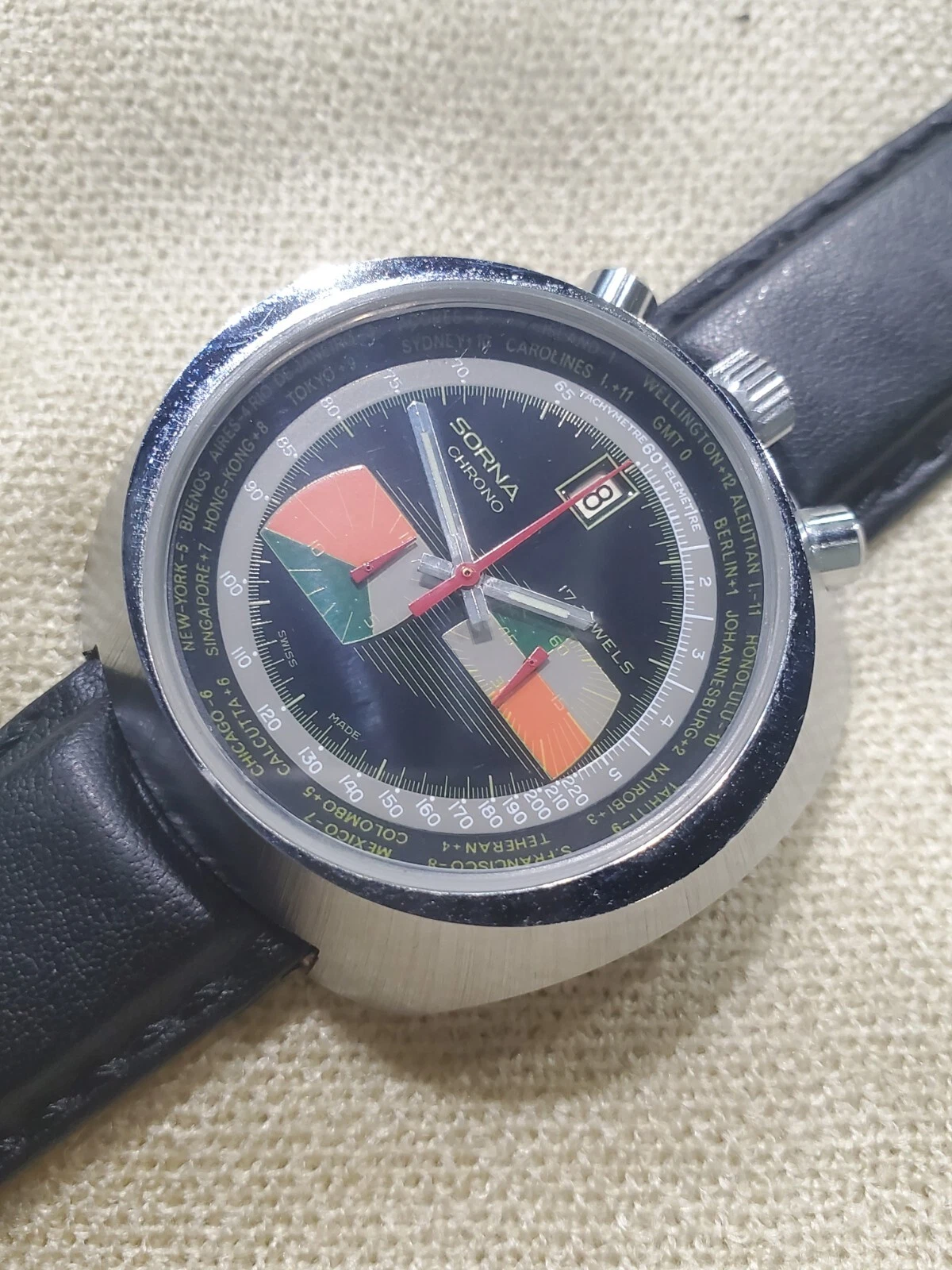 70s Sorna Two Registers Top Pusher Men Chronograph