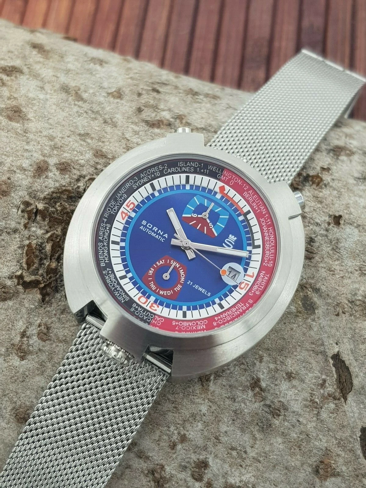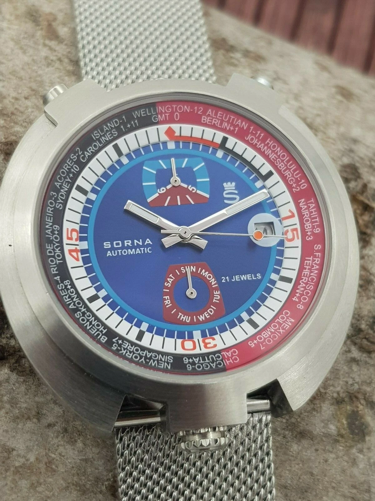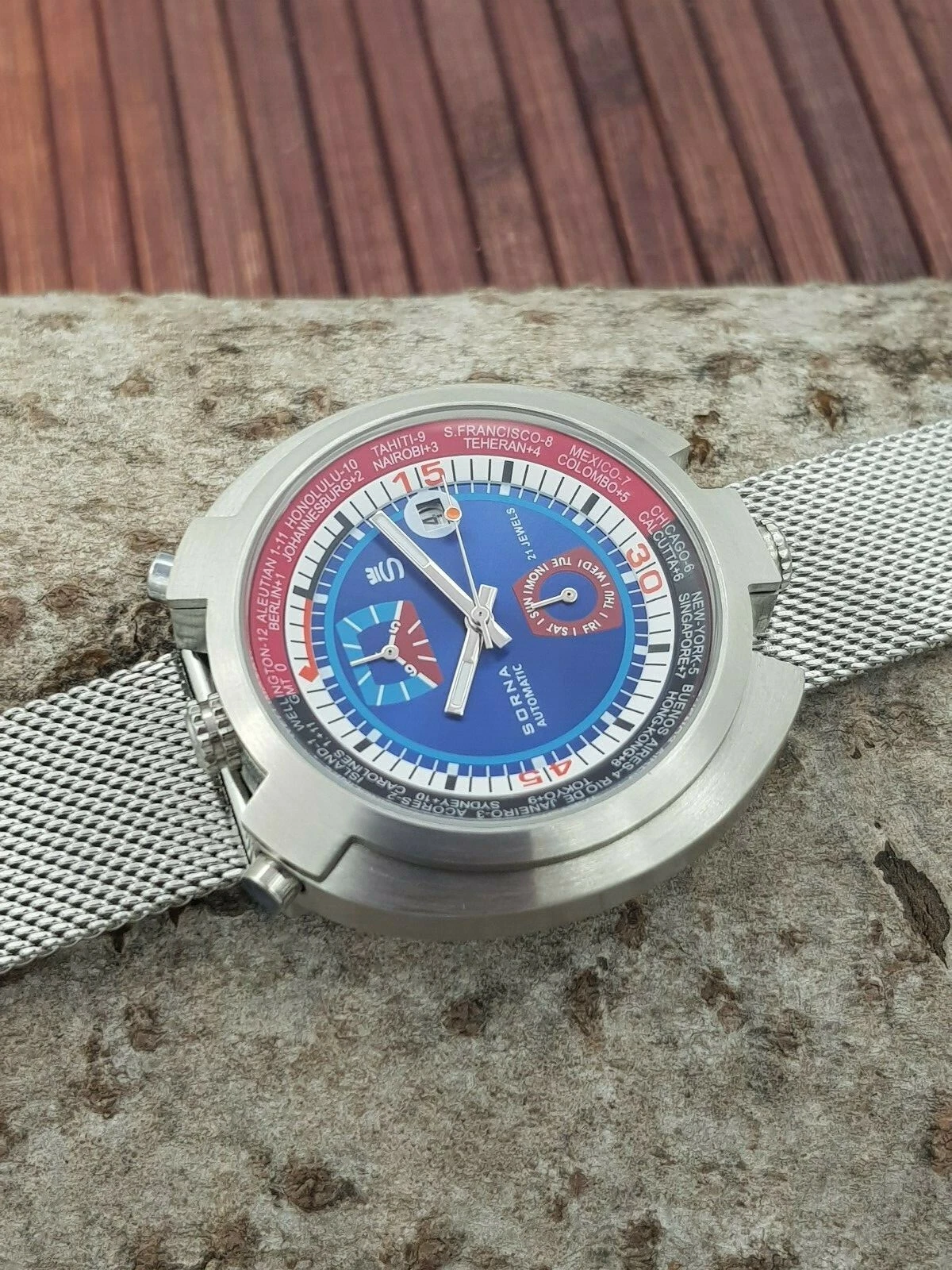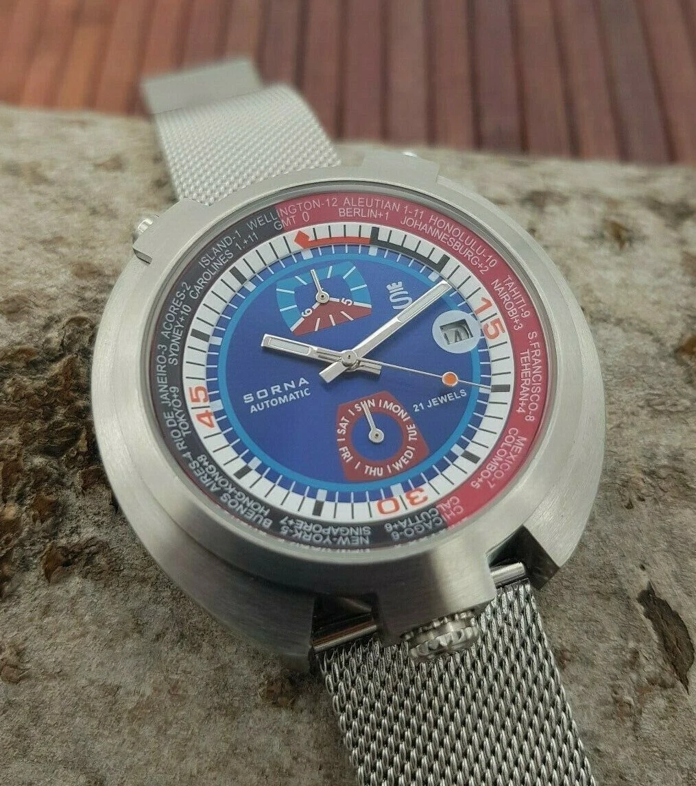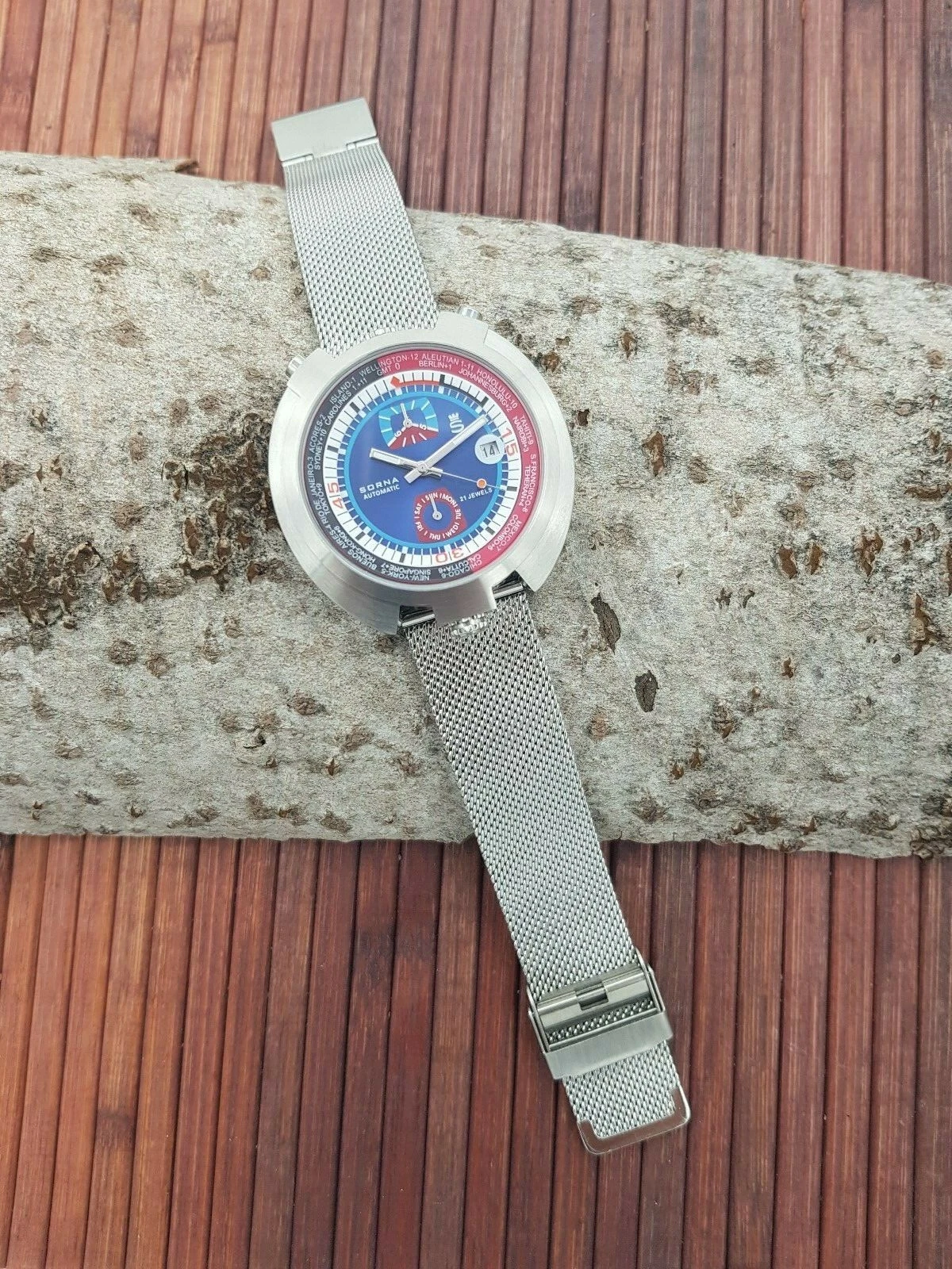 Sorna Bullhead NOS-Style automatic watch blue version new unworn mesh band