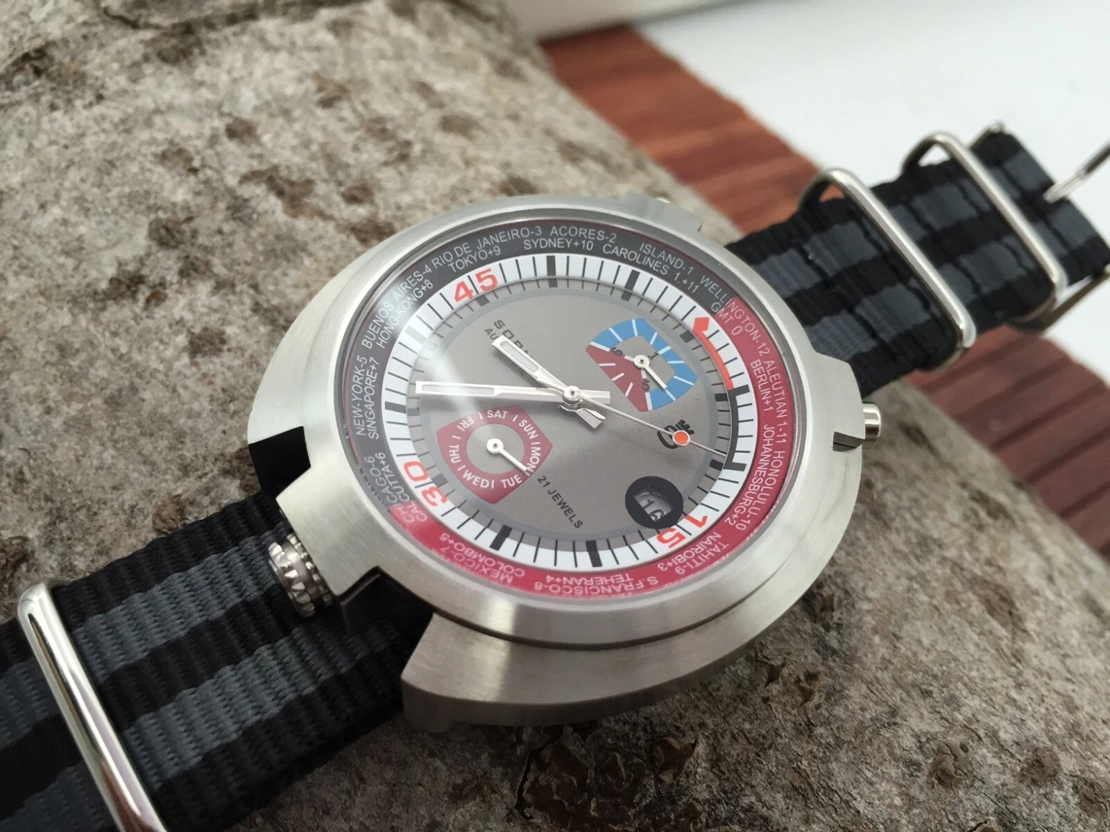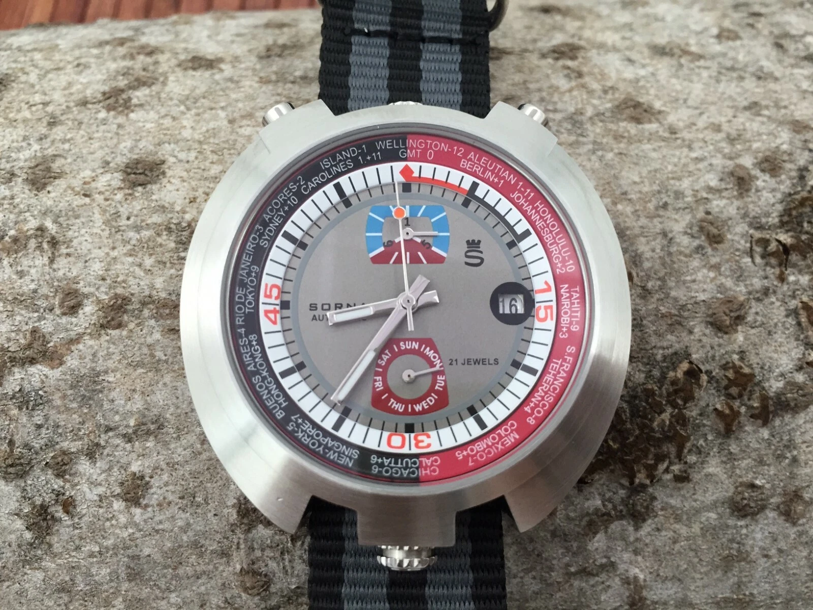 Sorna Bullhead NOS-Style automatic watch grey version new unworn textile strap