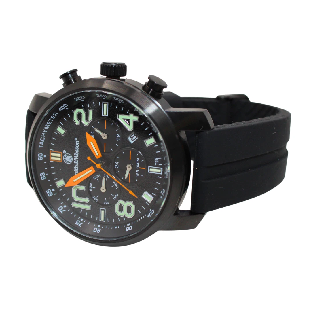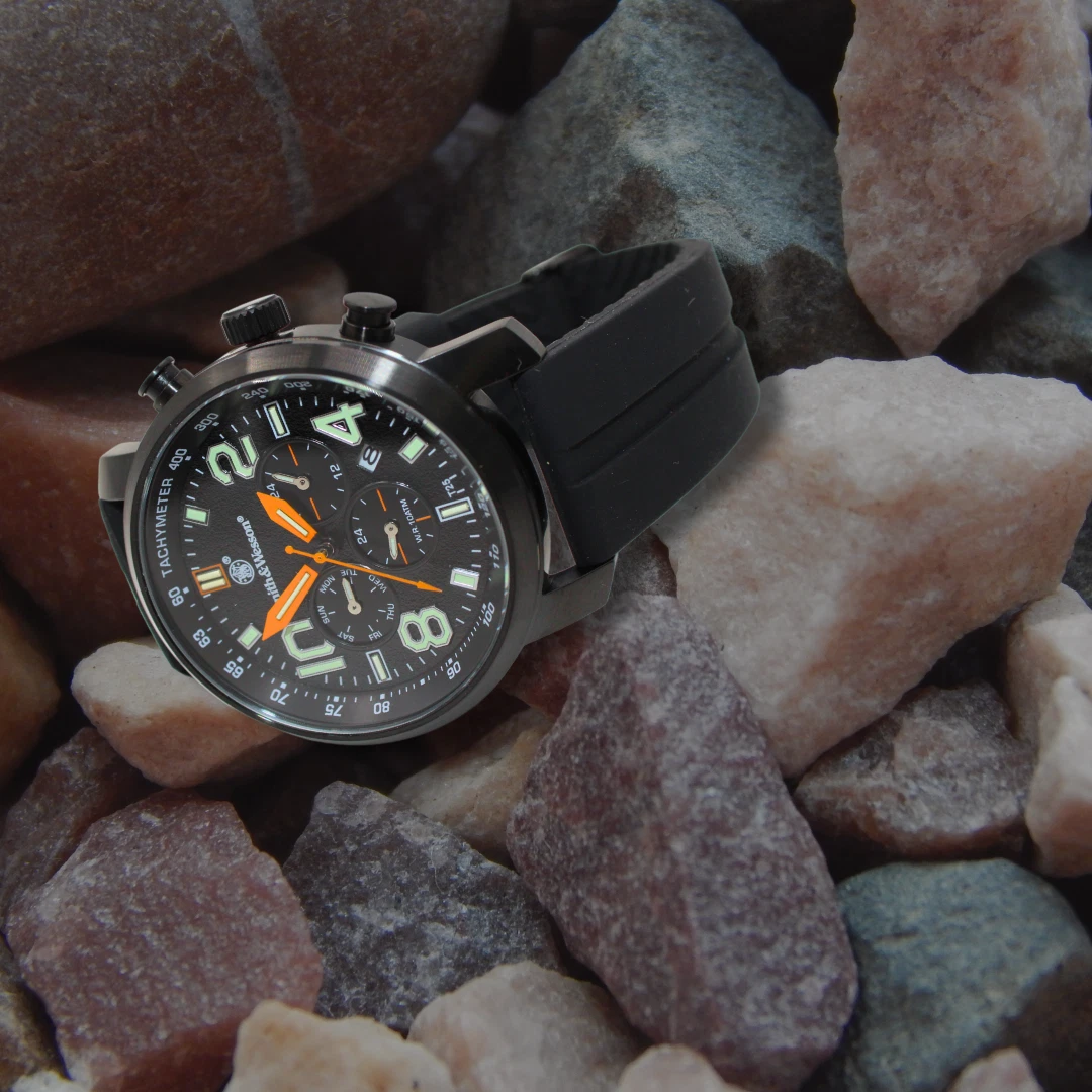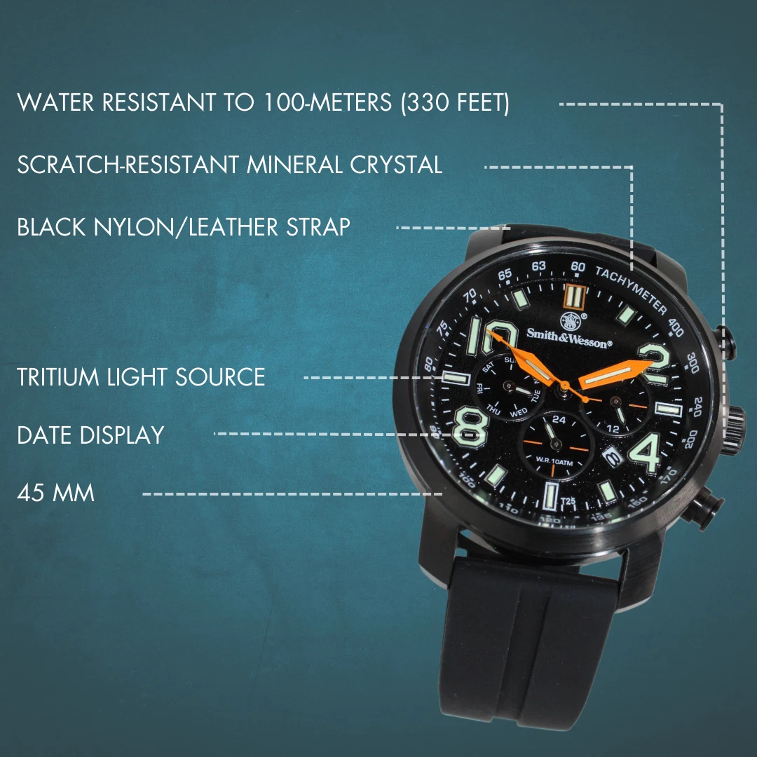 Smith and Wesson Black Tritium Chronograph gold, Silicone and Leather Strap