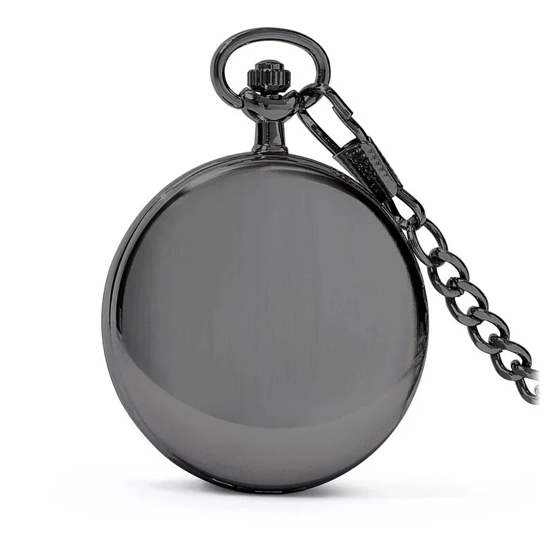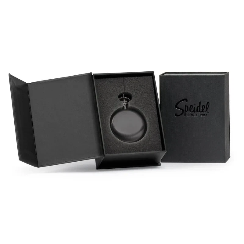 Speidel Classic Brushed Satin Silver-Tone Pocket Watch with 14" Chain Black Dial