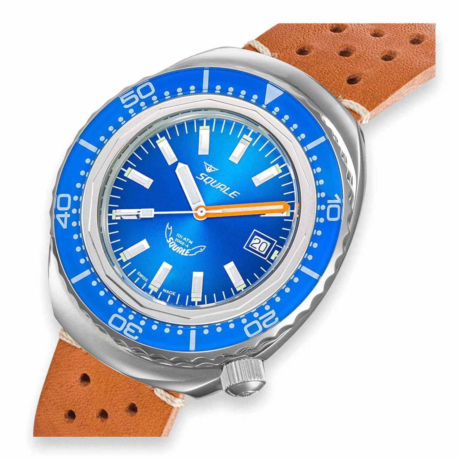 Squale 2002.SS.BL.BL.PTC Blue Dial Brown Leather Wristwatch
