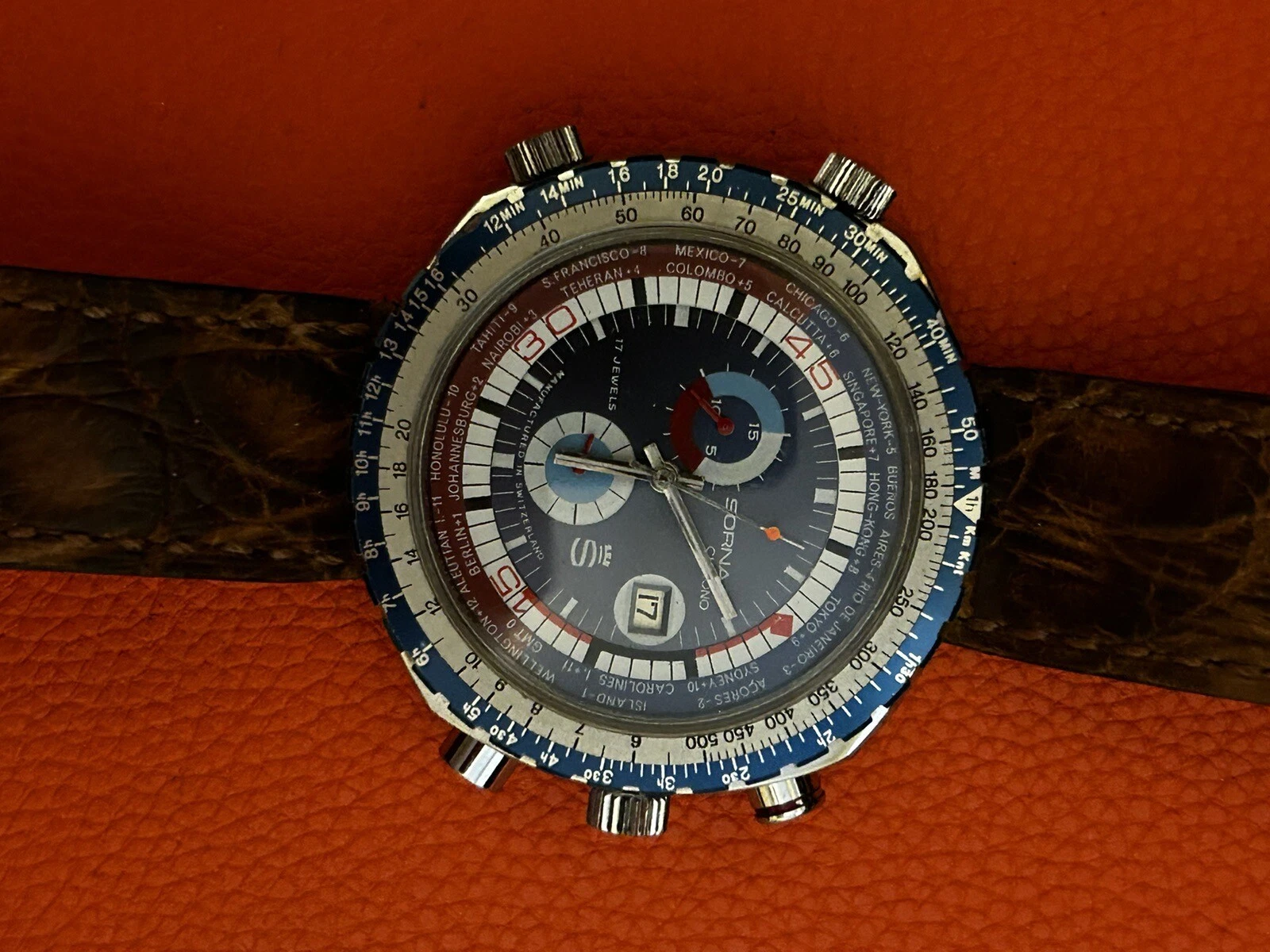 Sorna Chronograph Watch,  World Timer 17 Jewels  #2693