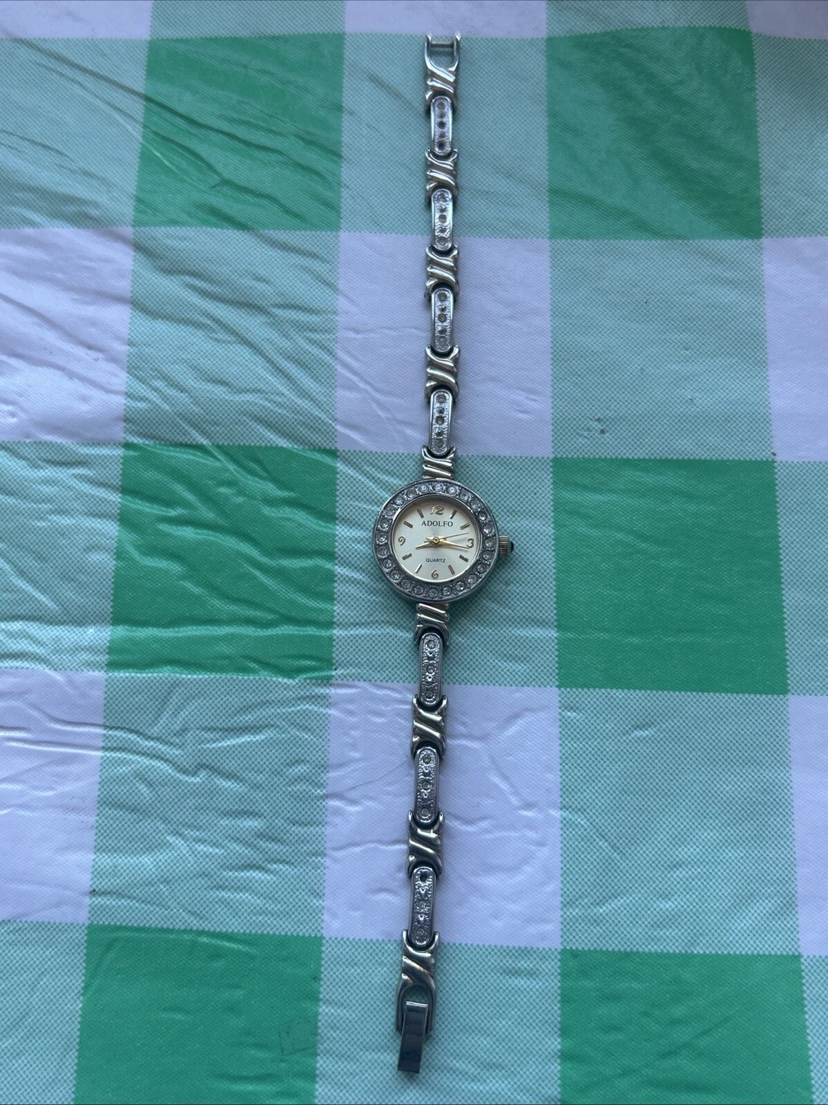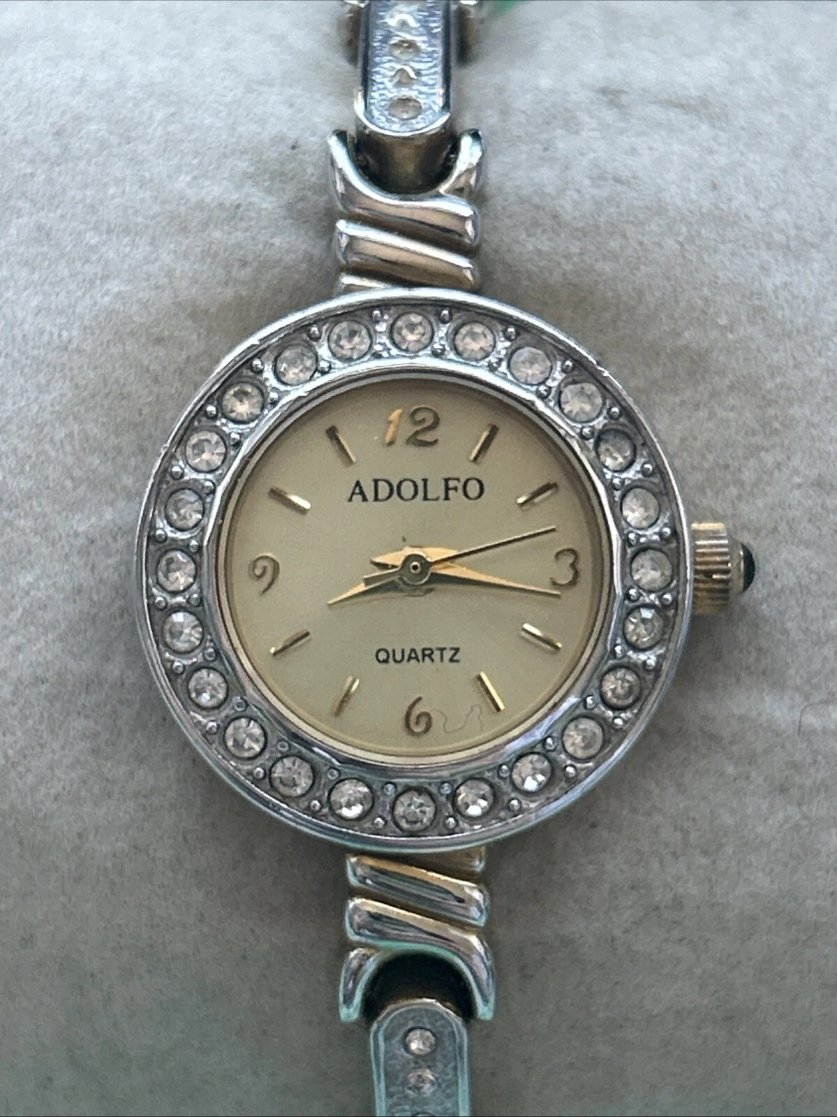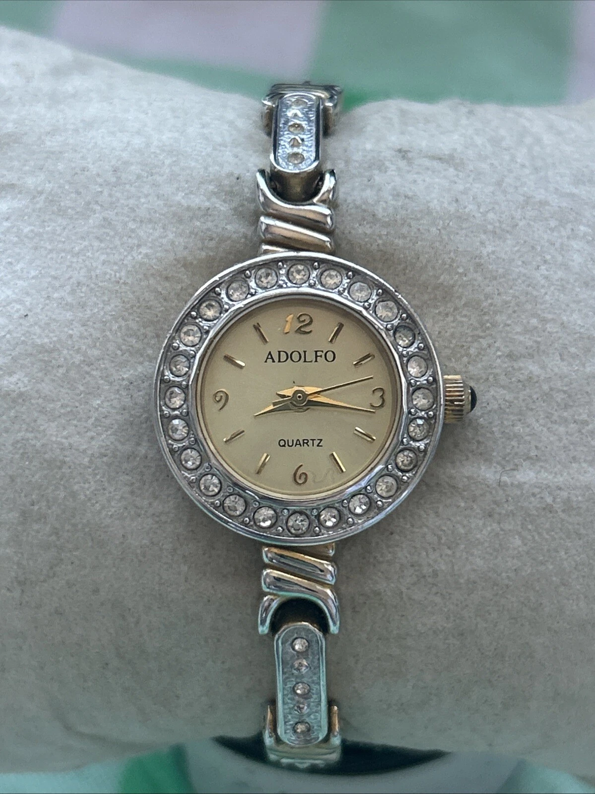 Adolfo Two Tone Rhinestone Bezel Women’s Quartz Watch