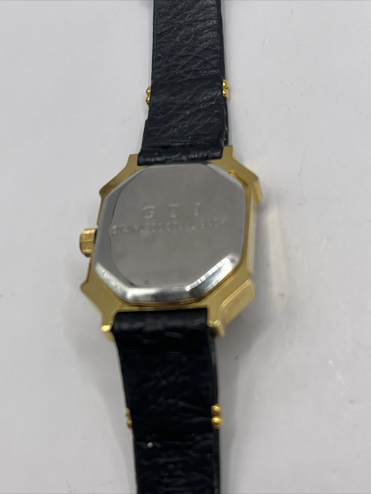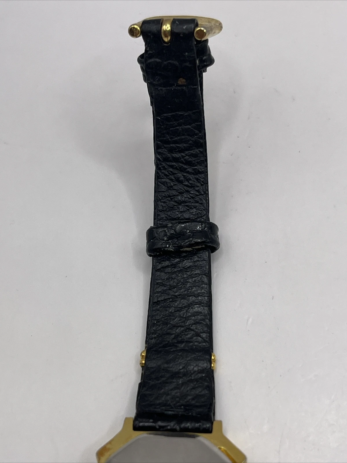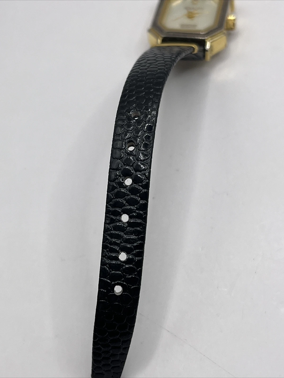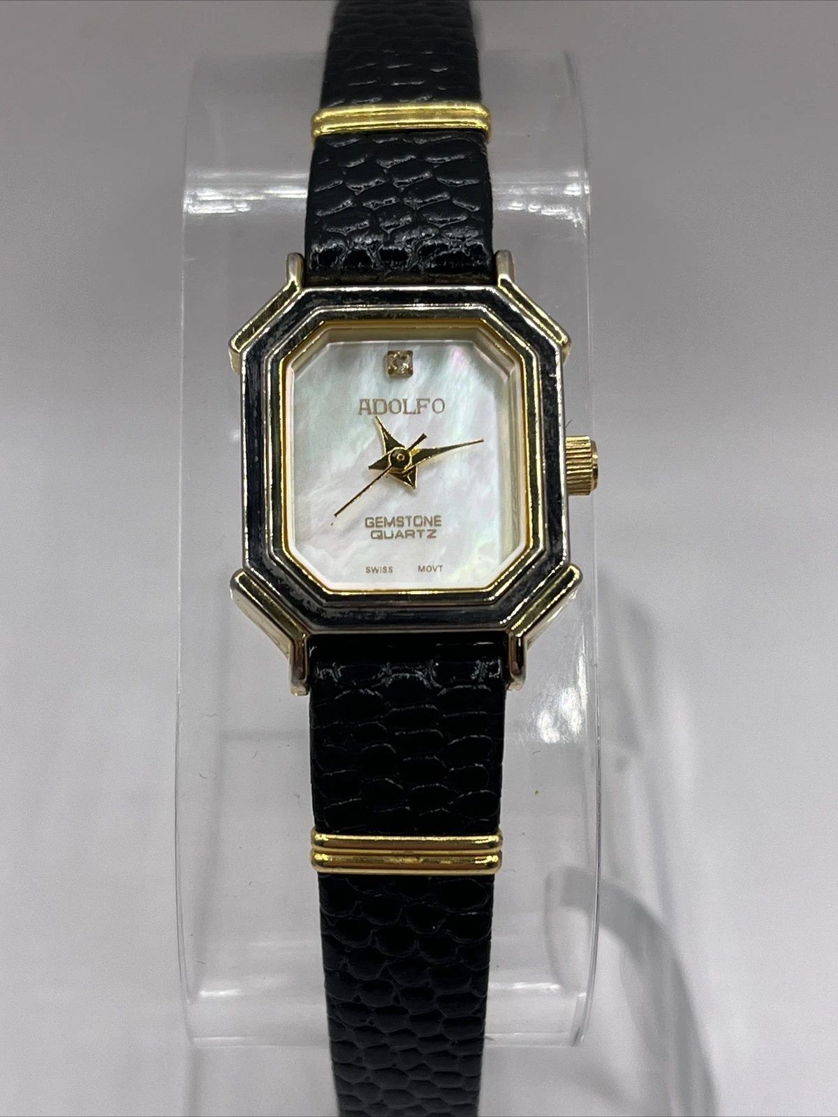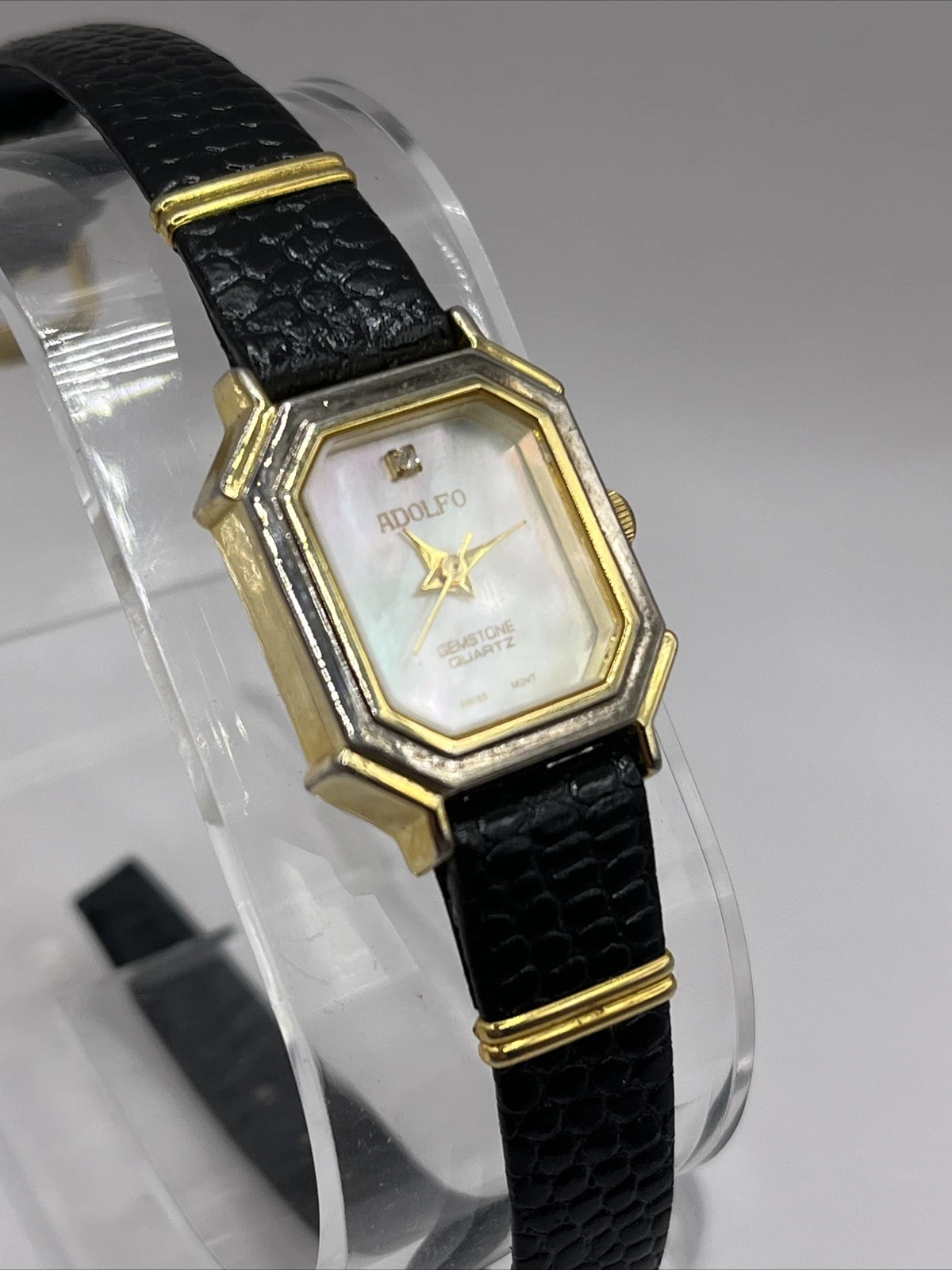 Adolfo Gemstone Quartz Women's Watch Black Leather Band Gold Case- New Battery
