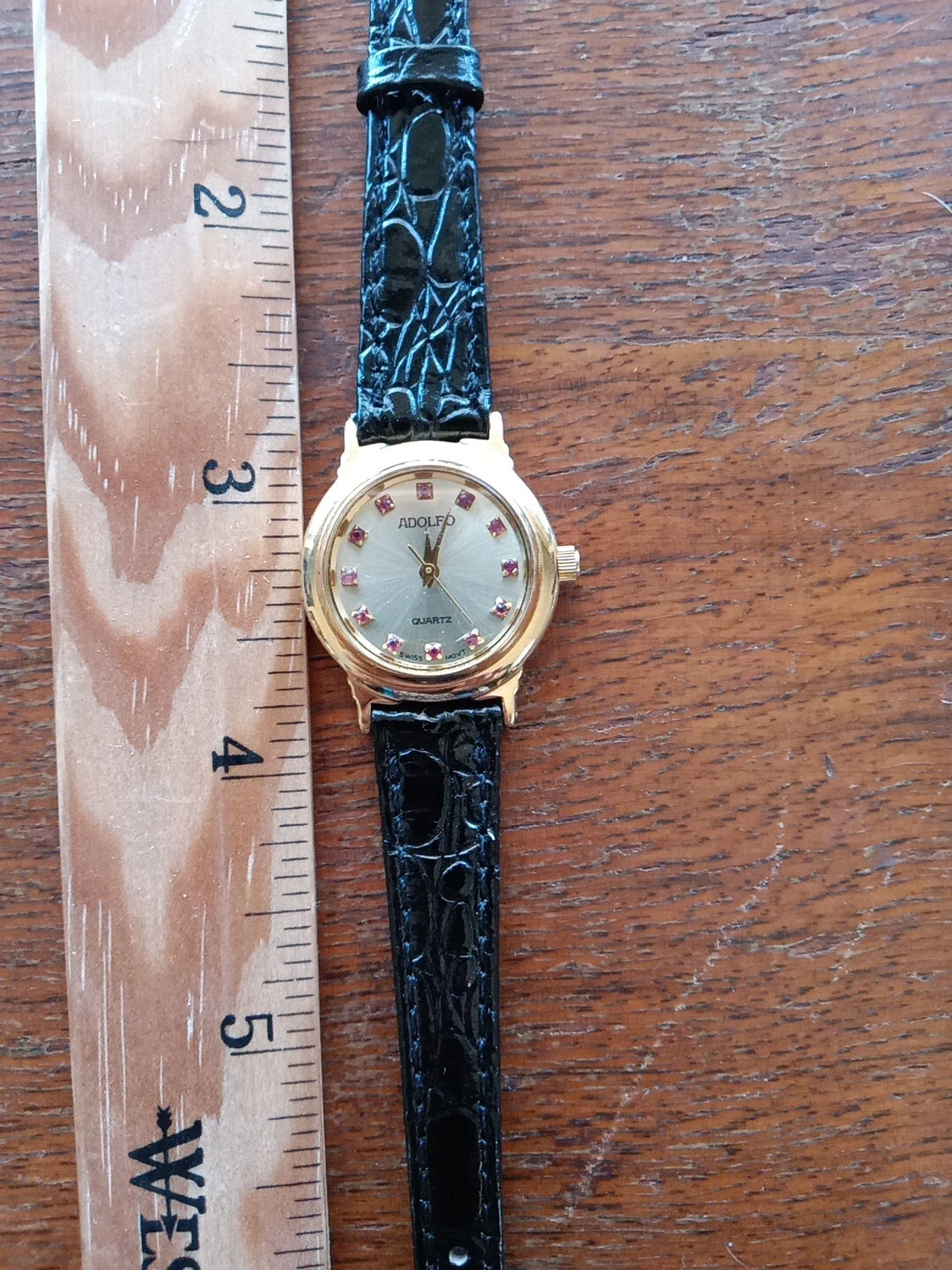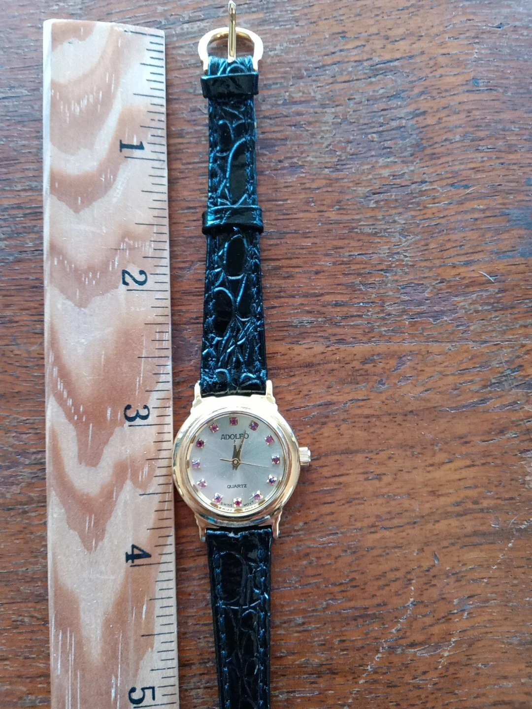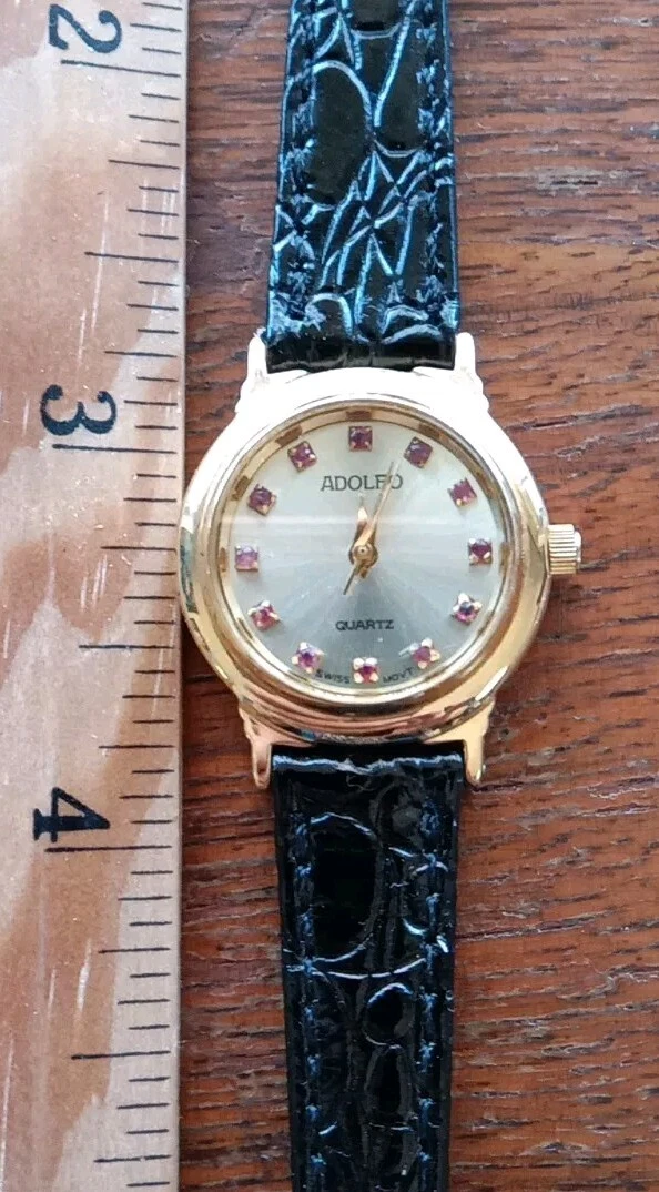VTG Womens Adolfo Swiss Quartz Ruby Dial Watch New Battery Runs Great No Back