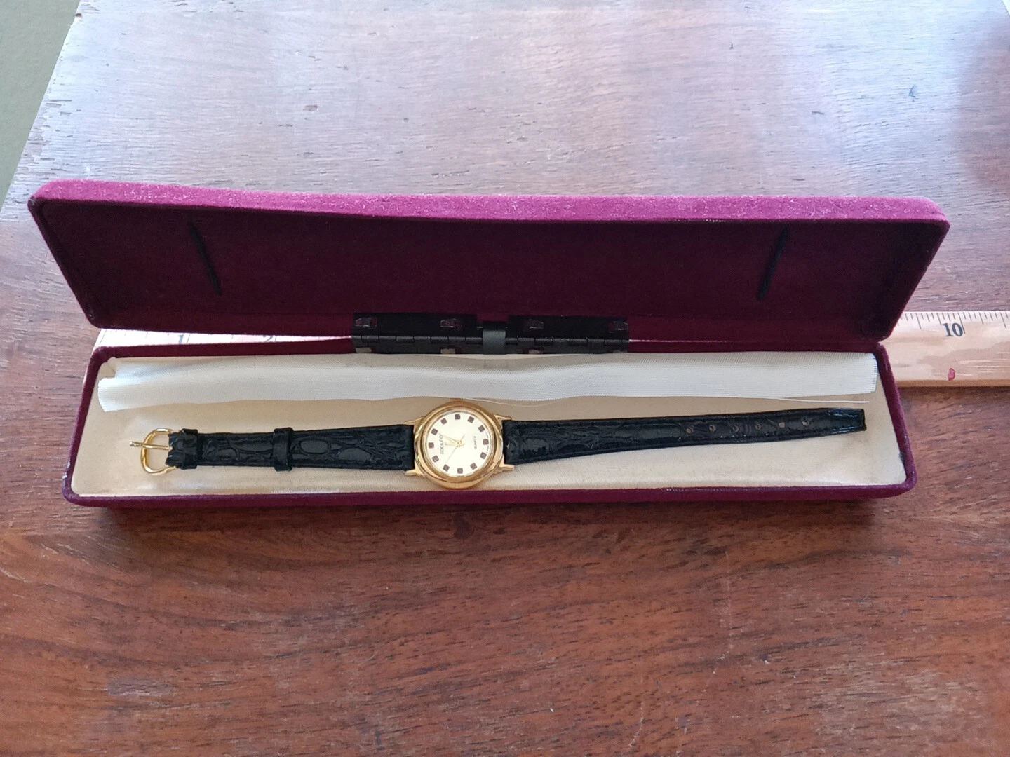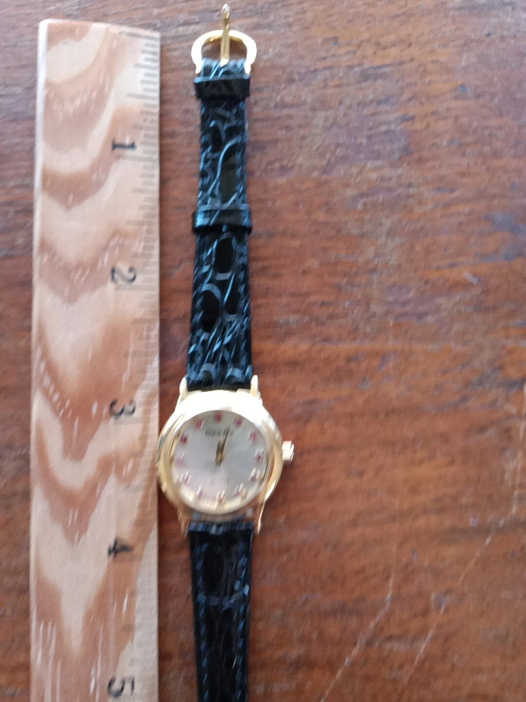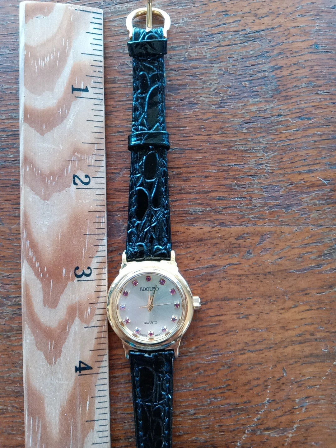 VTG Womens Adolfo Swiss Quartz Ruby Dial Watch New Battery Runs Great No Back