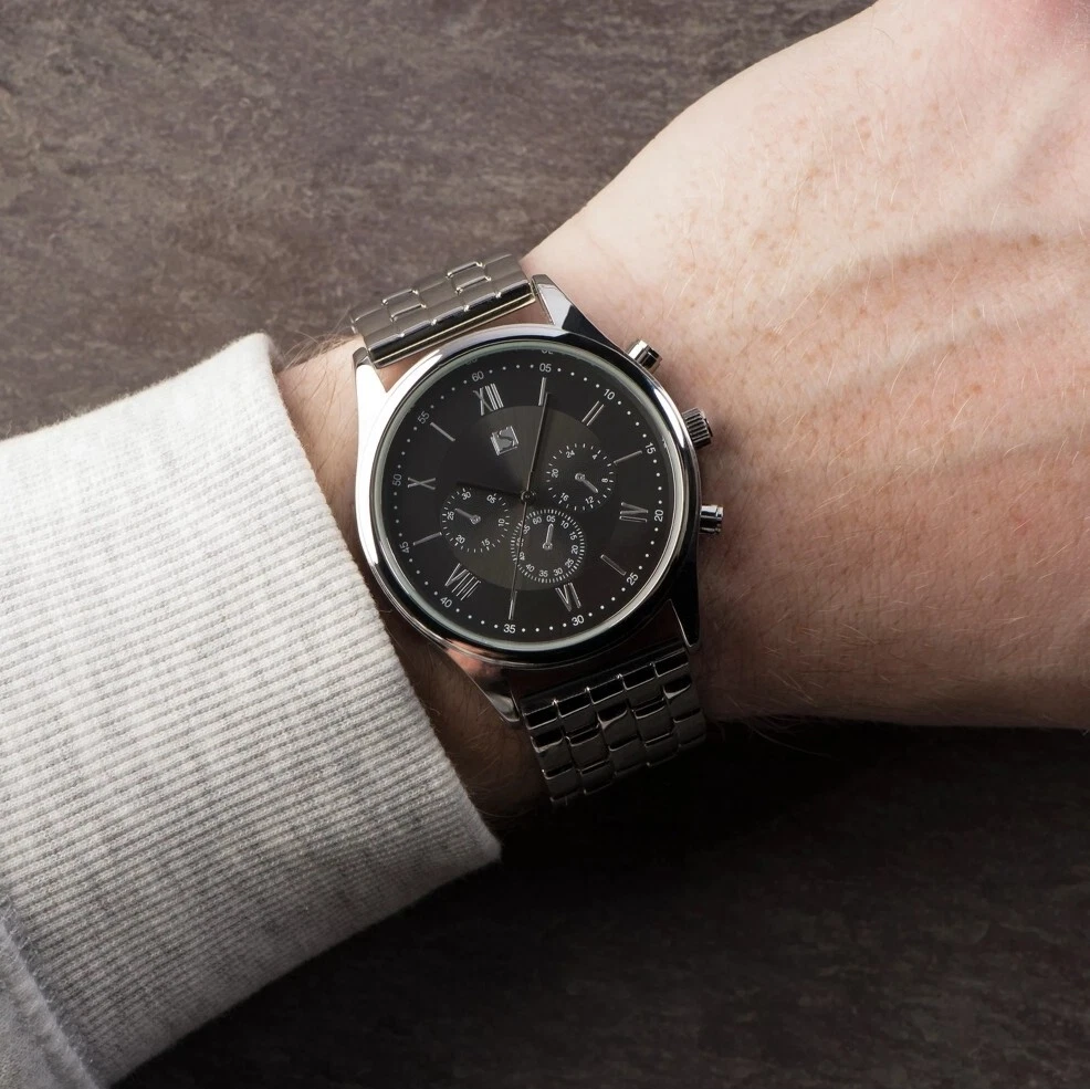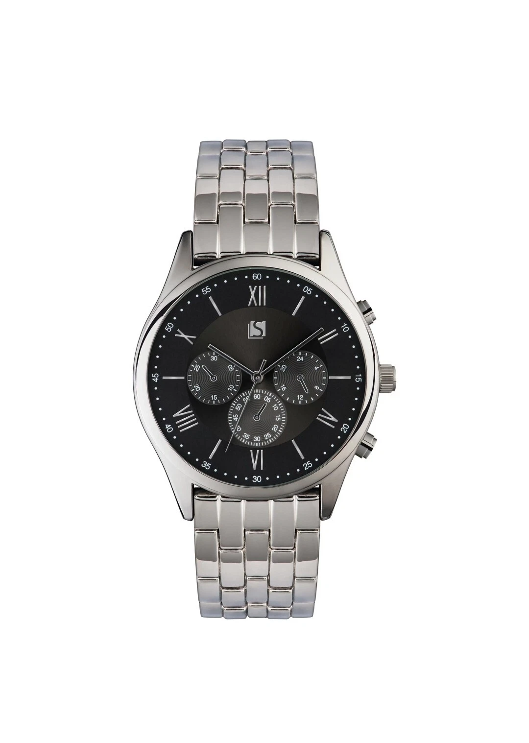 Spirit Men's Black Dial Silver Colour Metal Bracelet Watch