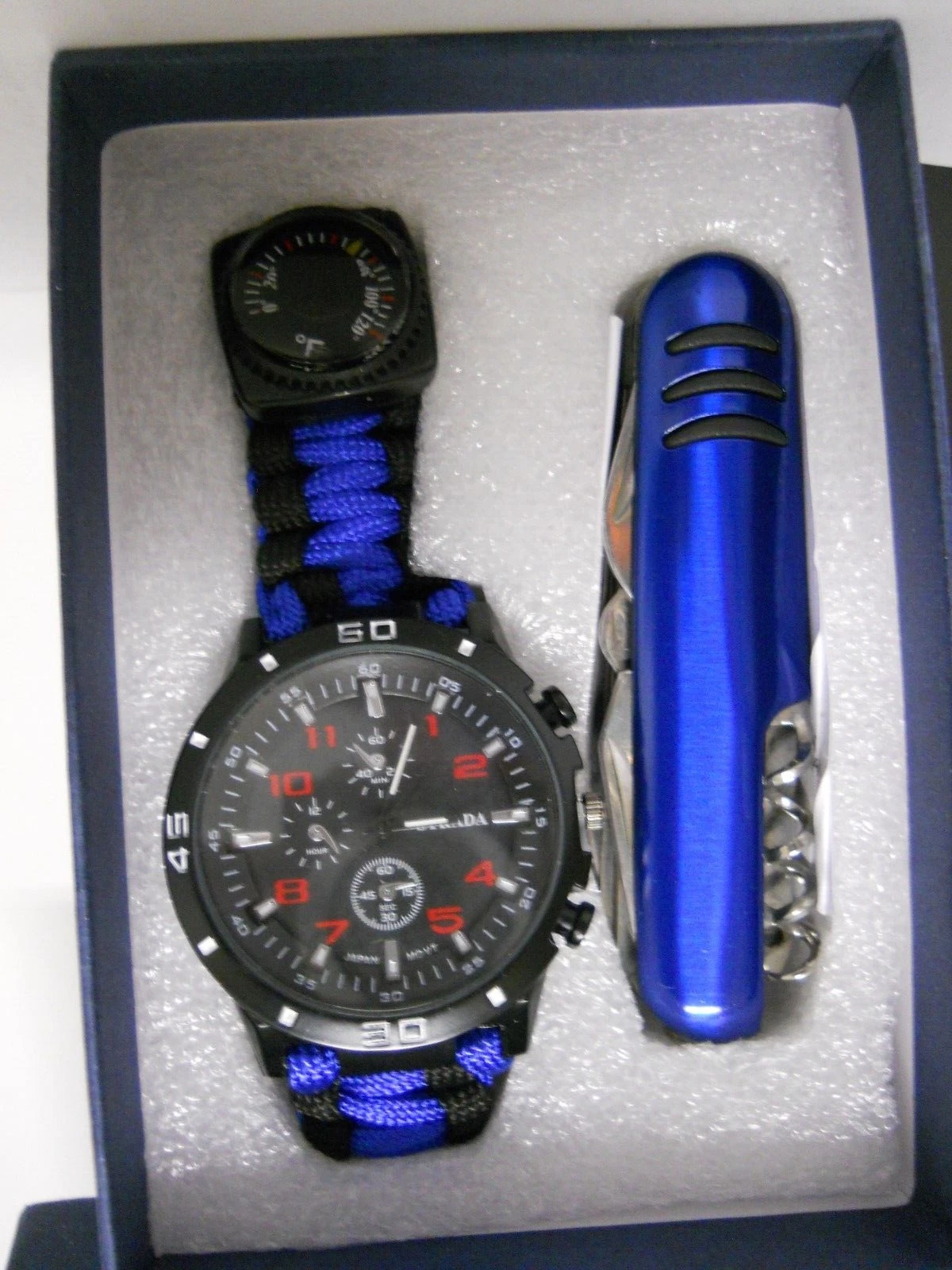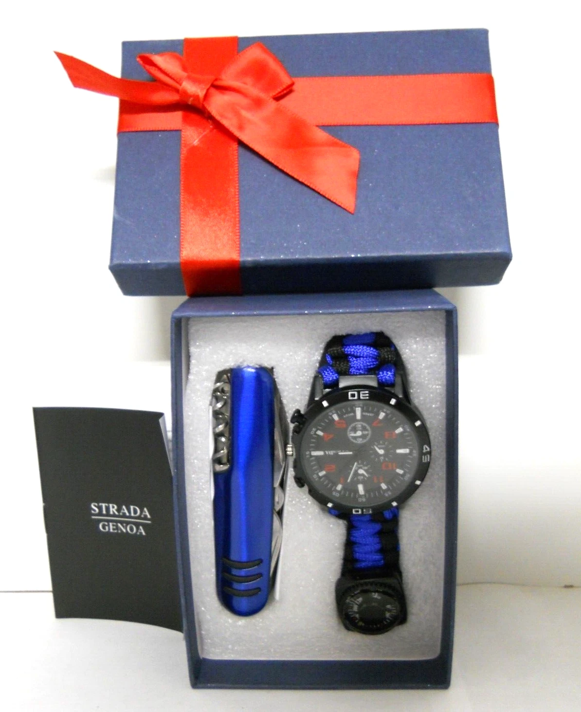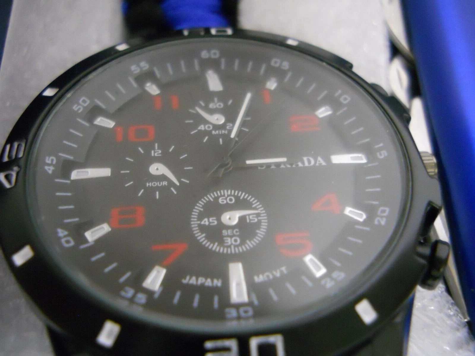 Strada Watch Survival Paracord & Knife Set Gift Blue Black Compass New #1009