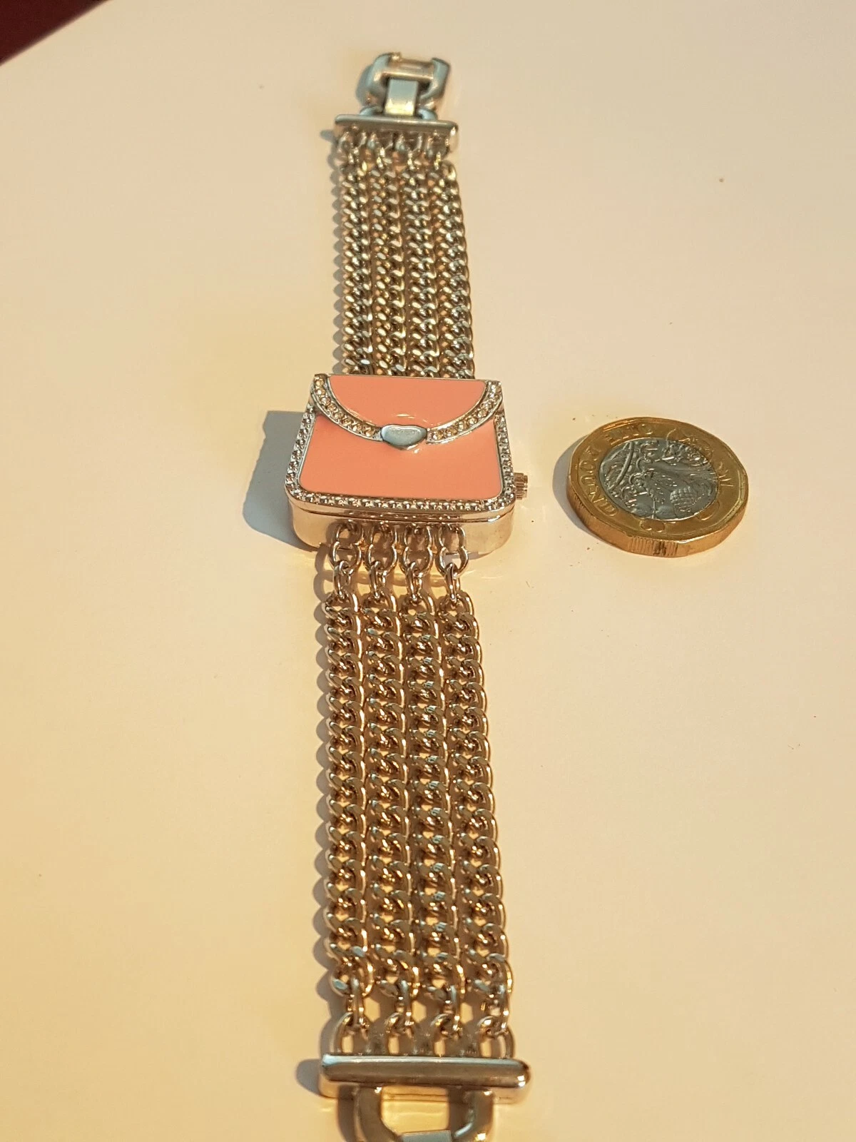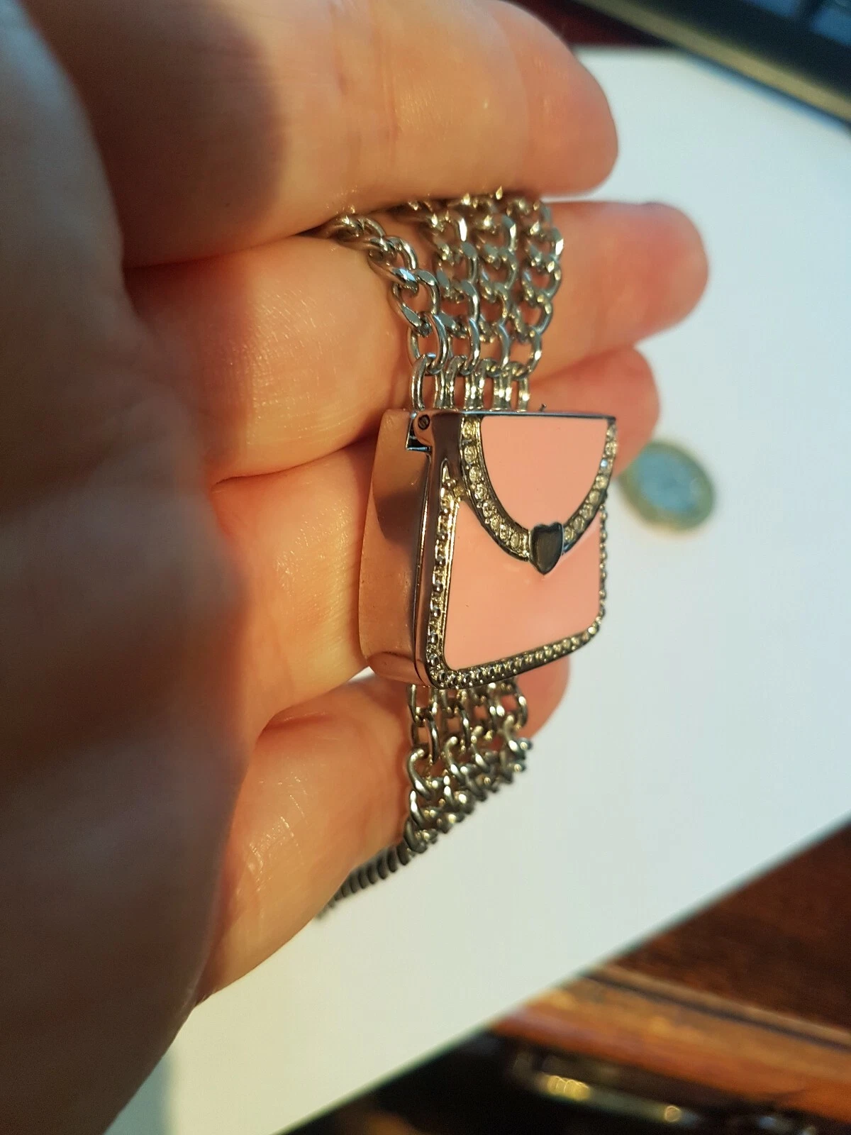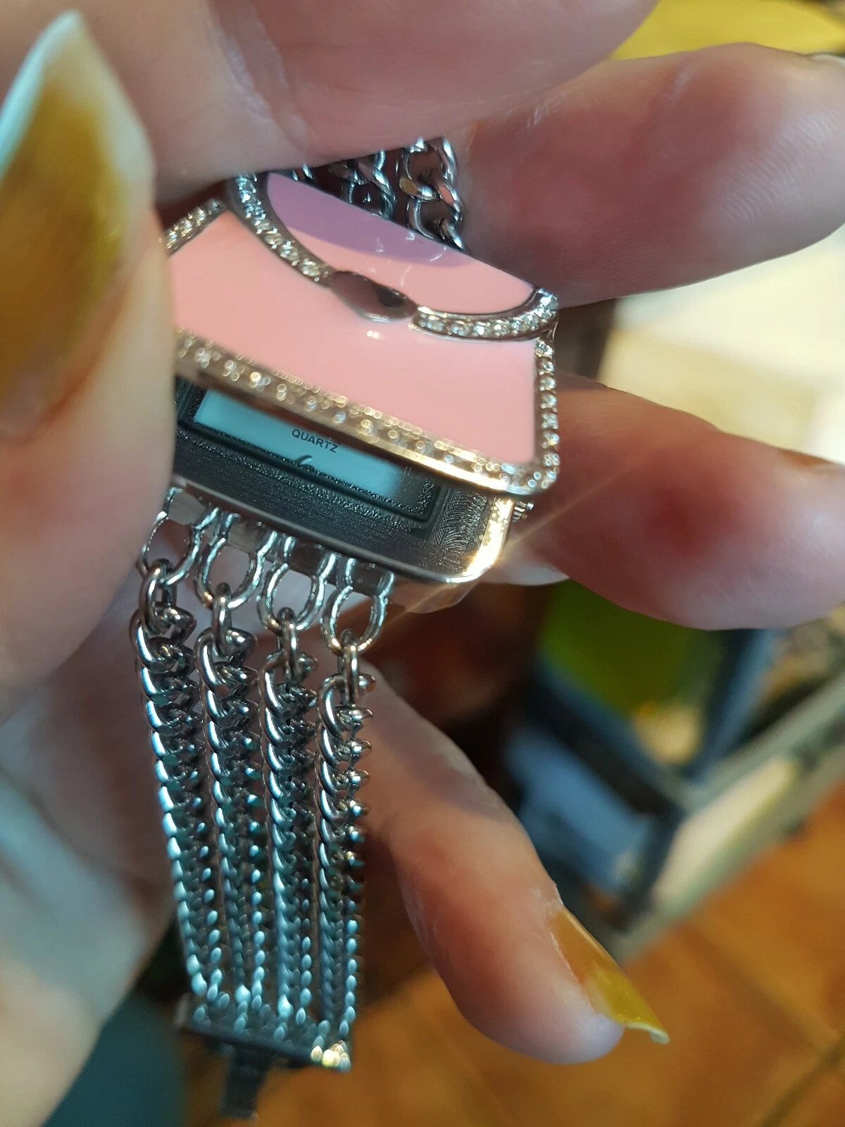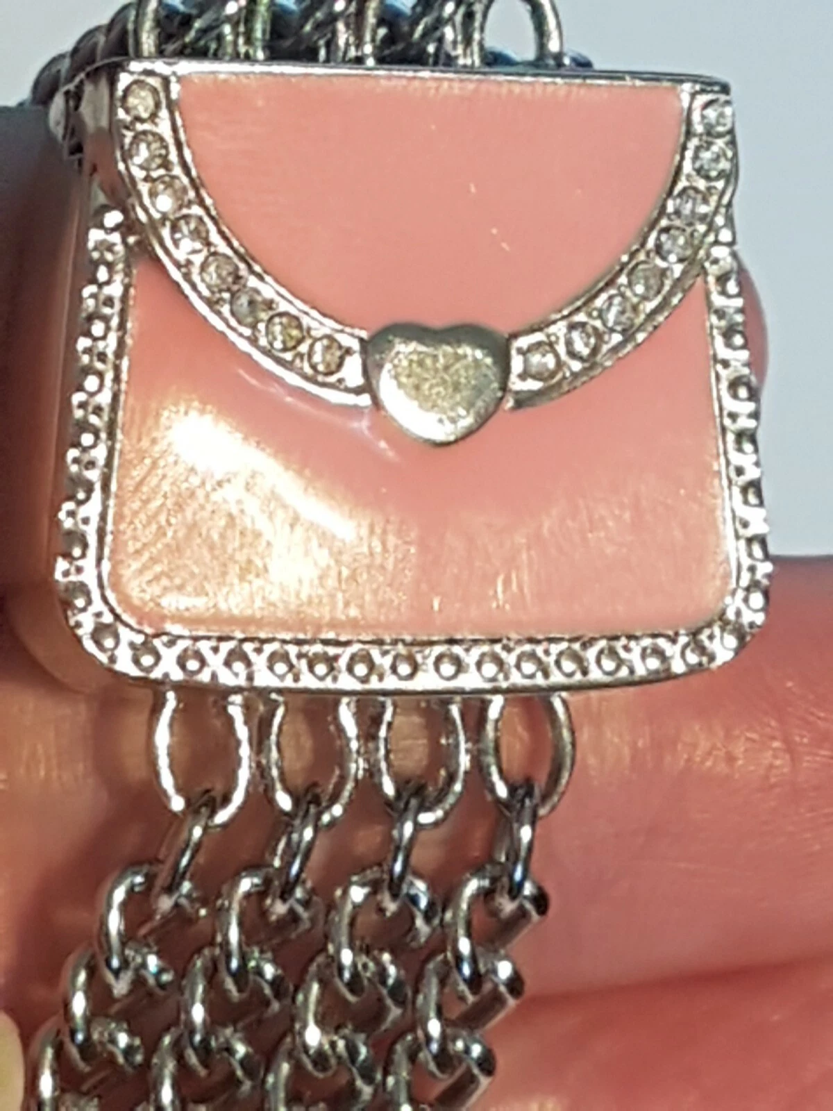 Bespoke Time Stainless Steel Pink Resin and Crystal Handbag Design Watch