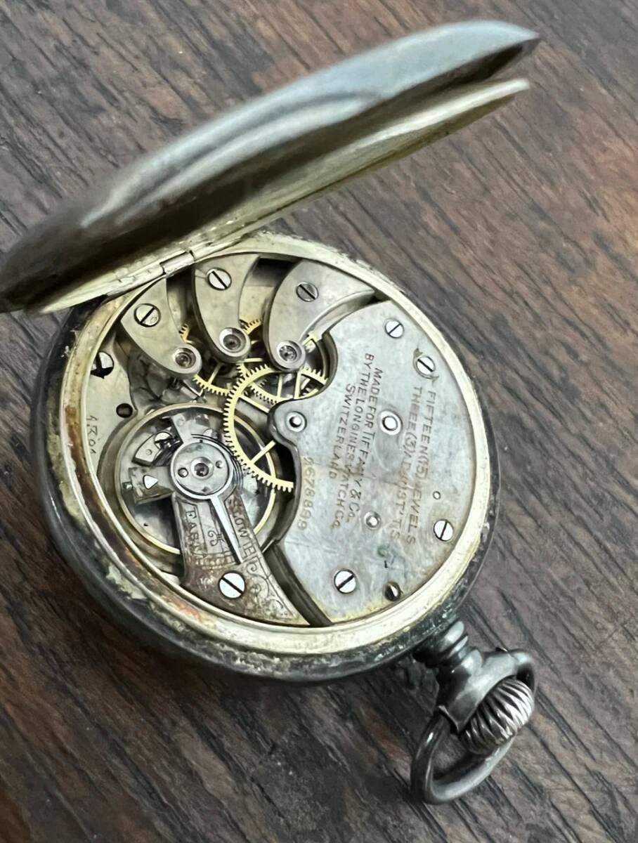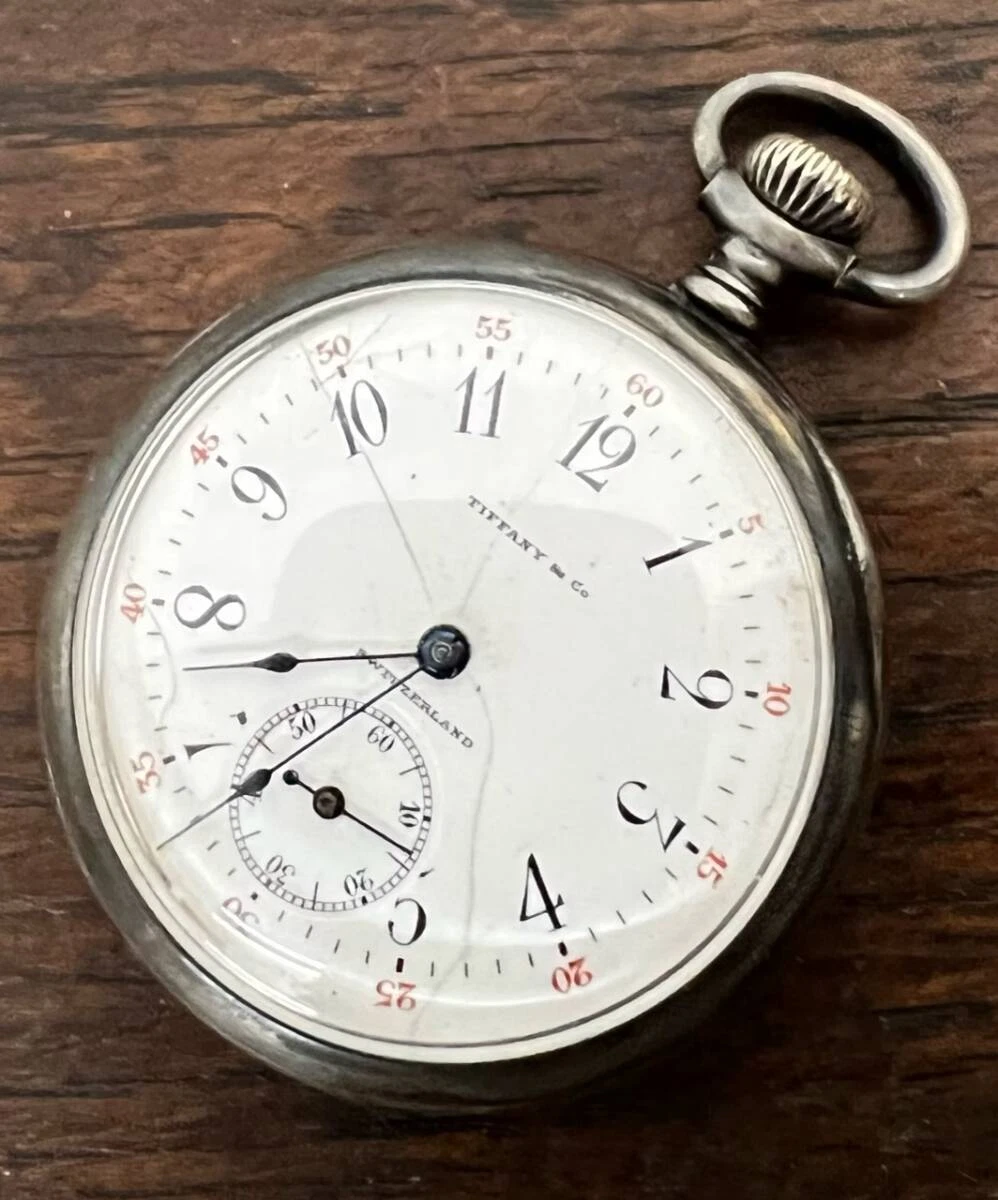 Antique Tiffany Pocket Watch Silver 1911 Hand-wound 35mm Porcelain Working Japan