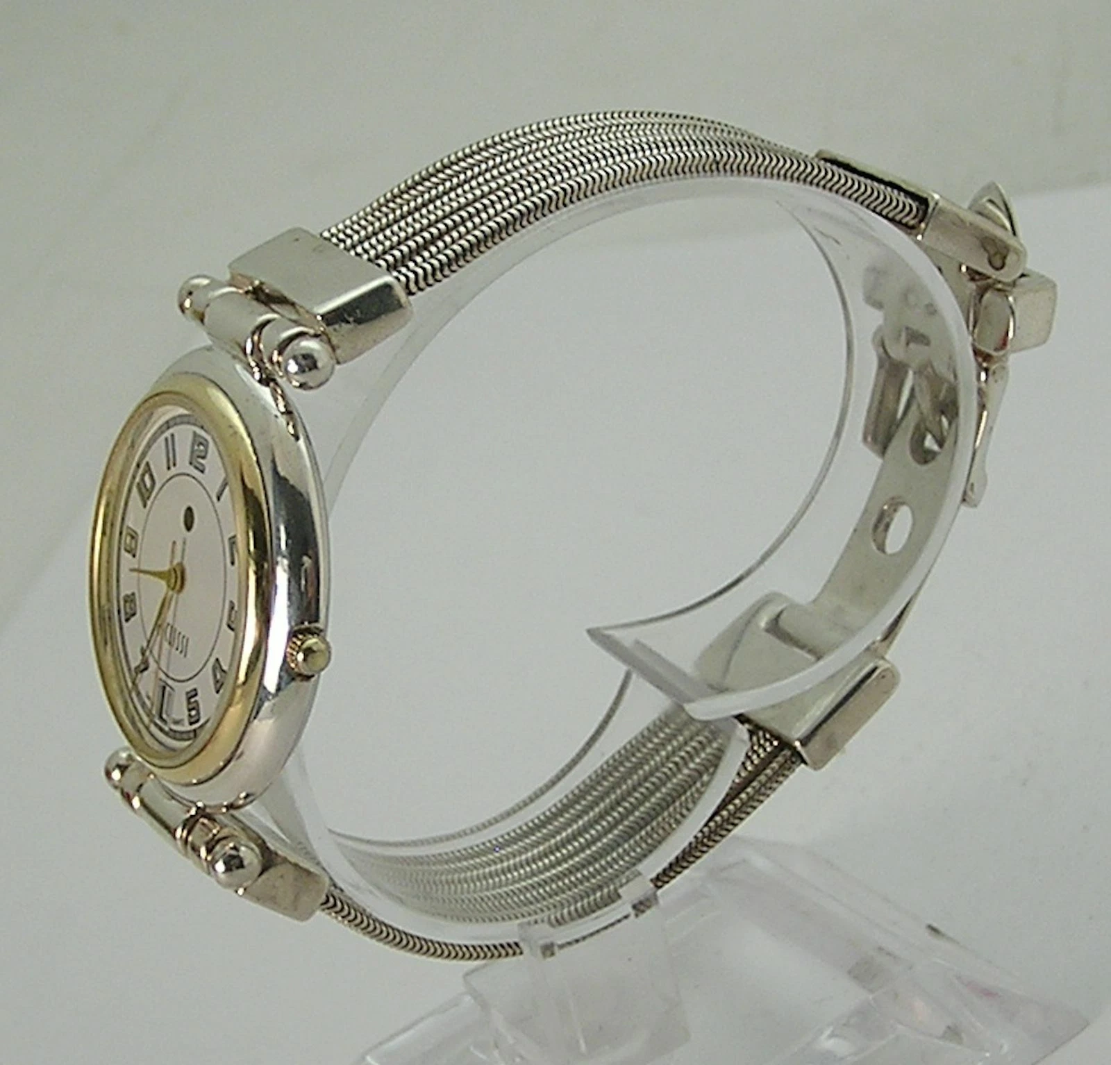Elegant Eccillsi Sterling 8 Strand Snake Chain Buckle Clasp Ladies Swiss Watch