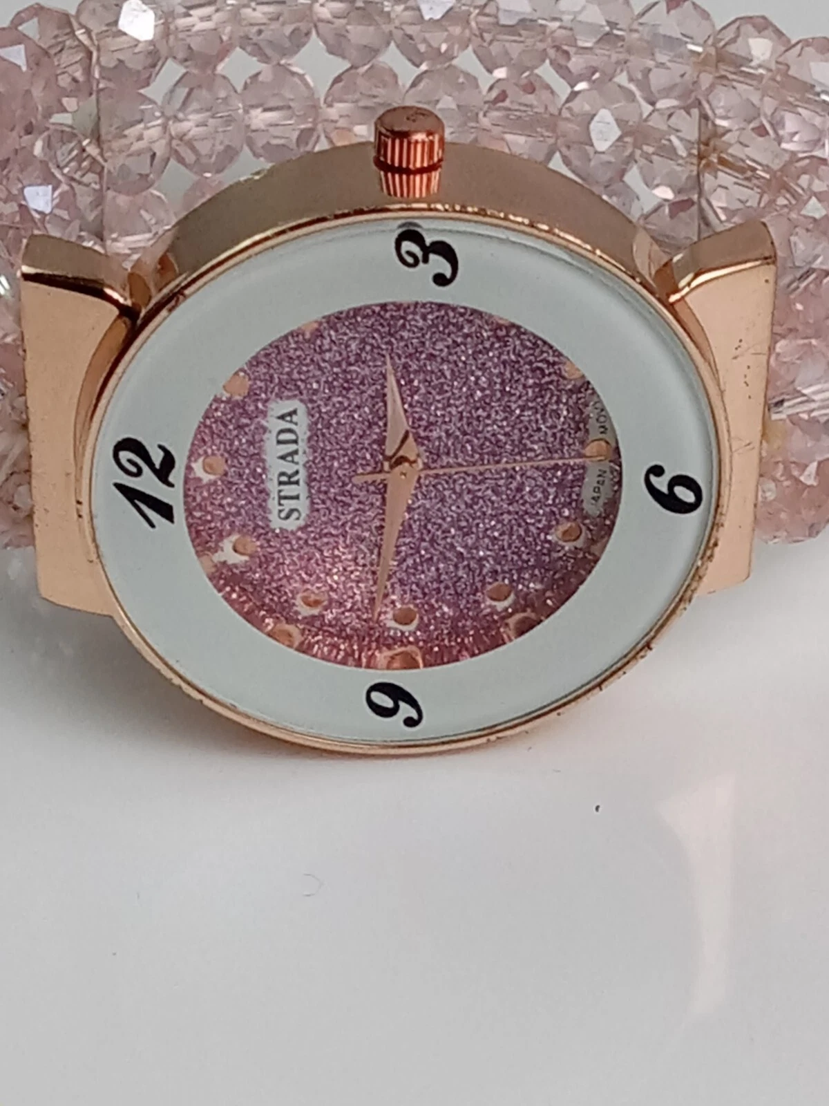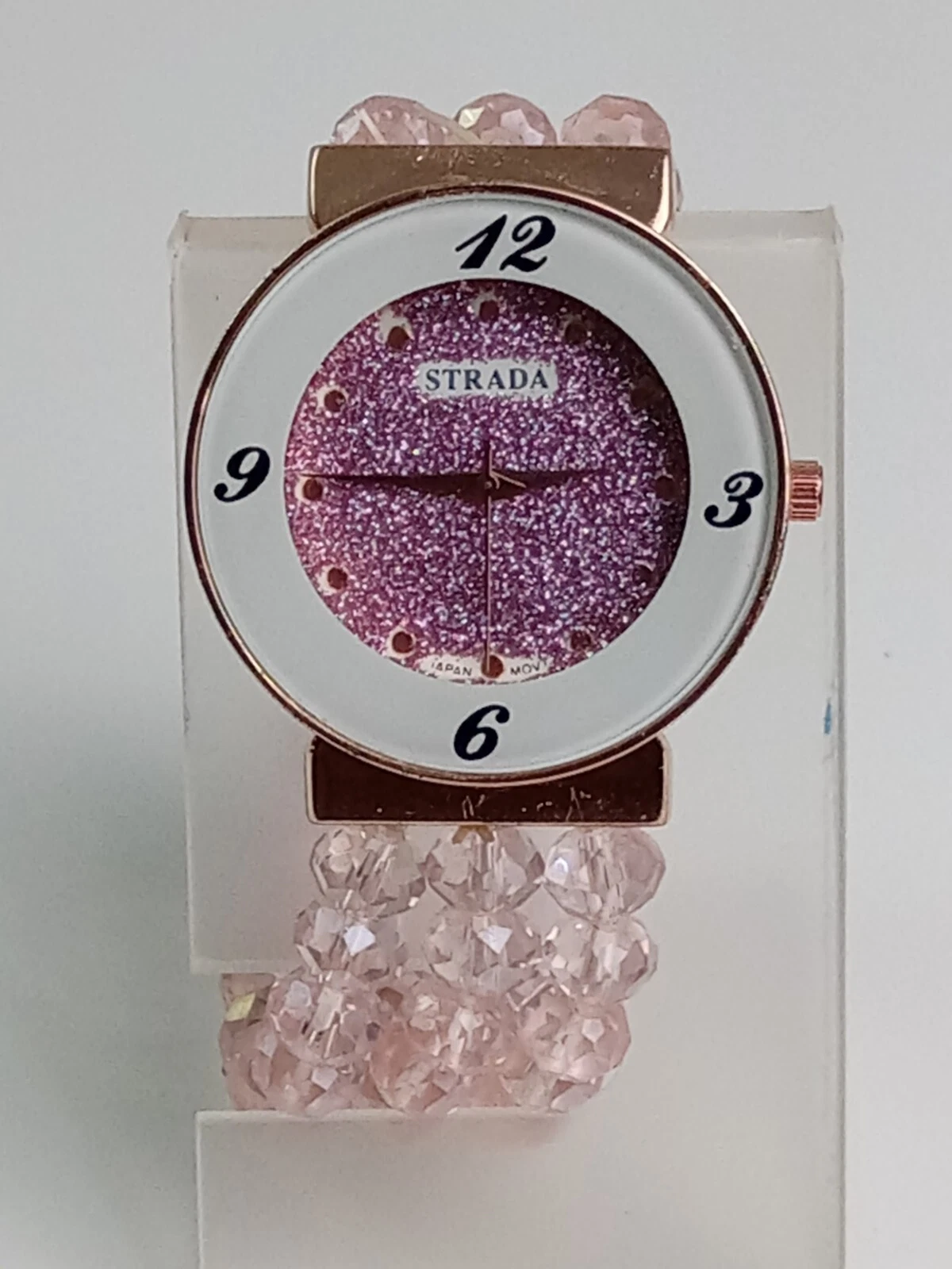 Strada Women's Rose Gold Pink Dial Quartz Watch Beaded  Bracelet Band