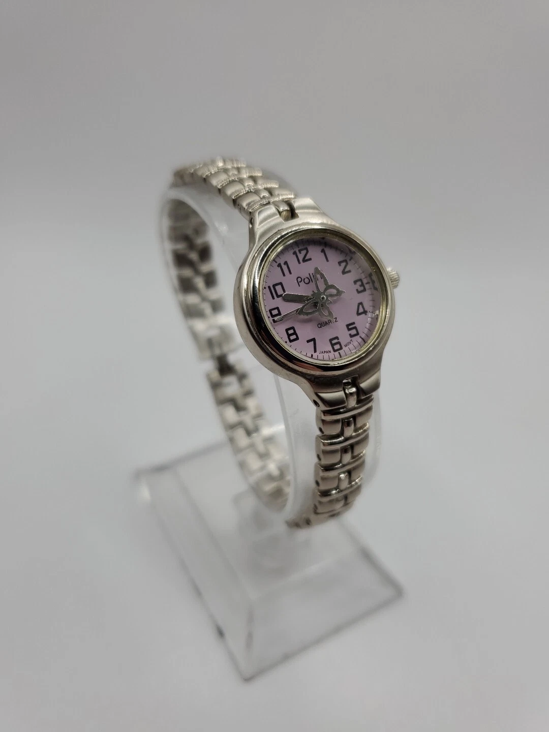 Polini Ladies Butterfly Quartz Watch 22mm Round Silver Tone Bracelet