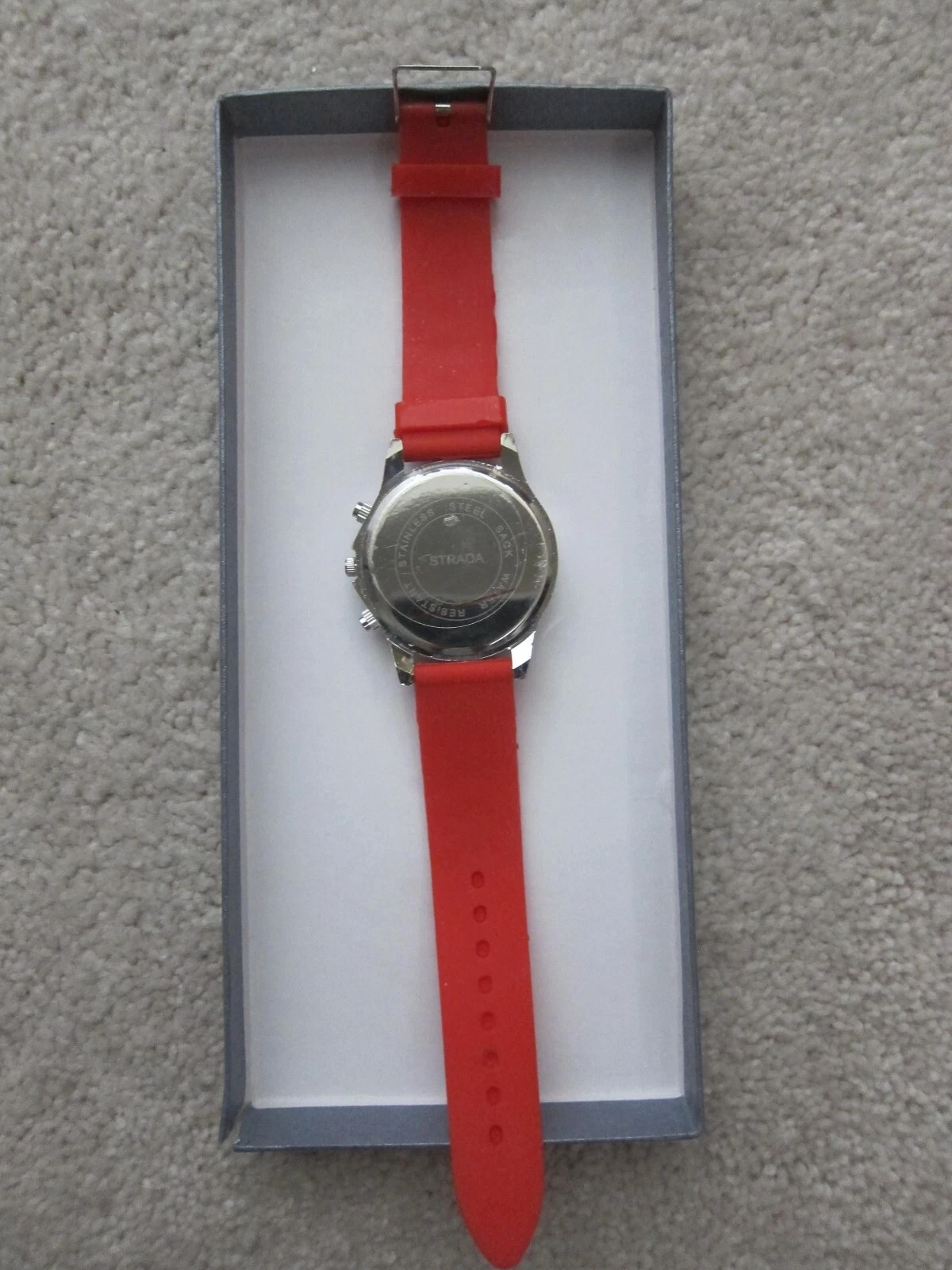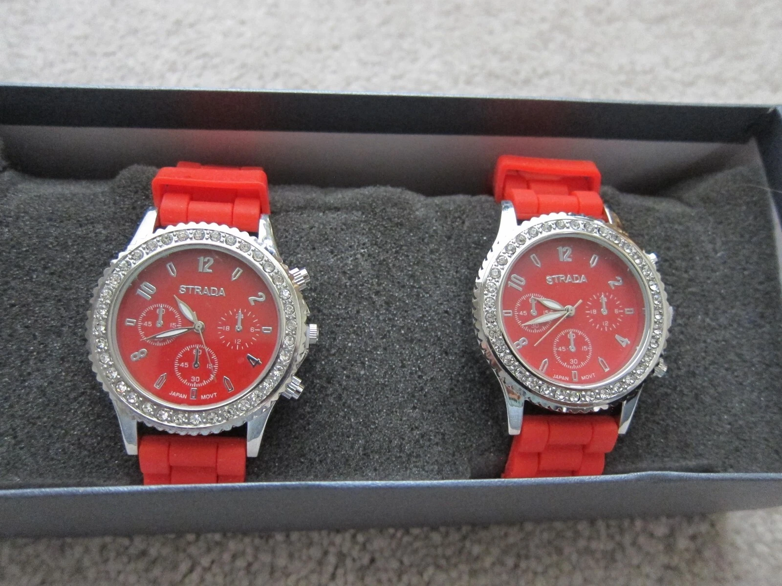 Brand New Womens Strada Red Silicone Band & Crystal Bezel Quartz Watch