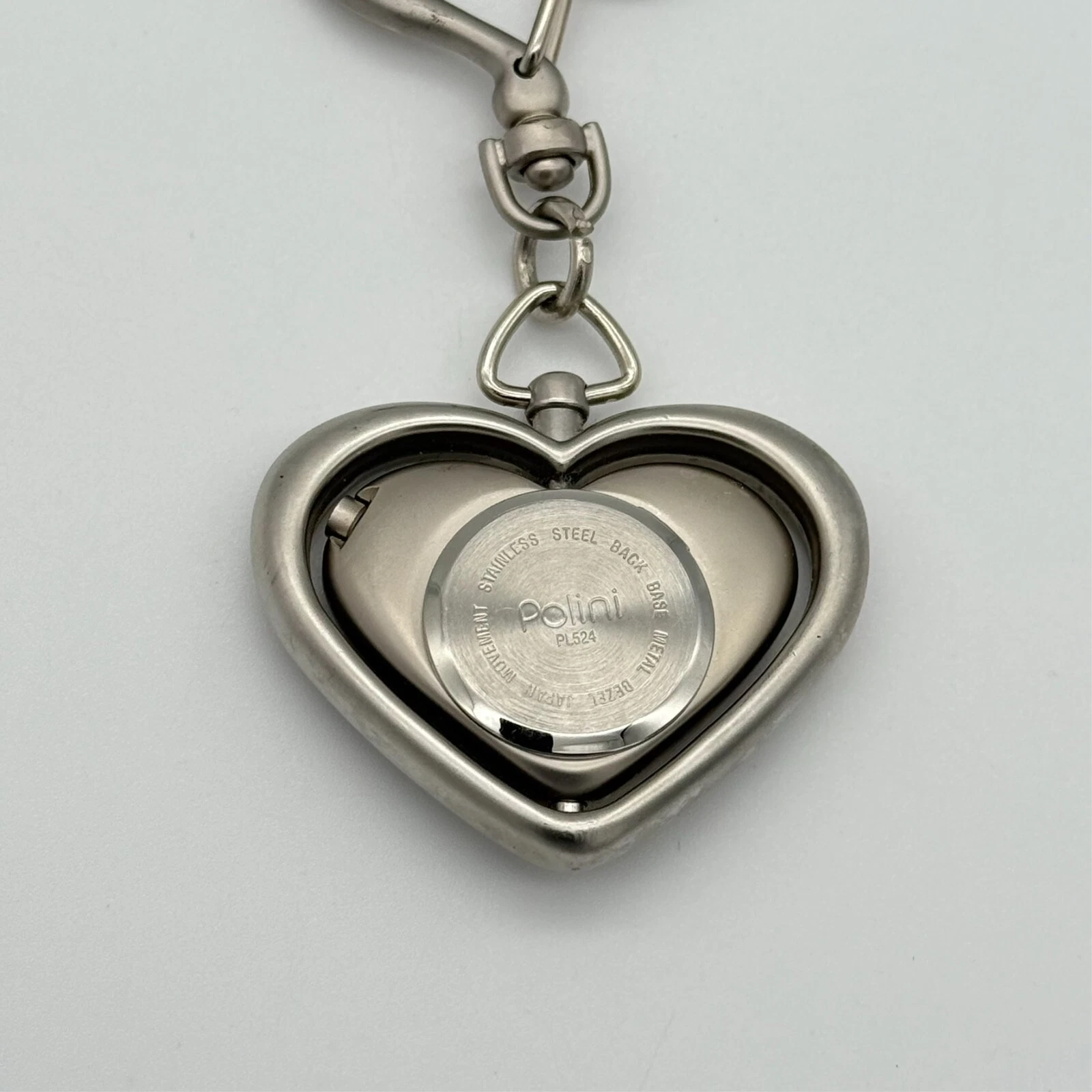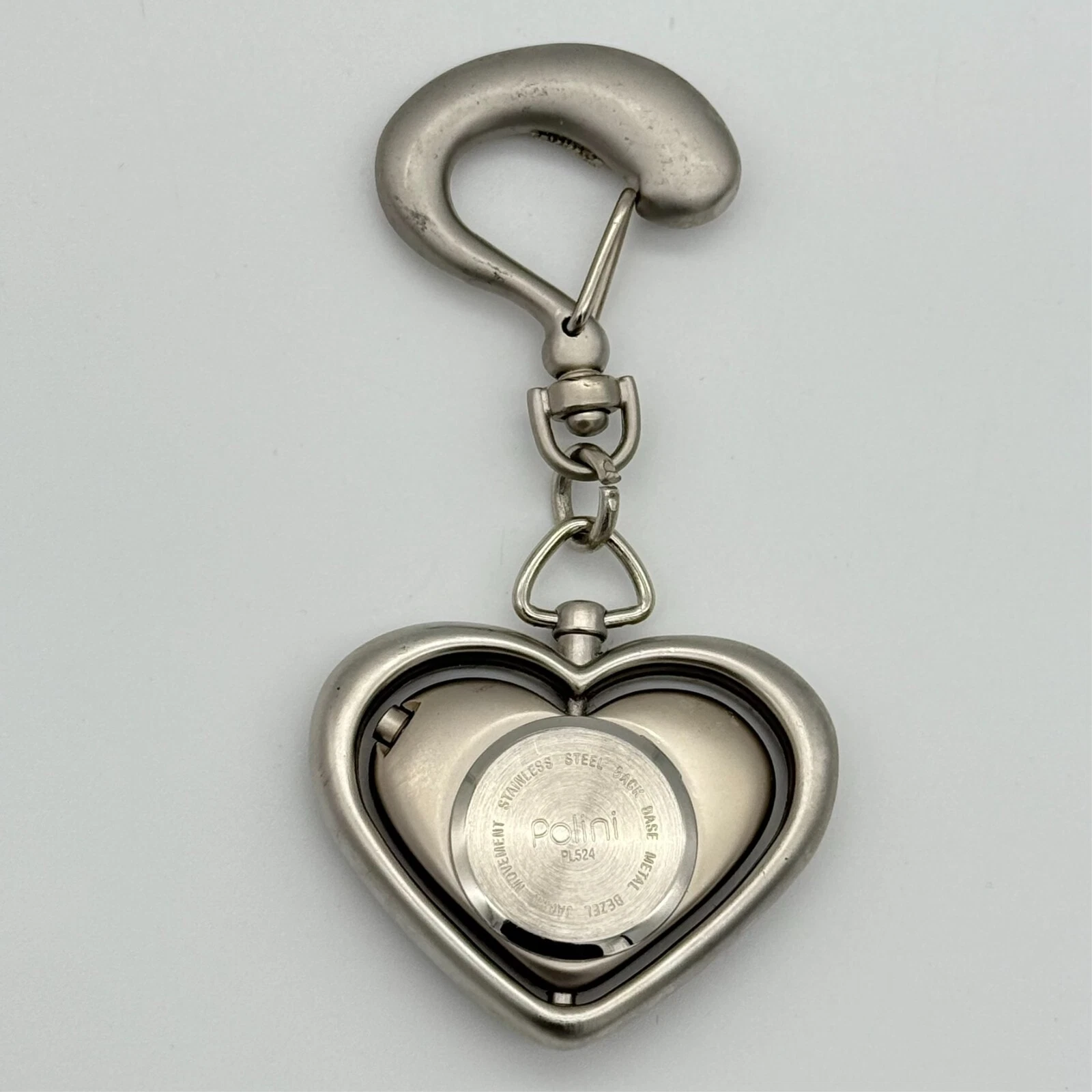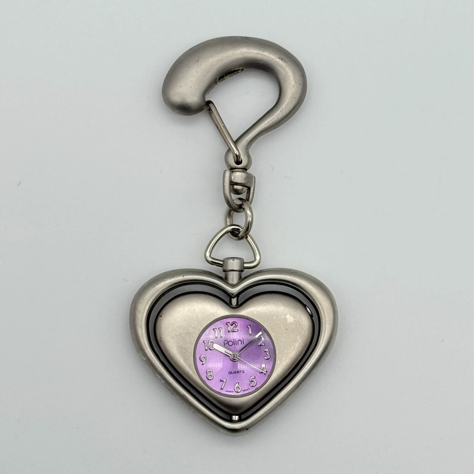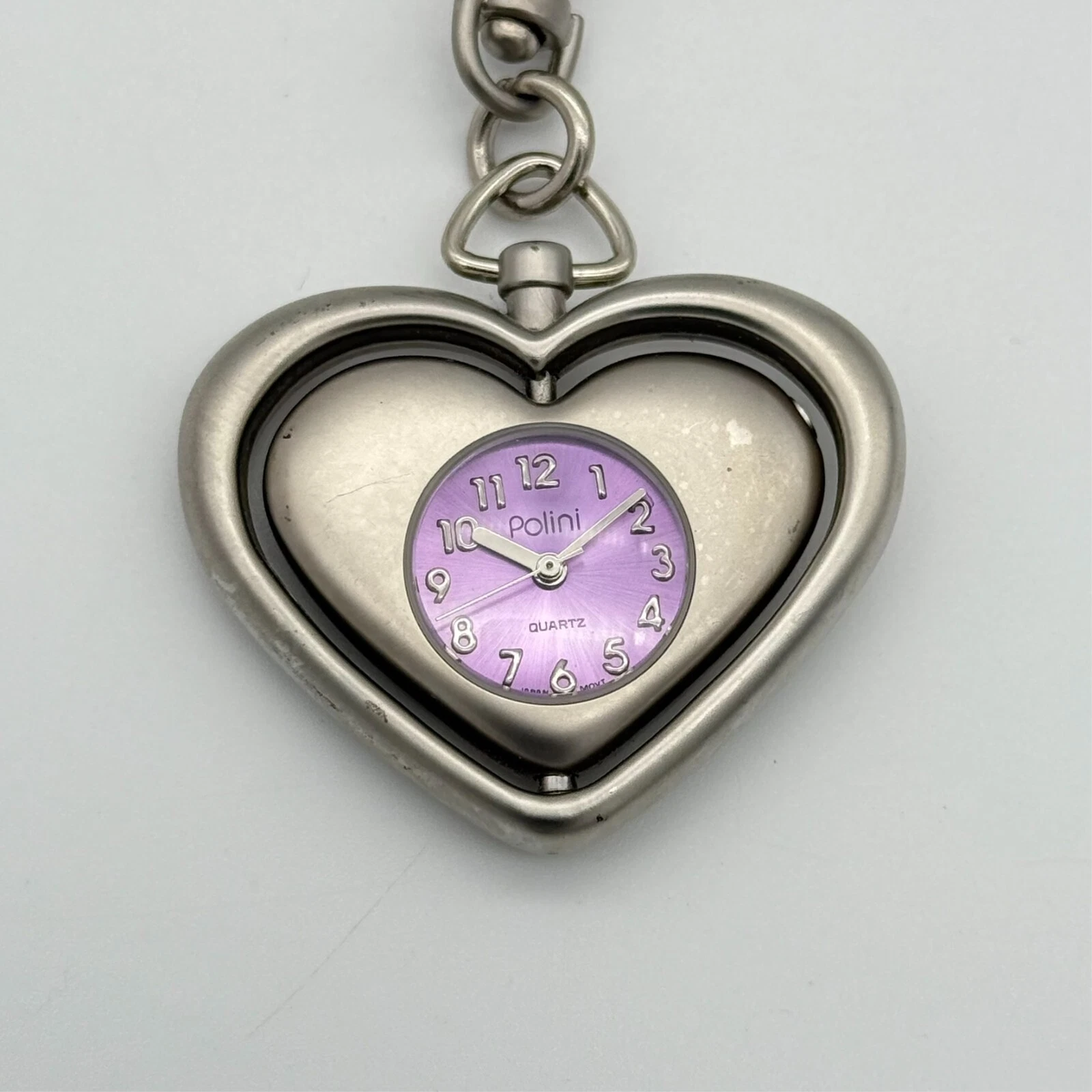 Women's POLINI Matte Silver Tone Heart Shaped Keychain Watch, Purple Dial, Runs